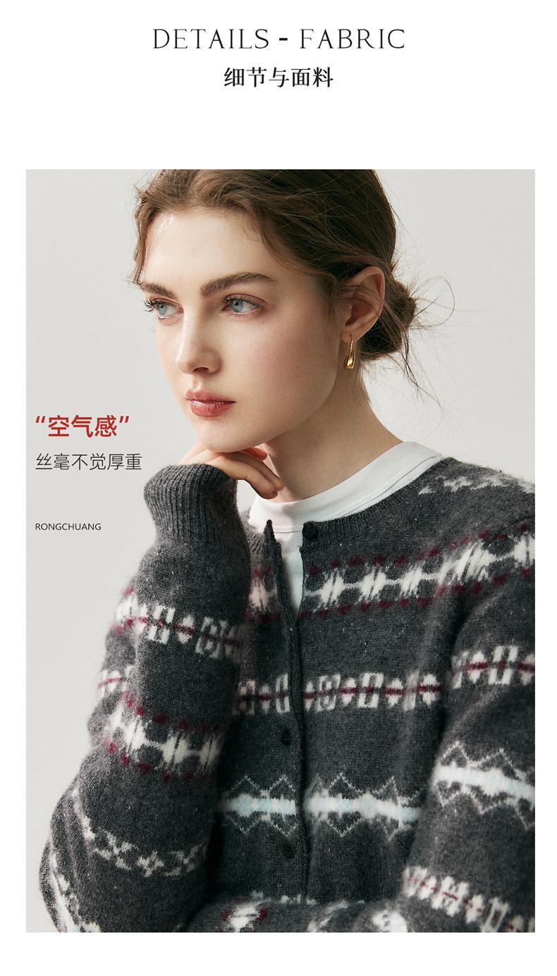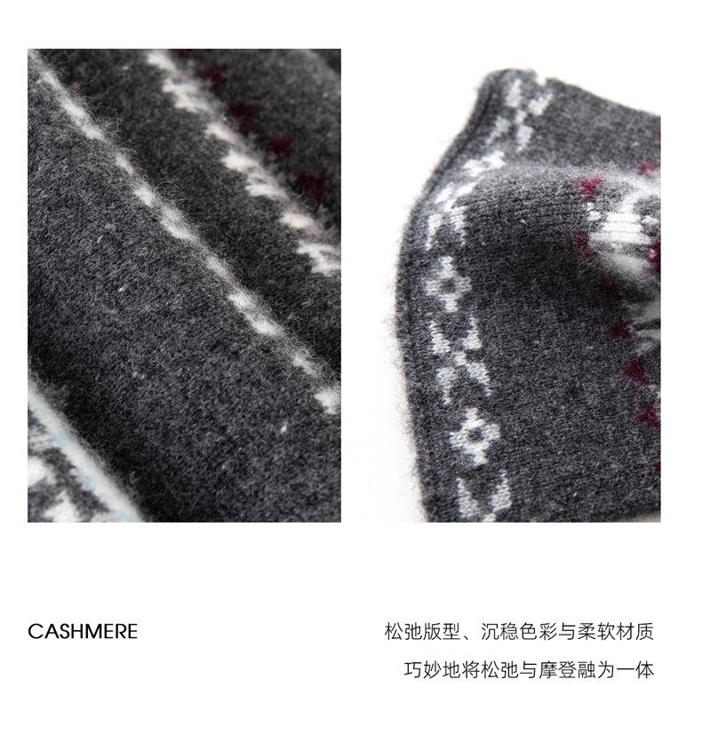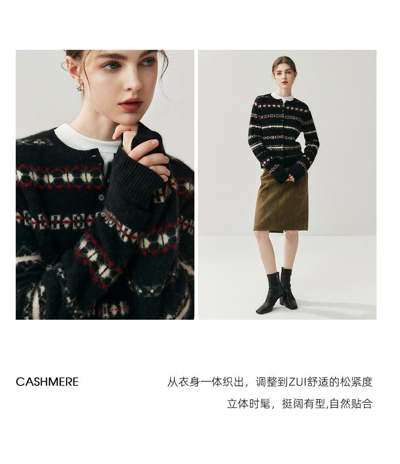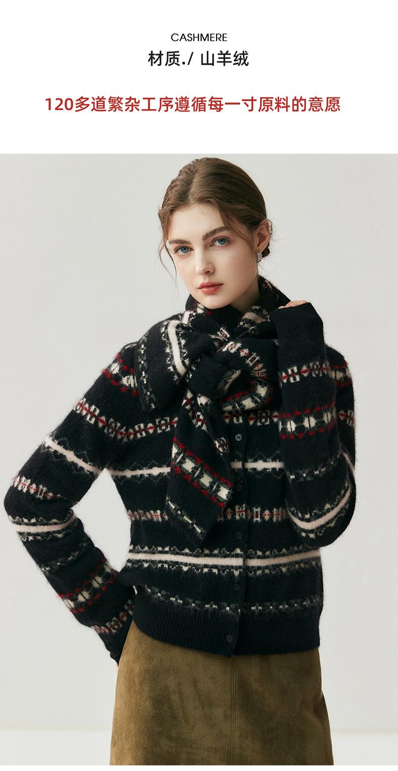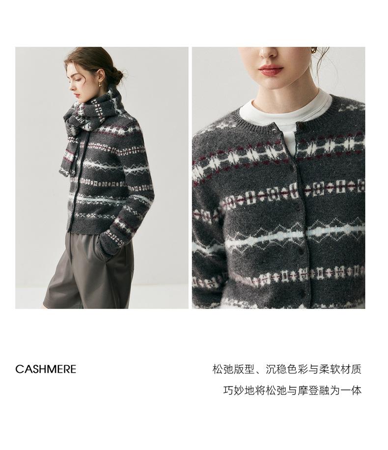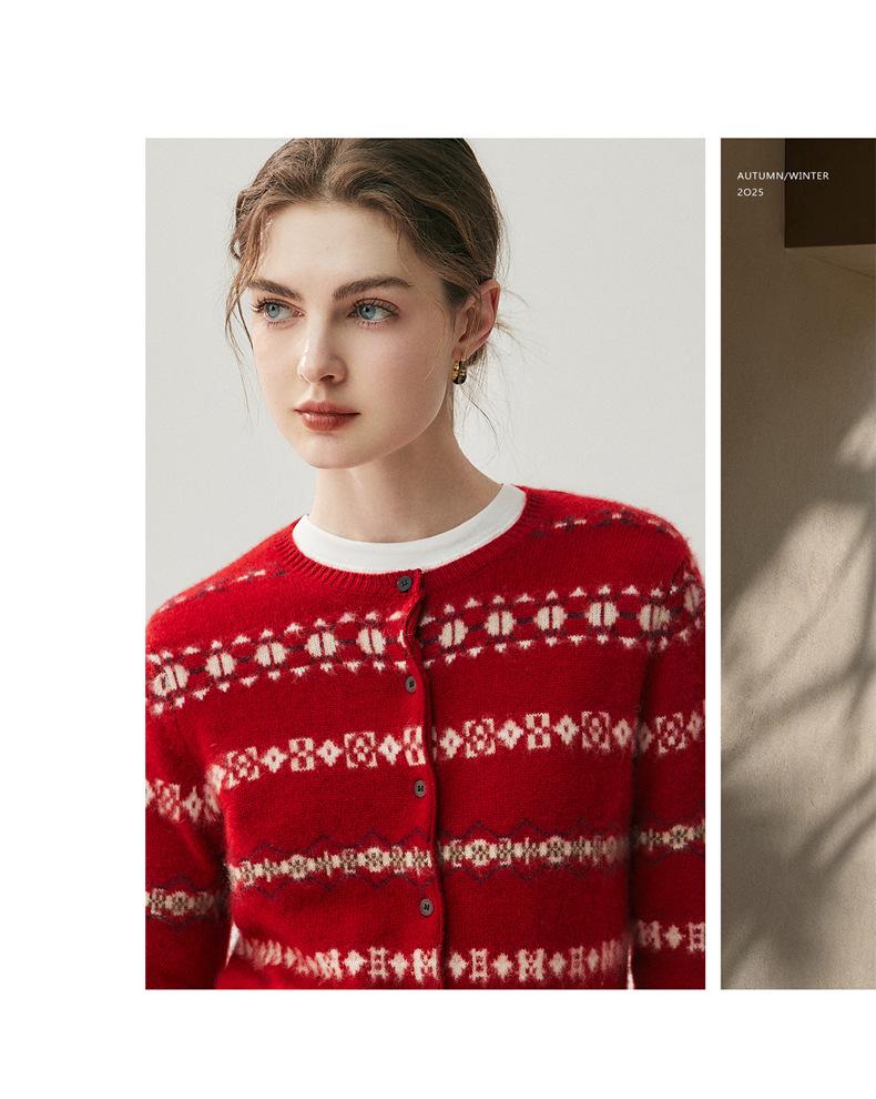 Jacquard Fair Isle Prendas de Punto de Cachemira para Mujer Otoño/Invierno 2025 Nuevo Cárdigan de Punto con Bloques de Color Retro Simple Suave
