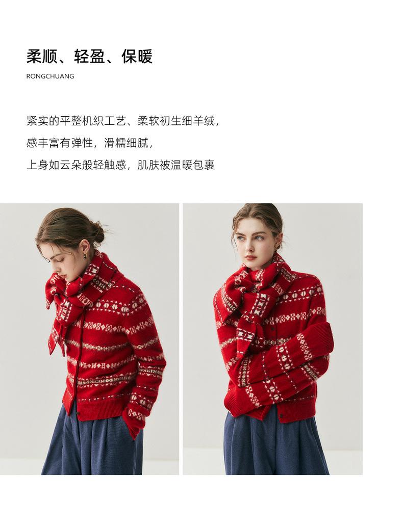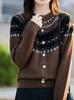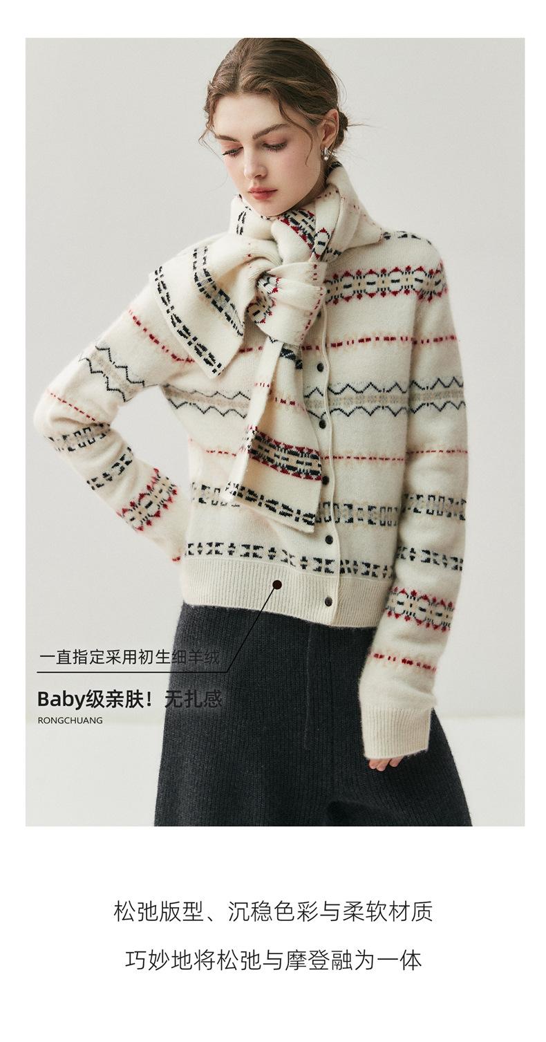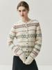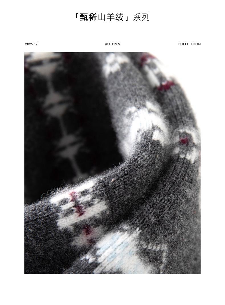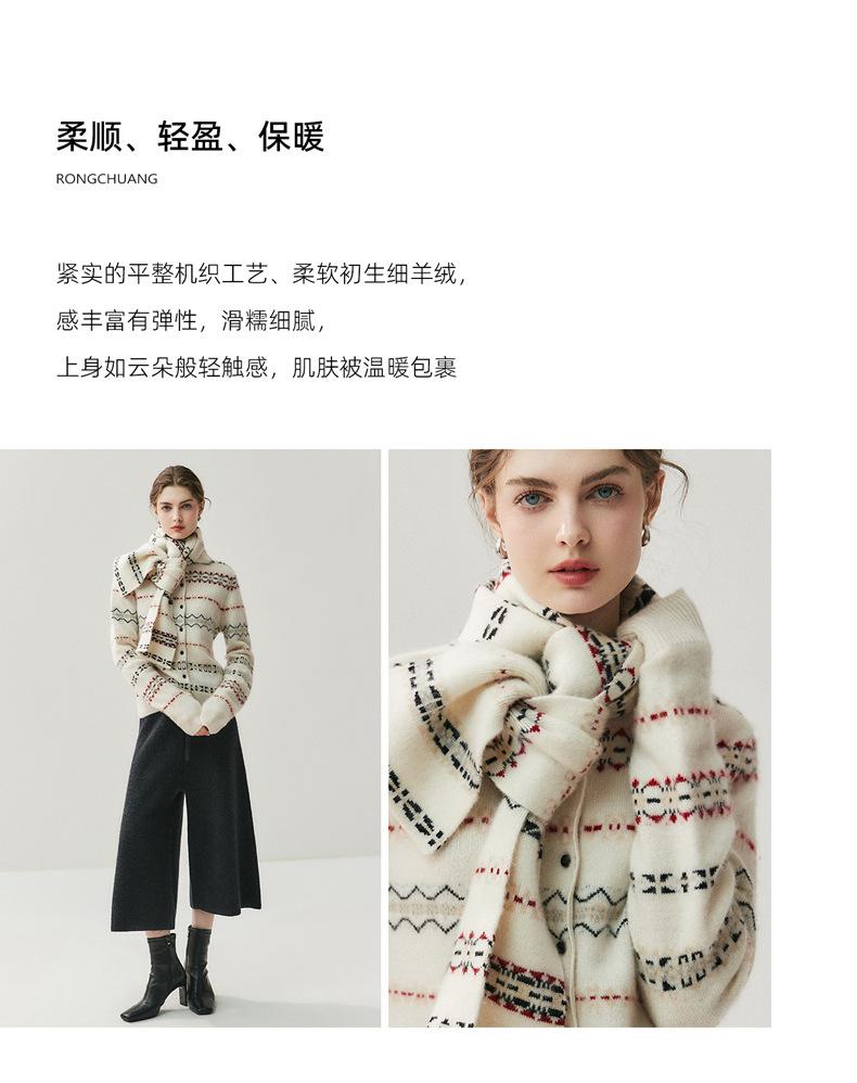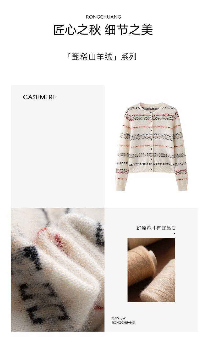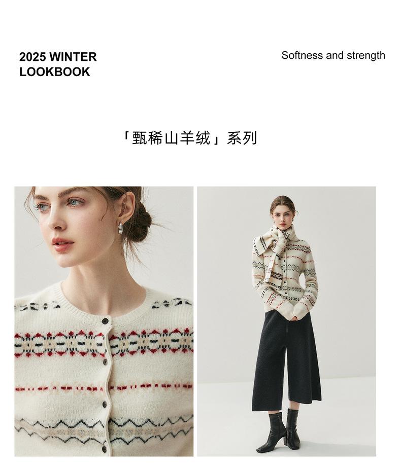 Jacquard Fair Isle Prendas de Punto de Cachemira para Mujer Otoño/Invierno 2025 Nuevo Cárdigan de Punto con Bloques de Color Retro Simple Suave