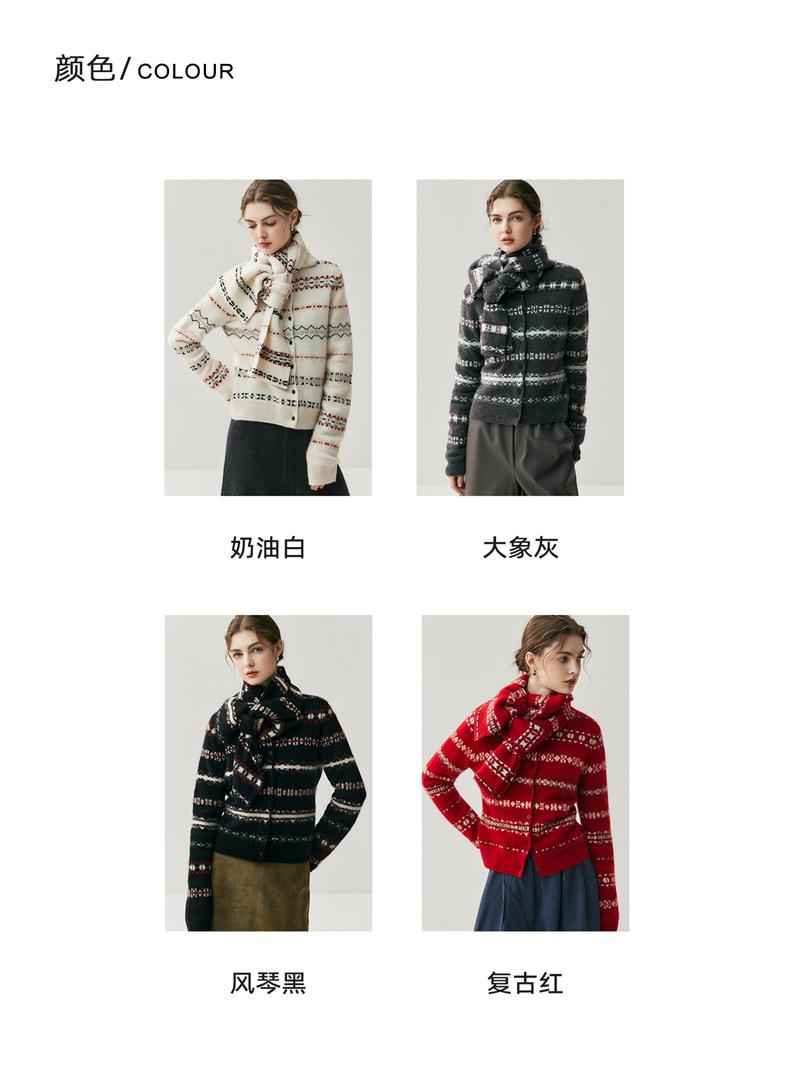 Cream white cardigan, Retro red cardigan, Quiet black cardigan, Elephant gray cardigan, Cream white scarf, Ret...