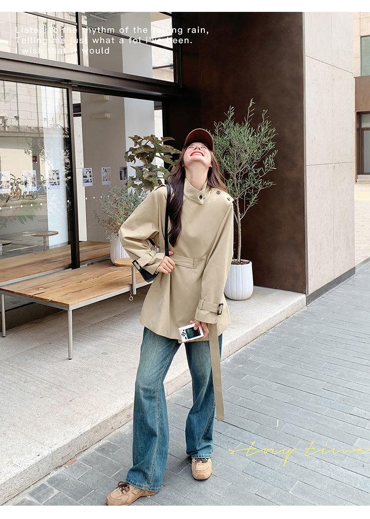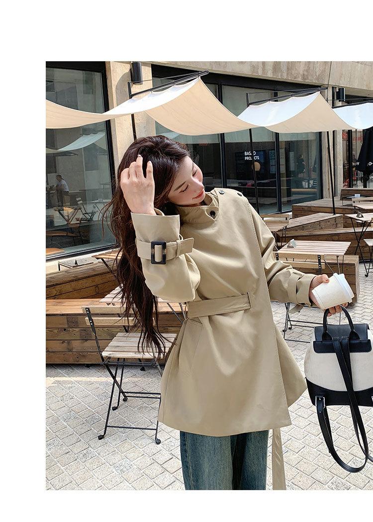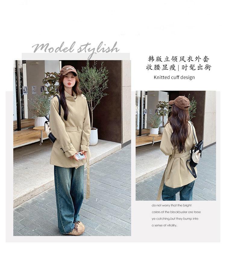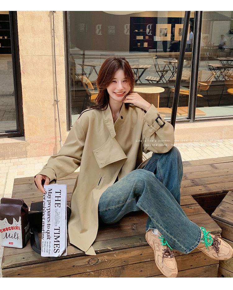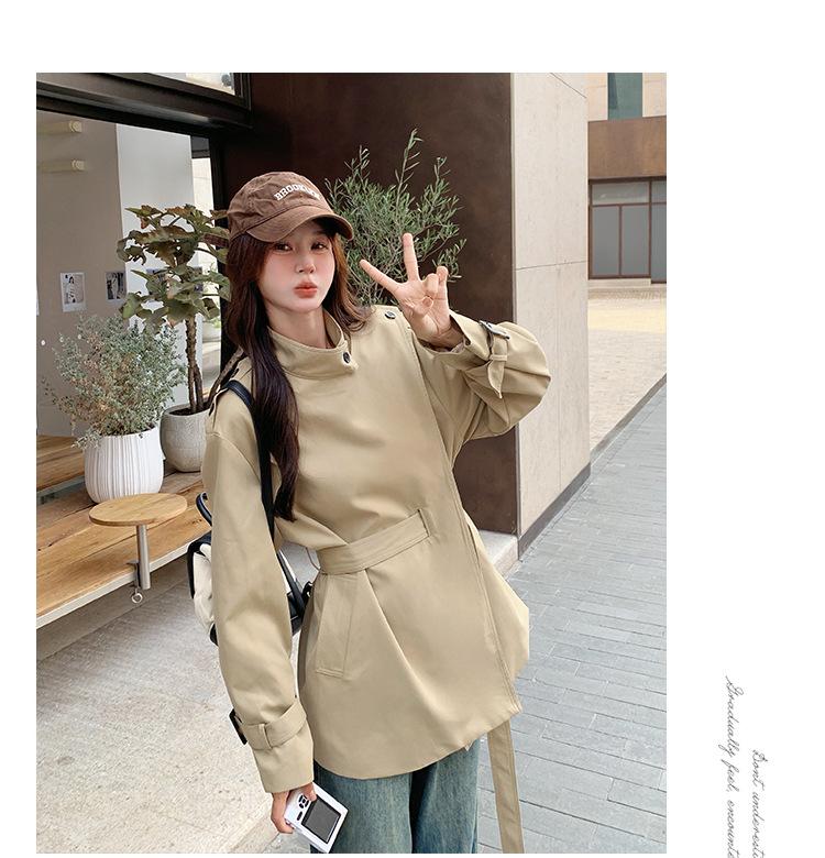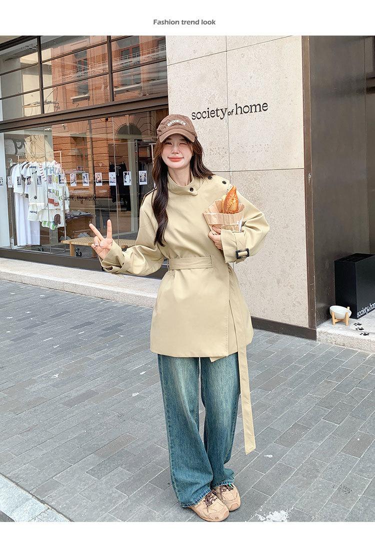 Novedades de Primavera y Otoño 2025 Reductor de Edad Versátil Cómodo y Agradable para la Piel Mejorando la Calidad Estilo Coreano Gabardina Chaqueta de Cuello Alto Tendencia