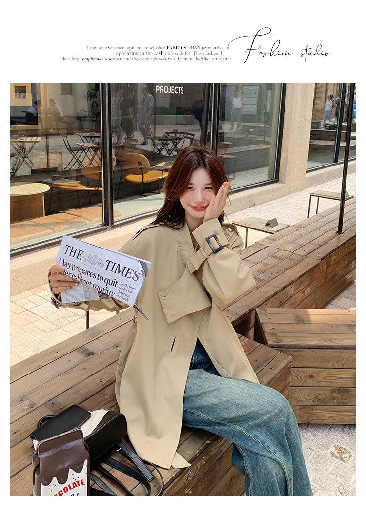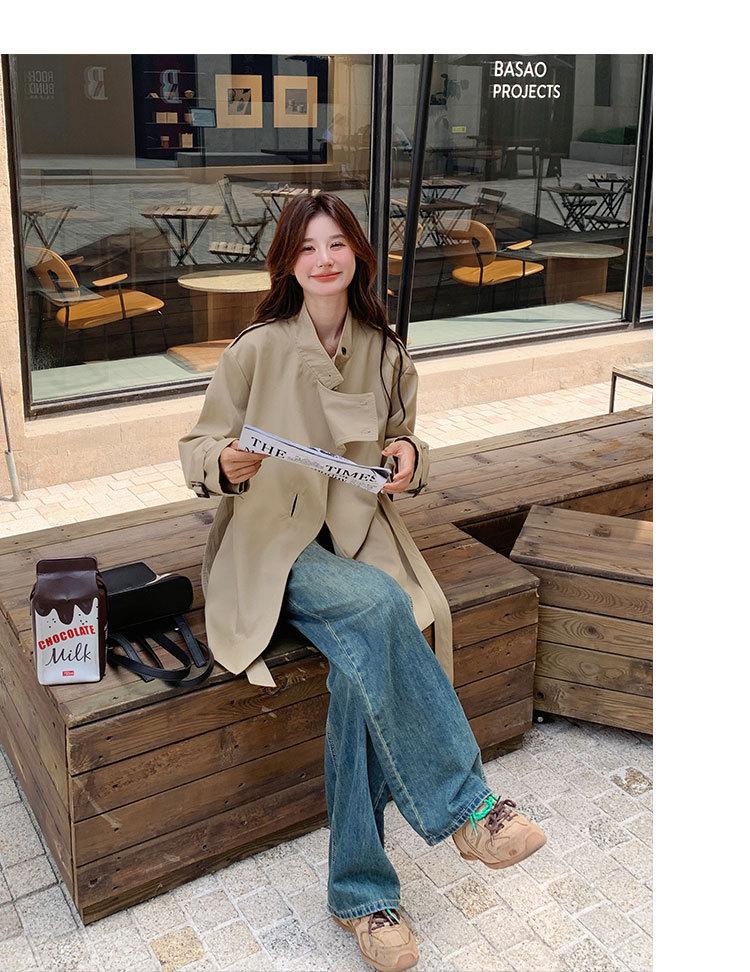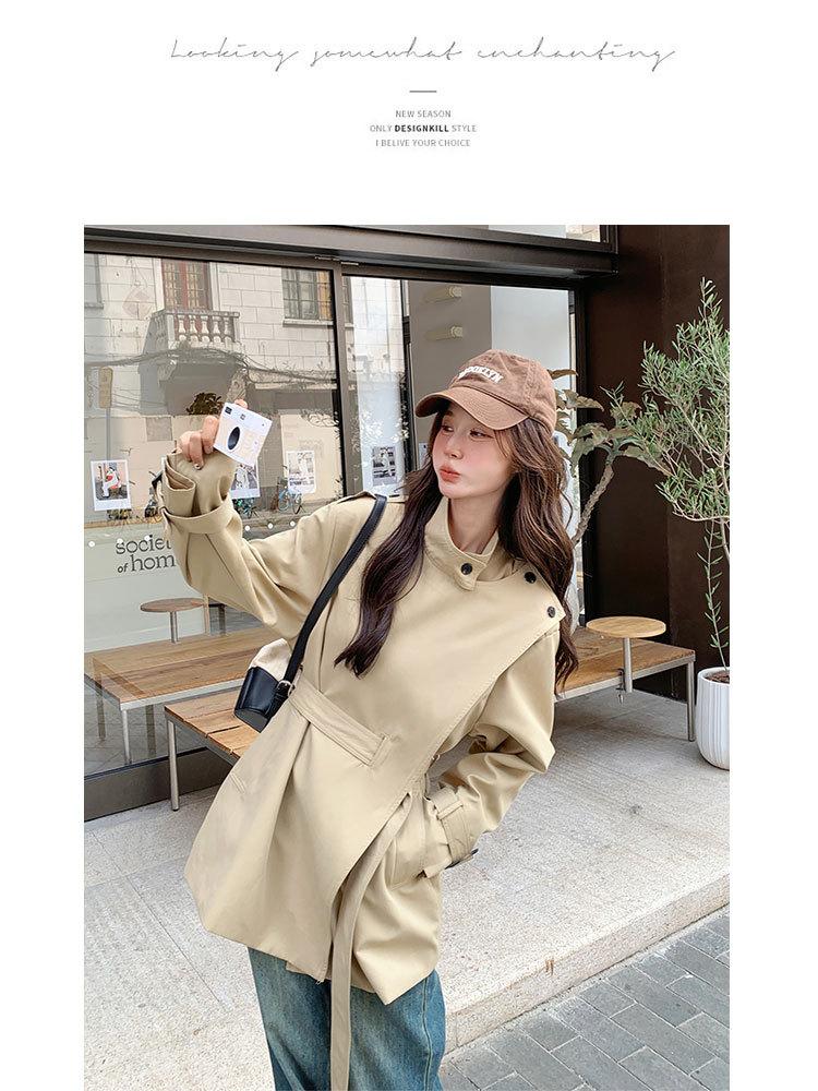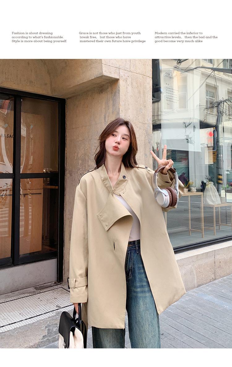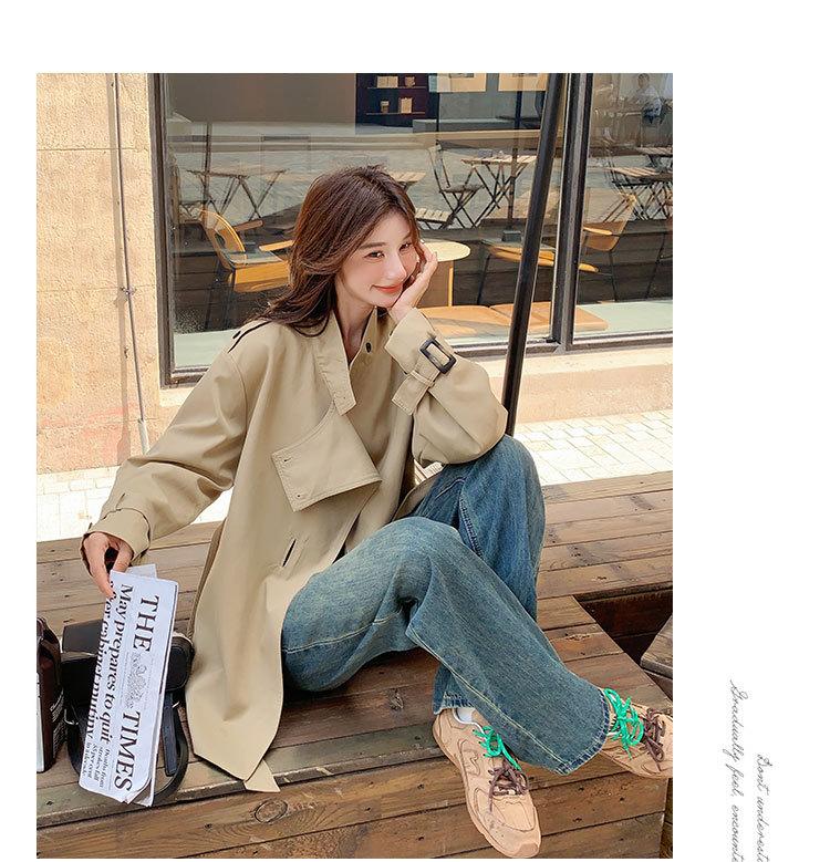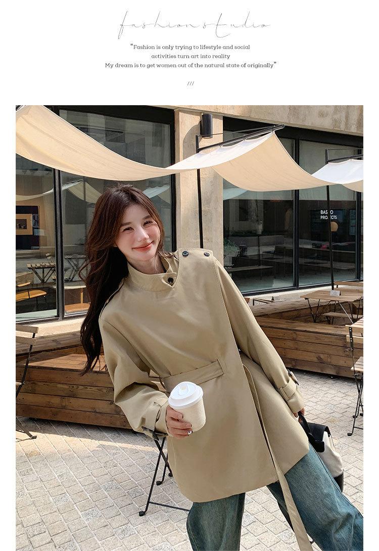Novedades de Primavera y Otoño 2025 Reductor de Edad Versátil Cómodo y Agradable para la Piel Mejorando la Calidad Estilo Coreano Gabardina Chaqueta de Cuello Alto Tendencia