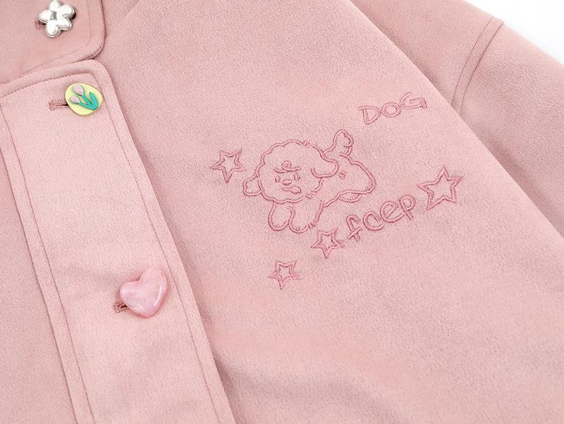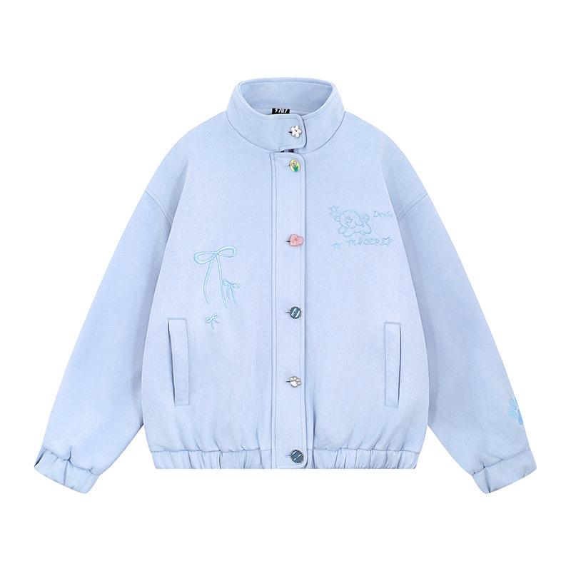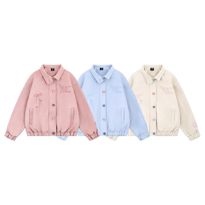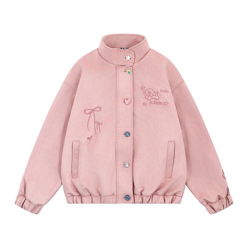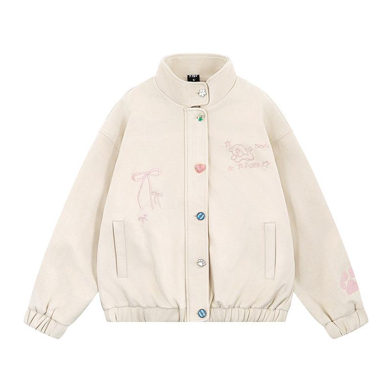 Divertida Chaqueta de Ante Bordada para Mujer en Otoño Nueva Holgada y Versátil Estilo Lazy Chaqueta Casual Top Tipo Uniforme de Béisbol
