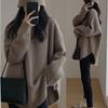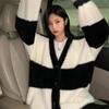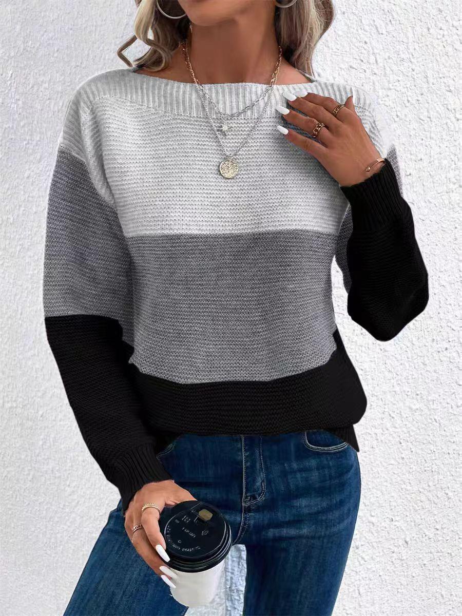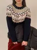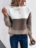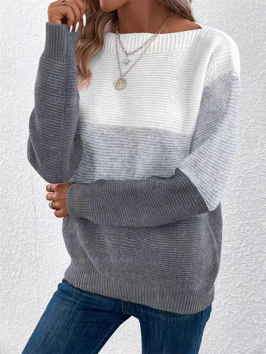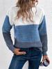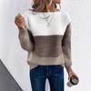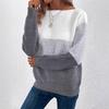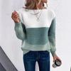 Suéter de Punto con Bloques de Color Europeo y Americano para Mujer Otoño Invierno Cuello Redondo Suelto Moda Estilo Japonés Top Versátil Camiseta Base