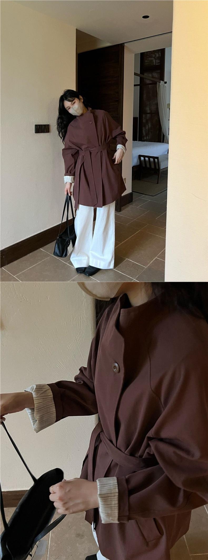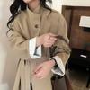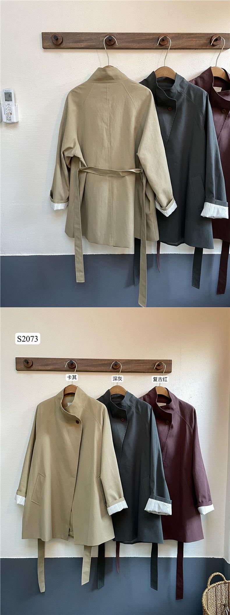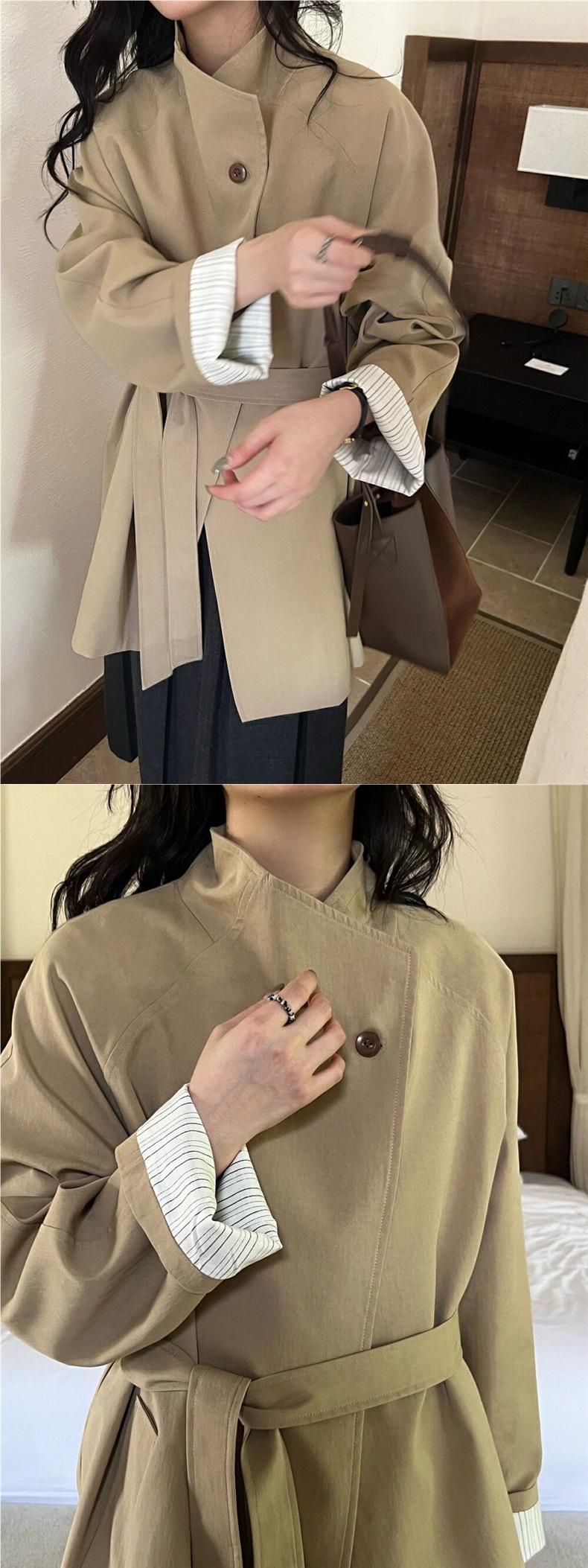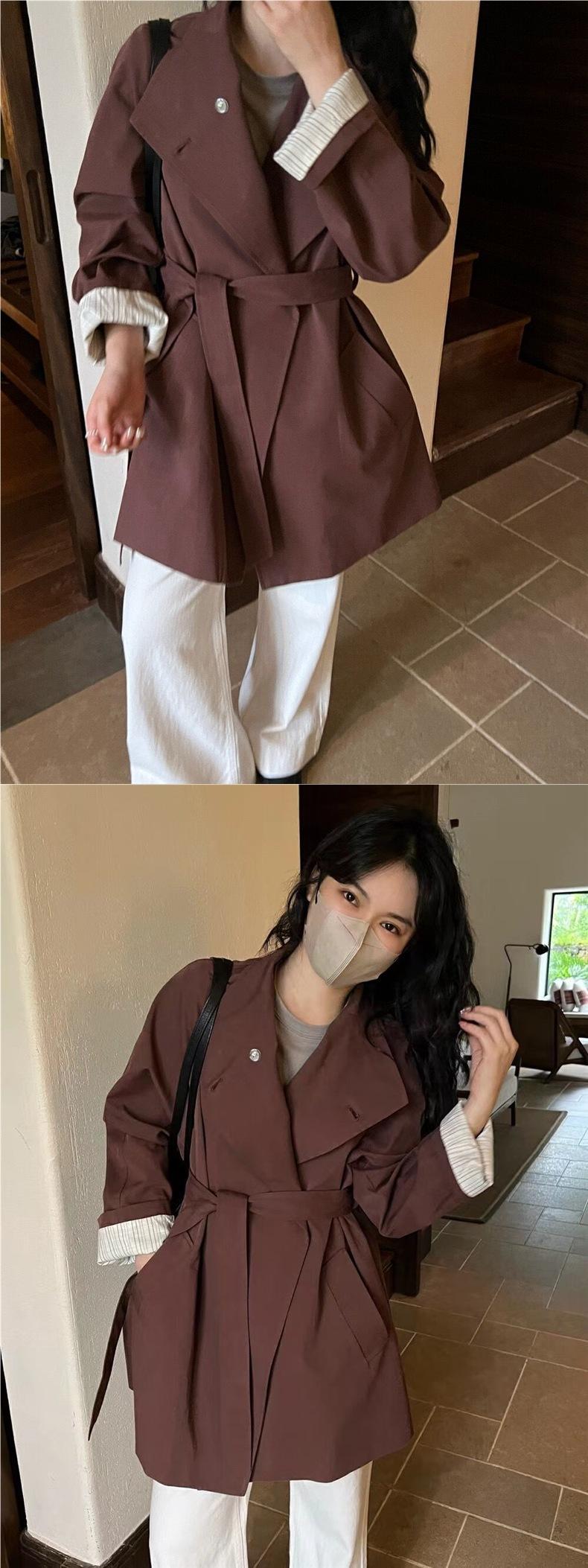 Abrigo Trench de Patchwork a Rayas con Cuello Mao Estilo Coreano para Mujer Petite 2025 Otoño Nuevo Producto Sensación Abrigo con Cinturón Tendencia