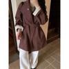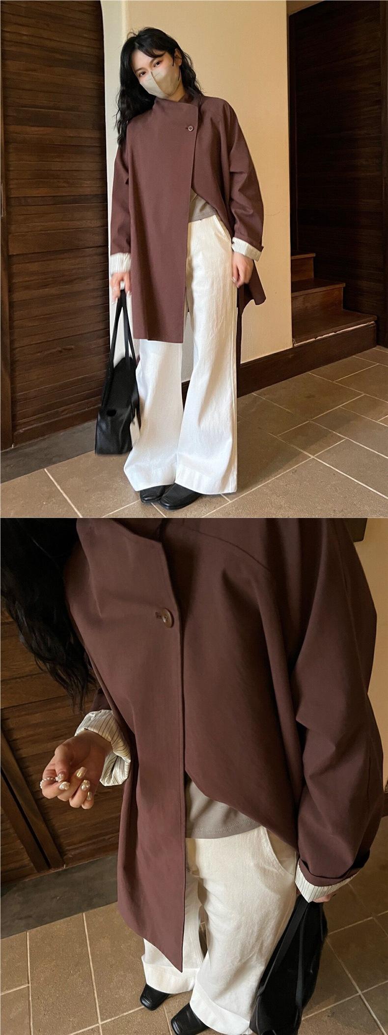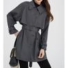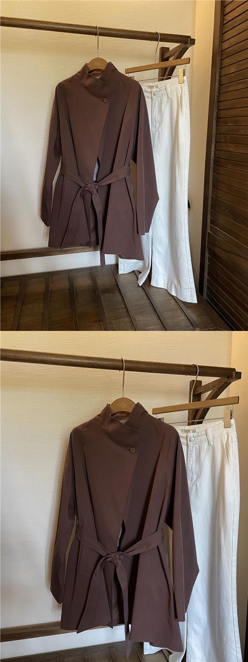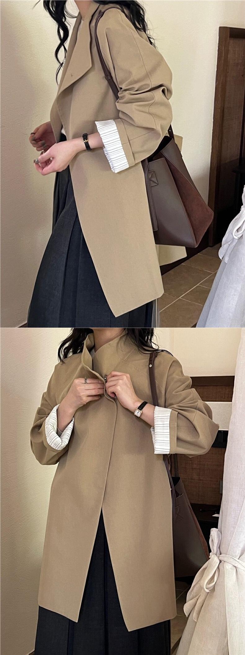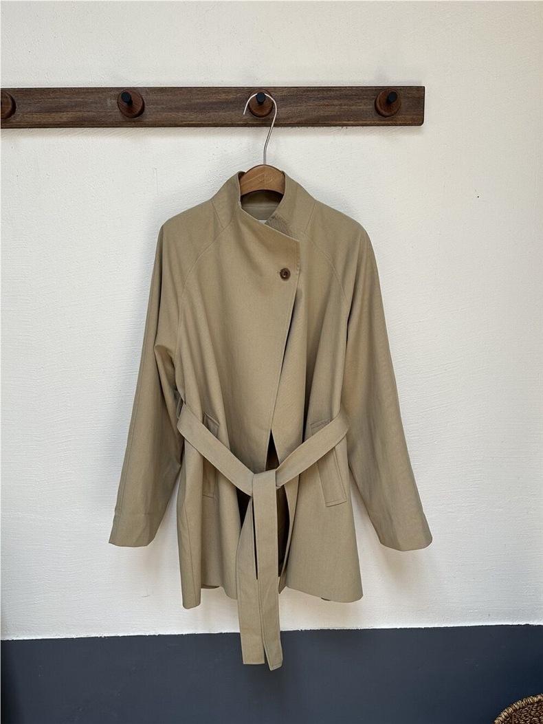Abrigo Trench de Patchwork a Rayas con Cuello Mao Estilo Coreano para Mujer Petite 2025 Otoño Nuevo Producto Sensación Abrigo con Cinturón Tendencia