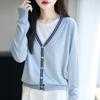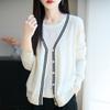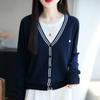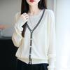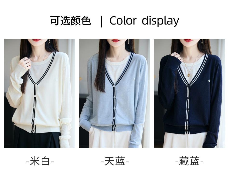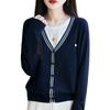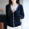 Cárdigan suéter de punto sencillo de cuello en V falso de dos piezas abrigo suéter de otoño ropa de mujer adelgazante al por mayor