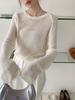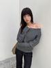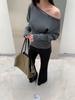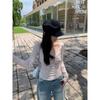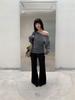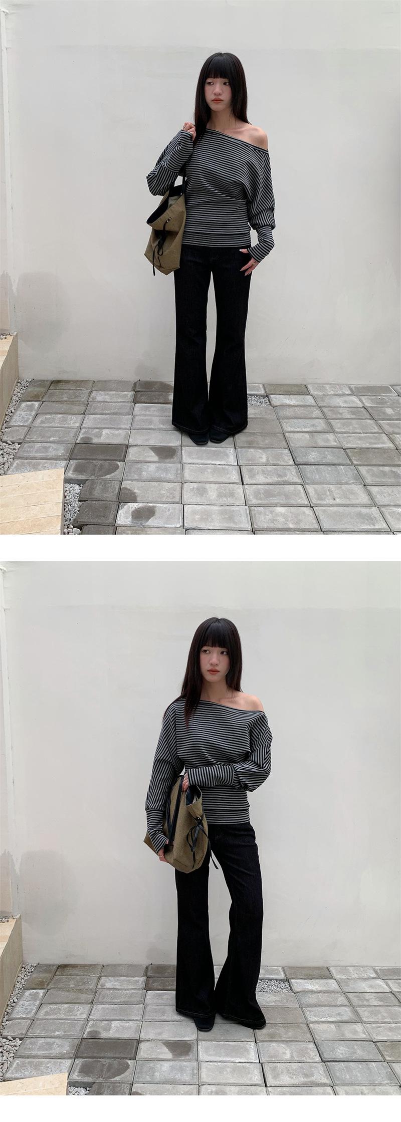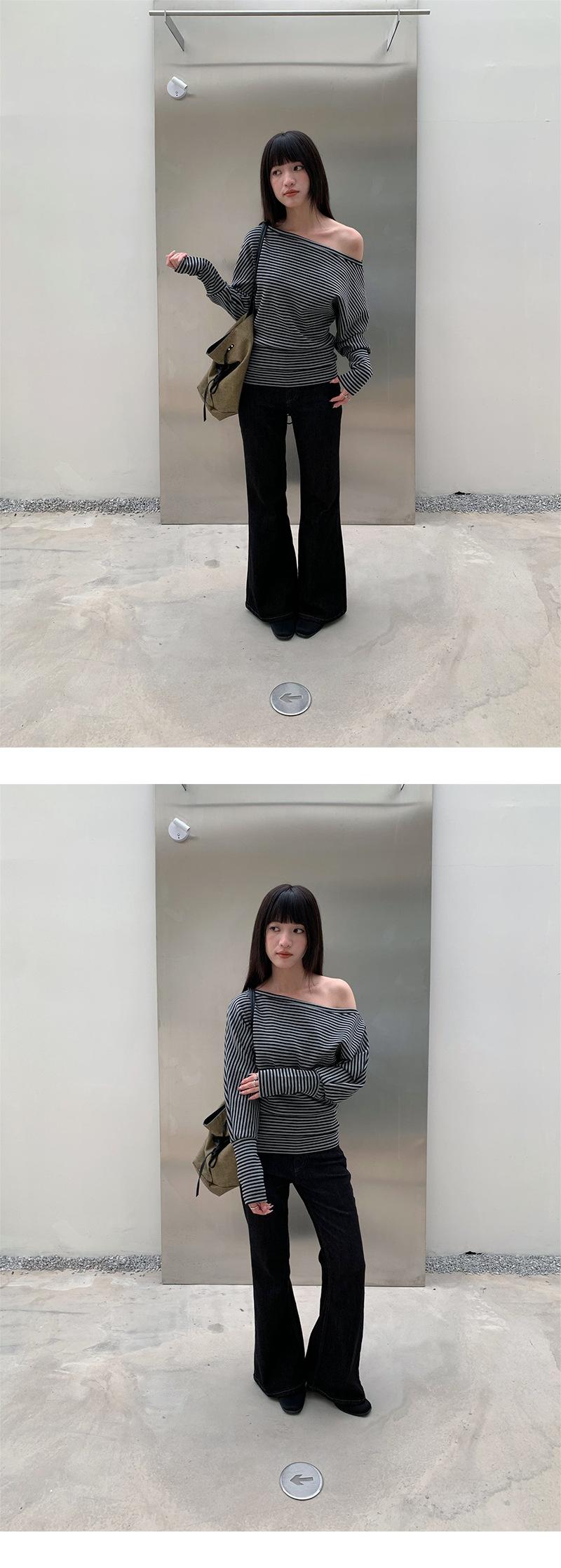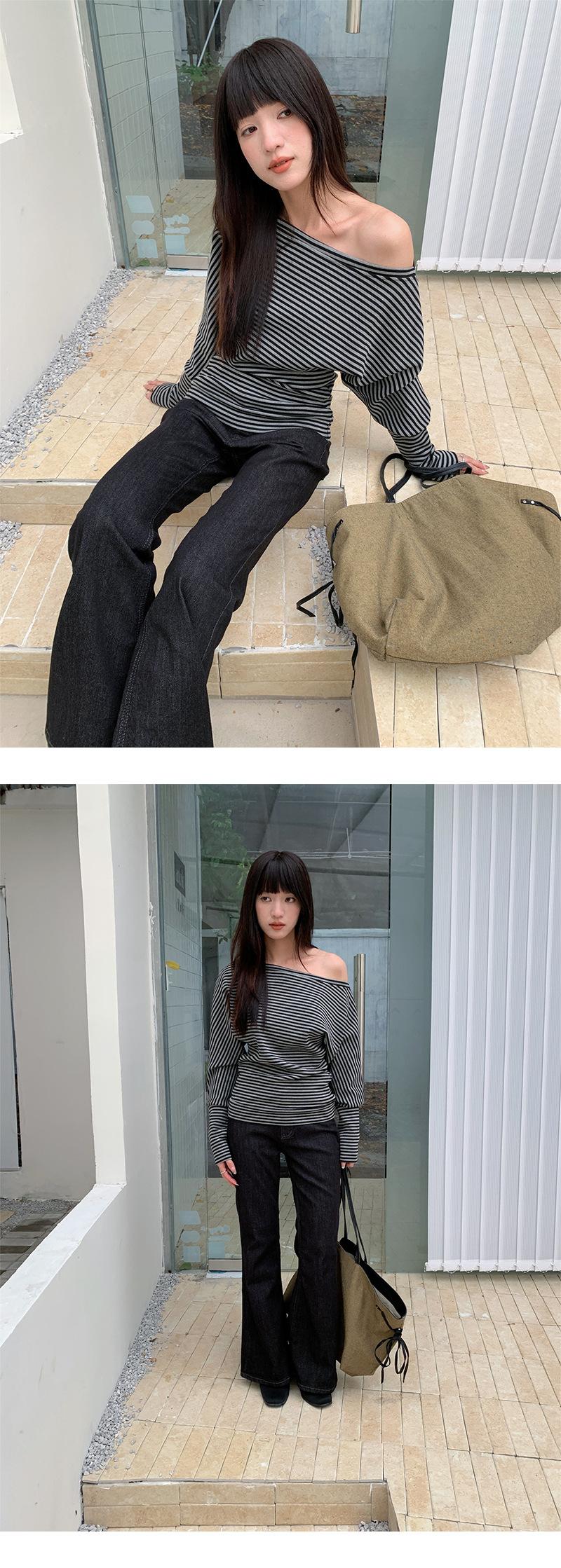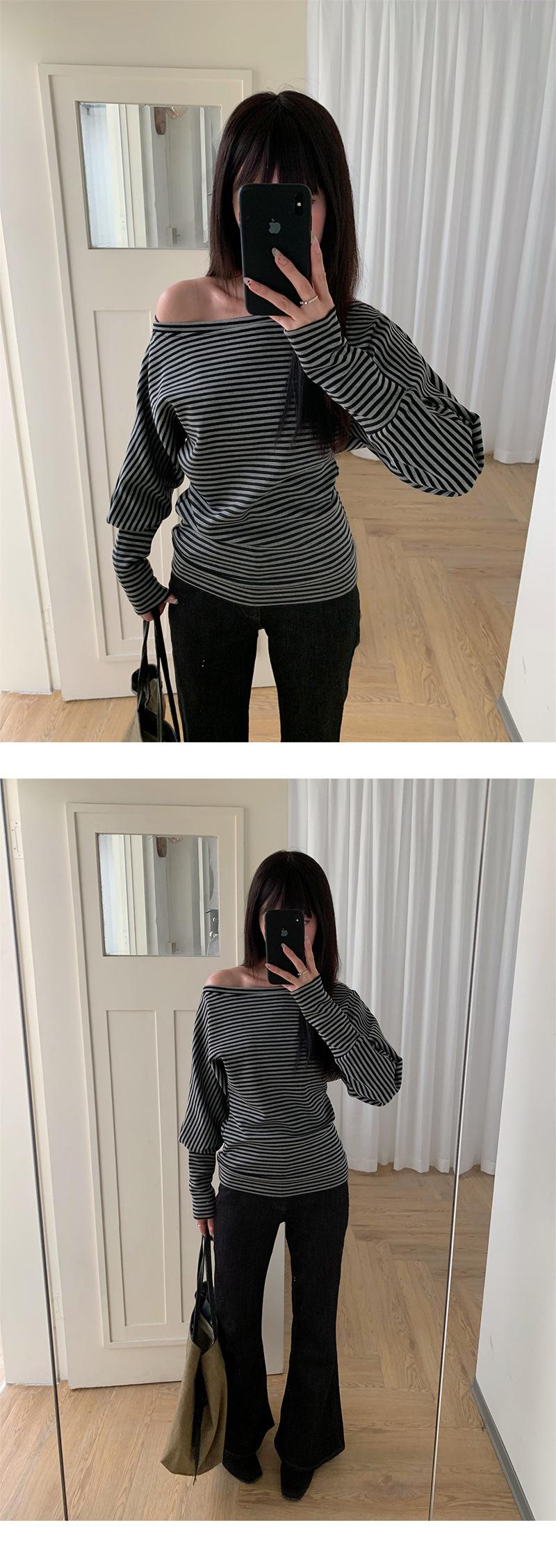 Yu Yi Nuevo Otoño 2025 Camiseta de Manga Larga a Rayas con un Hombro Descubierto para Mujer, Suelta, Versátil, Top Irregular para Mujer c250786