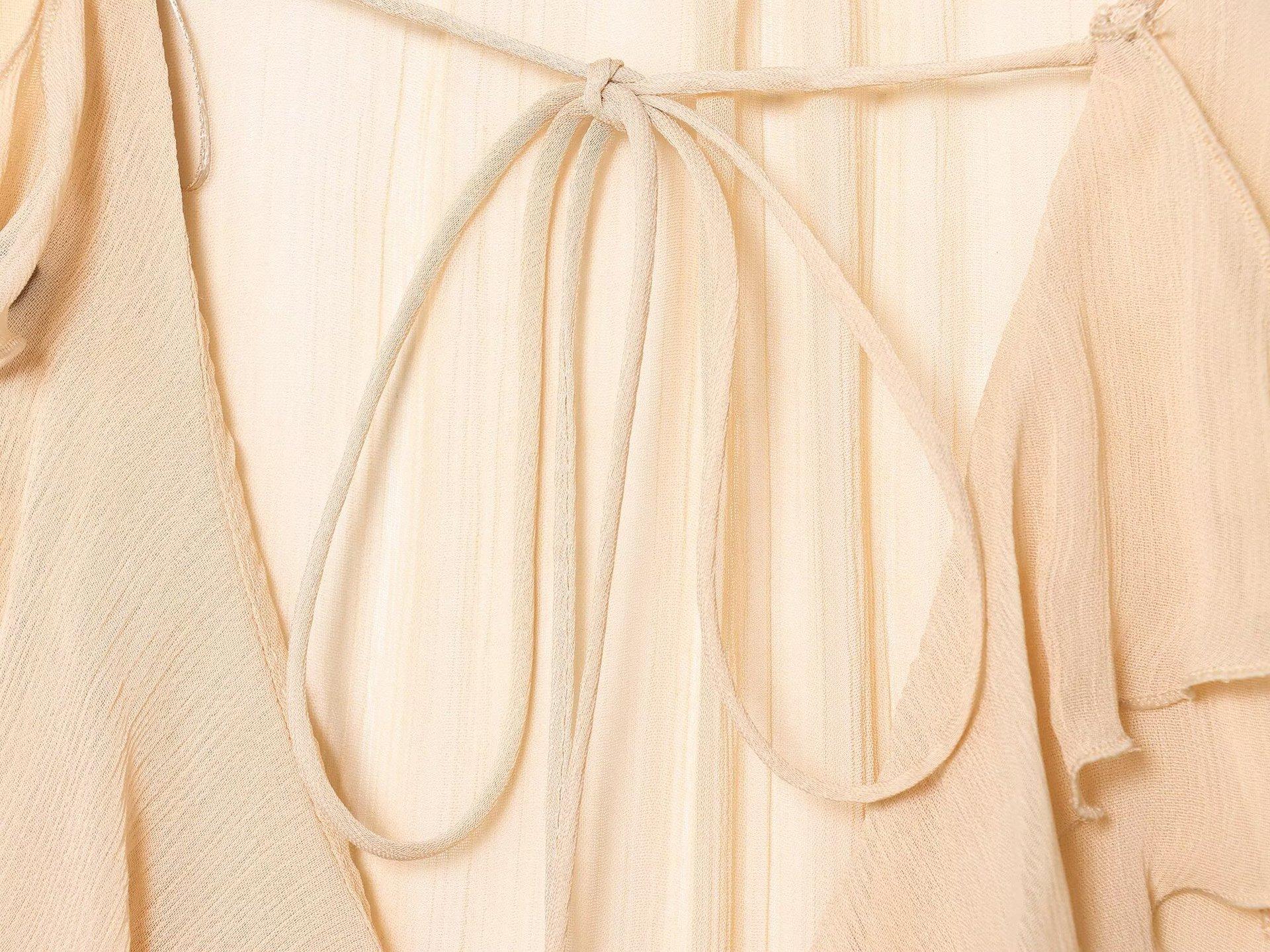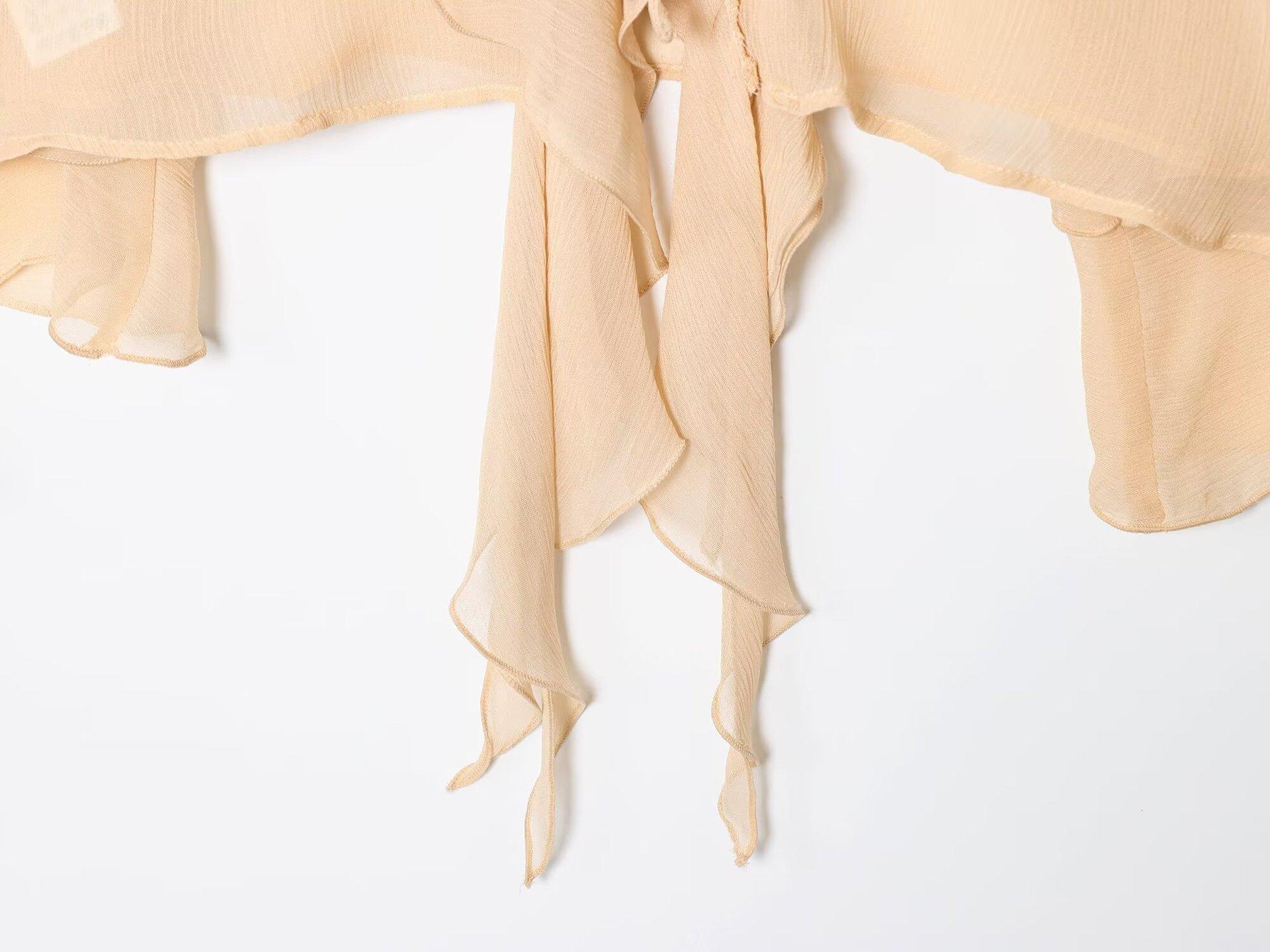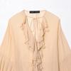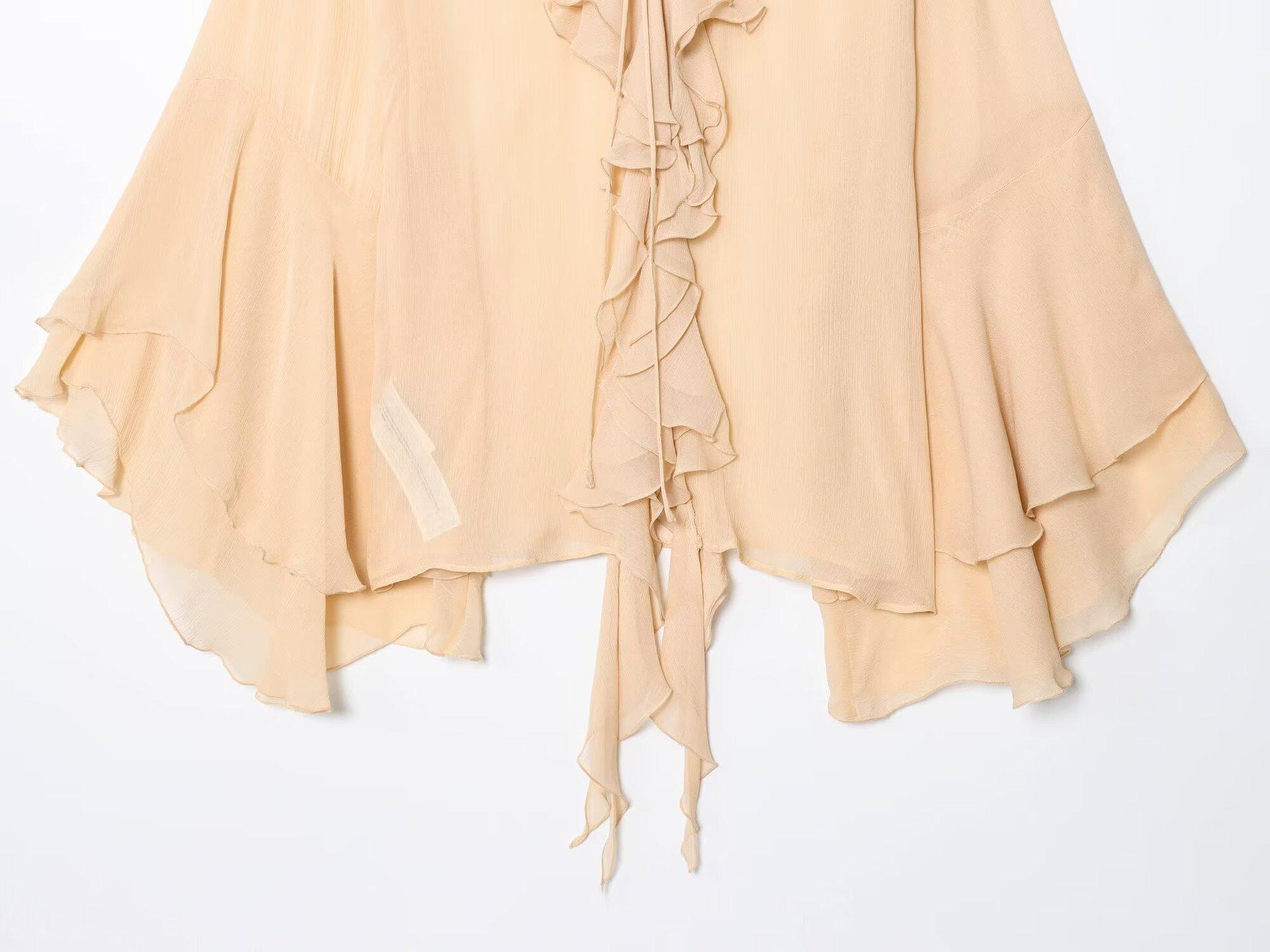 Moda femenina europea y americana transfronteriza AliExpress más vendido camisa elegante casual temperamento cuello bajo con lazo manga acampanada con volantes
