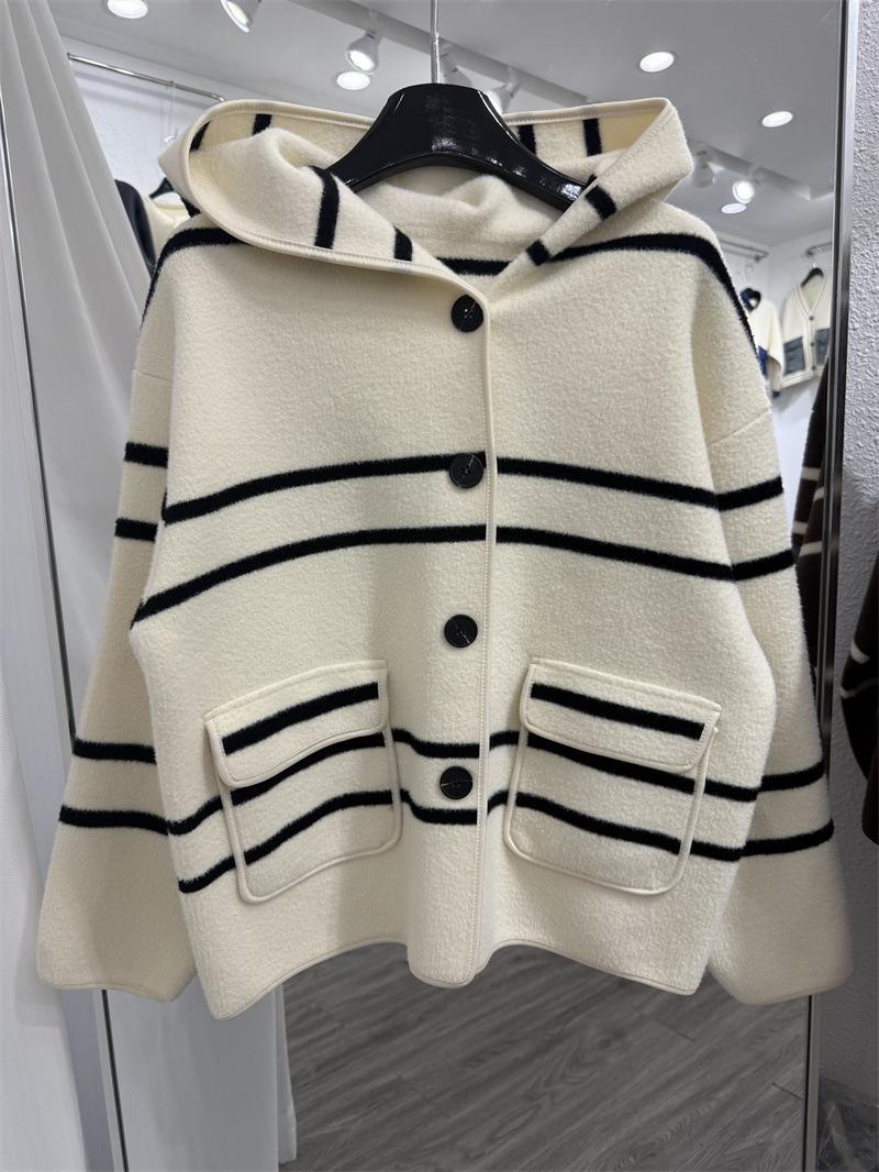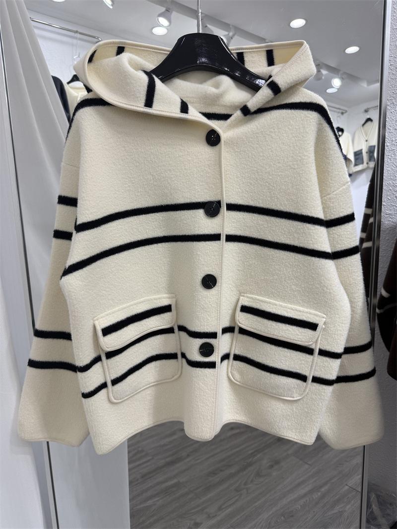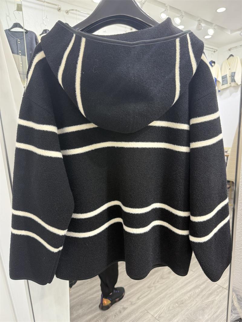 Ropa de mujer transfronteriza otoño e invierno 2025 nuevo cárdigan a rayas con capucha chaqueta top de punto versátil