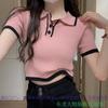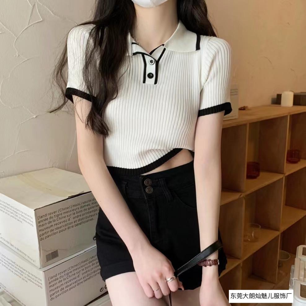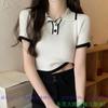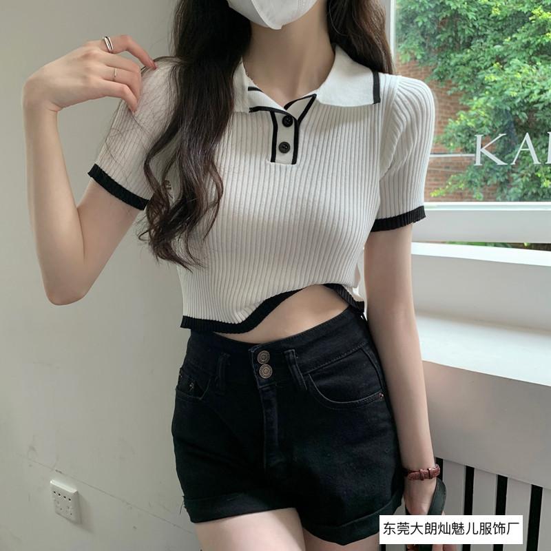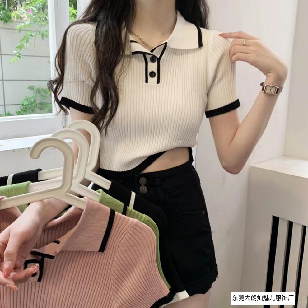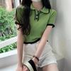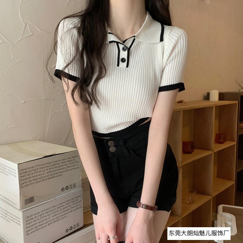 2025 Nuevo Verano Delgado Seda de Hielo Tejido Top Sentido del Diseño Nicho Manga Corta Camisa Polo para Mujer