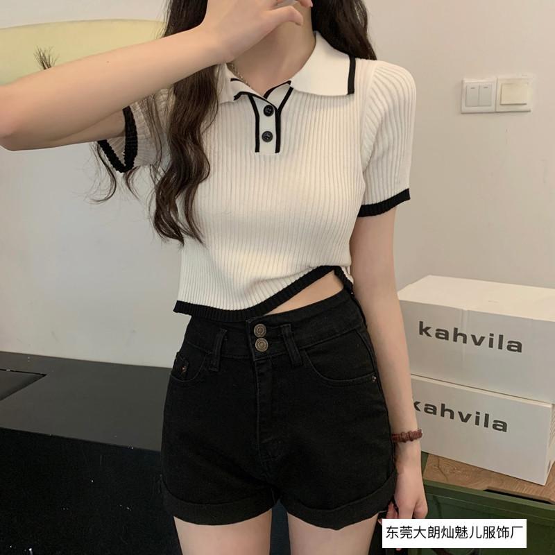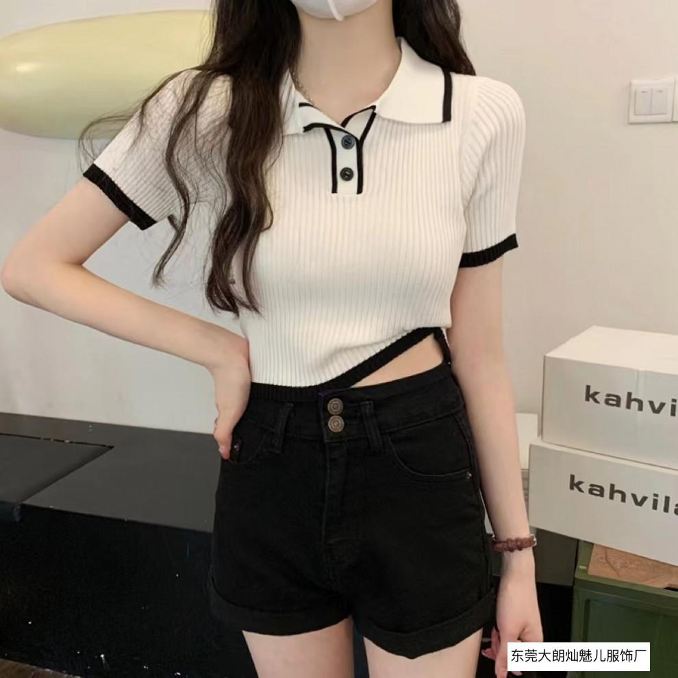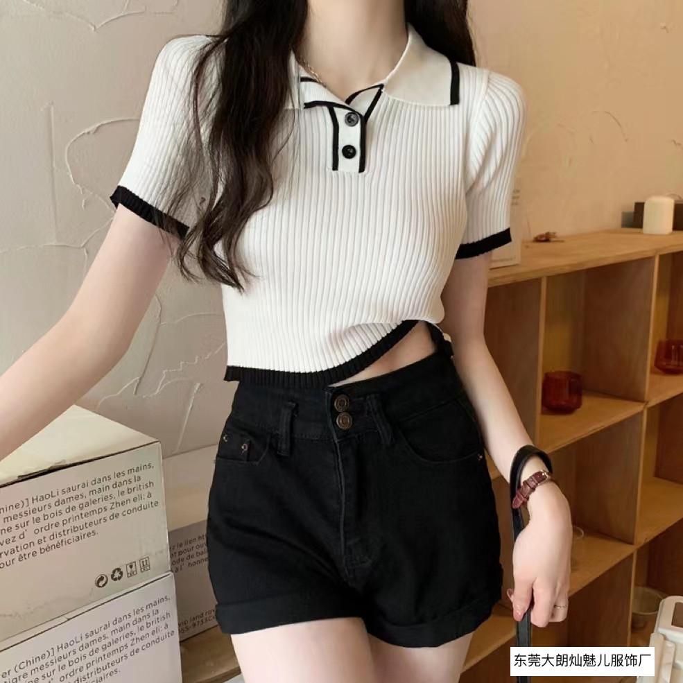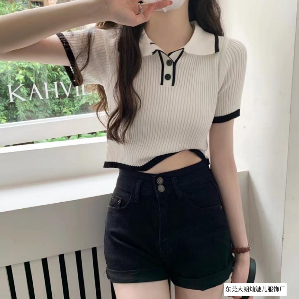 2025 Nuevo Verano Delgado Seda de Hielo Tejido Top Sentido del Diseño Nicho Manga Corta Camisa Polo para Mujer
