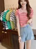 stripe, Versatile, Contrasting colors, Color matching, buttons, Off-shoulder