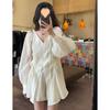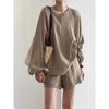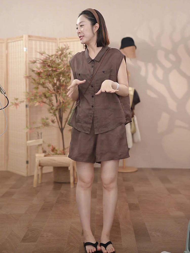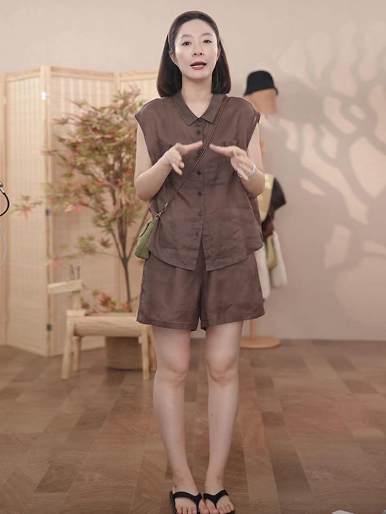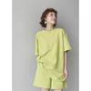 Conjunto Casual de Dos Piezas de Camiseta de Solapa Cruzada y Shorts Verano 2025 Retro Holgado Estilizado Look Elegante Traje de Moda