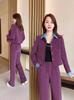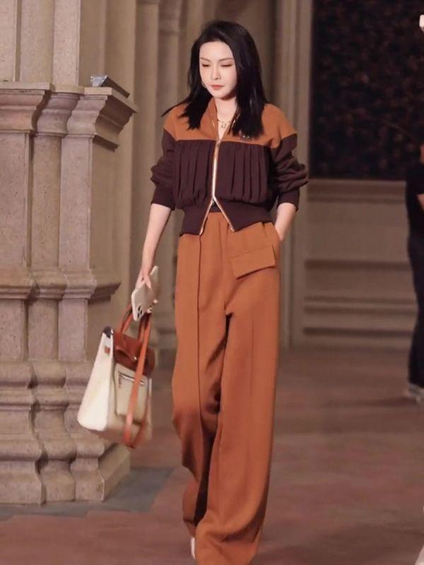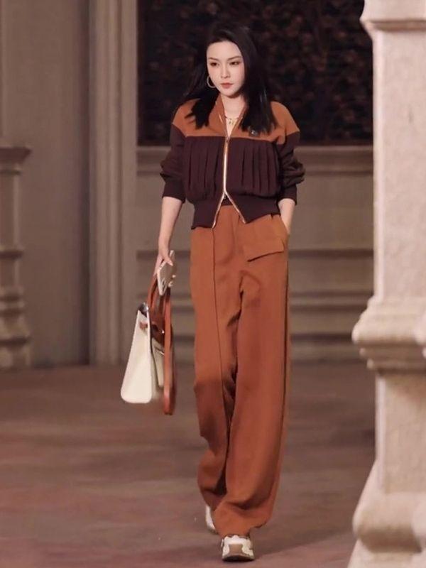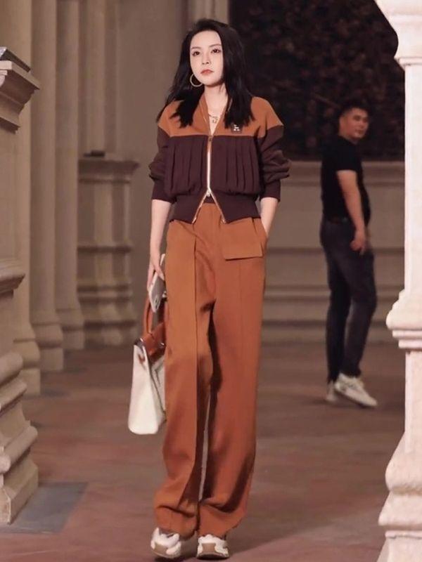 Conjunto de otoño a juego, un conjunto completo de traje casual retro francés, para mujer, primavera y otoño, pantalones de pierna ancha, conjunto deportivo de dos piezas, adelgazante