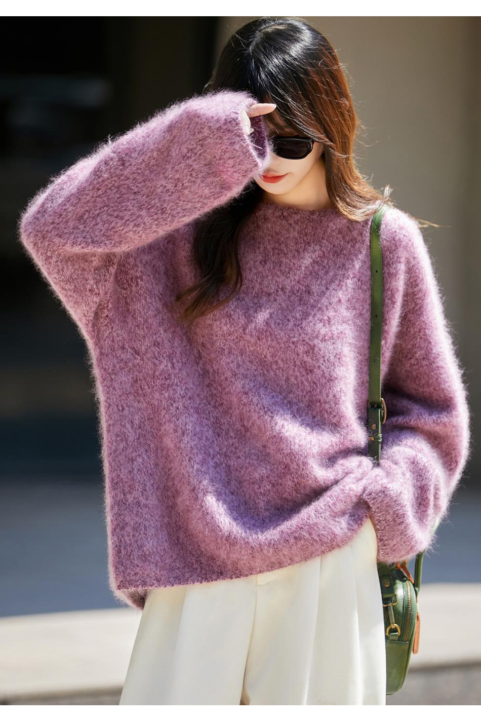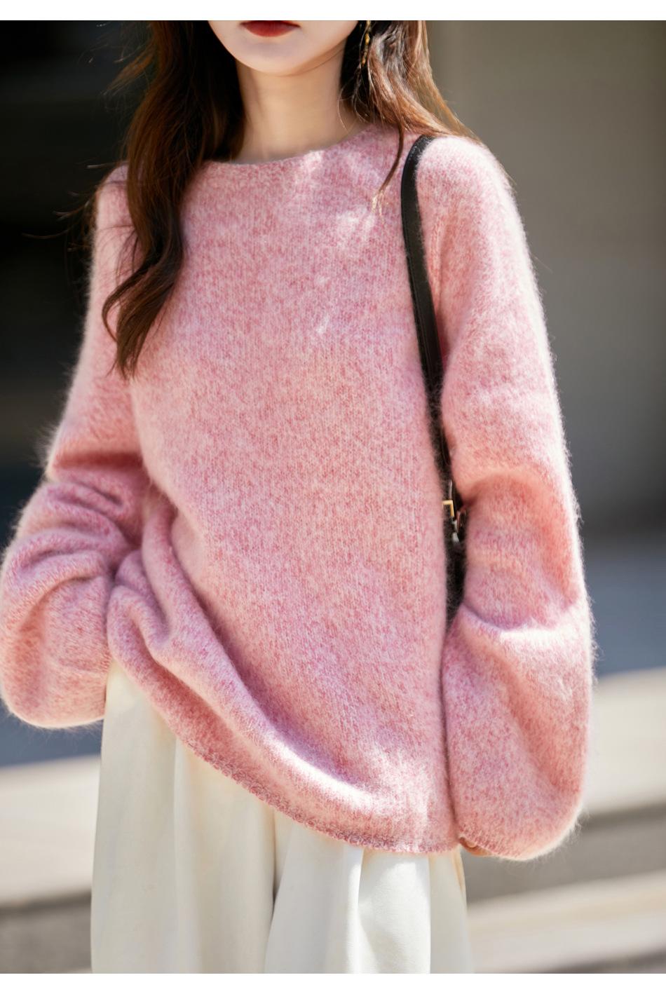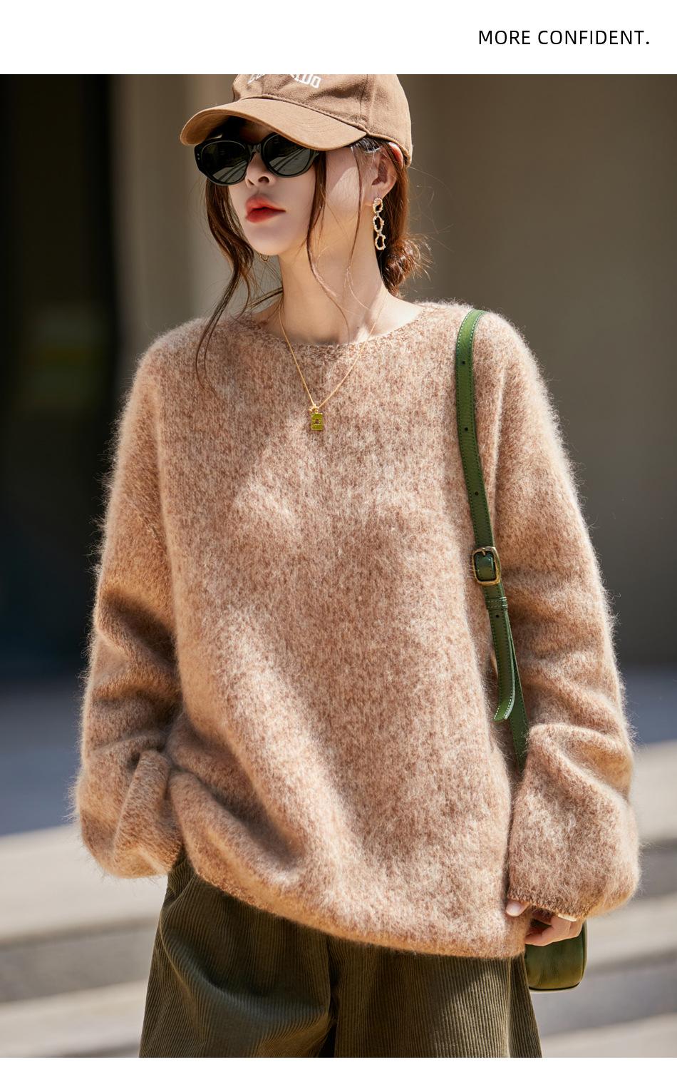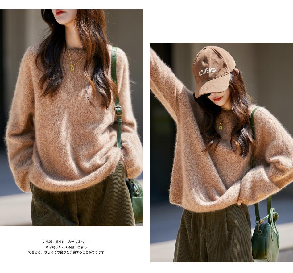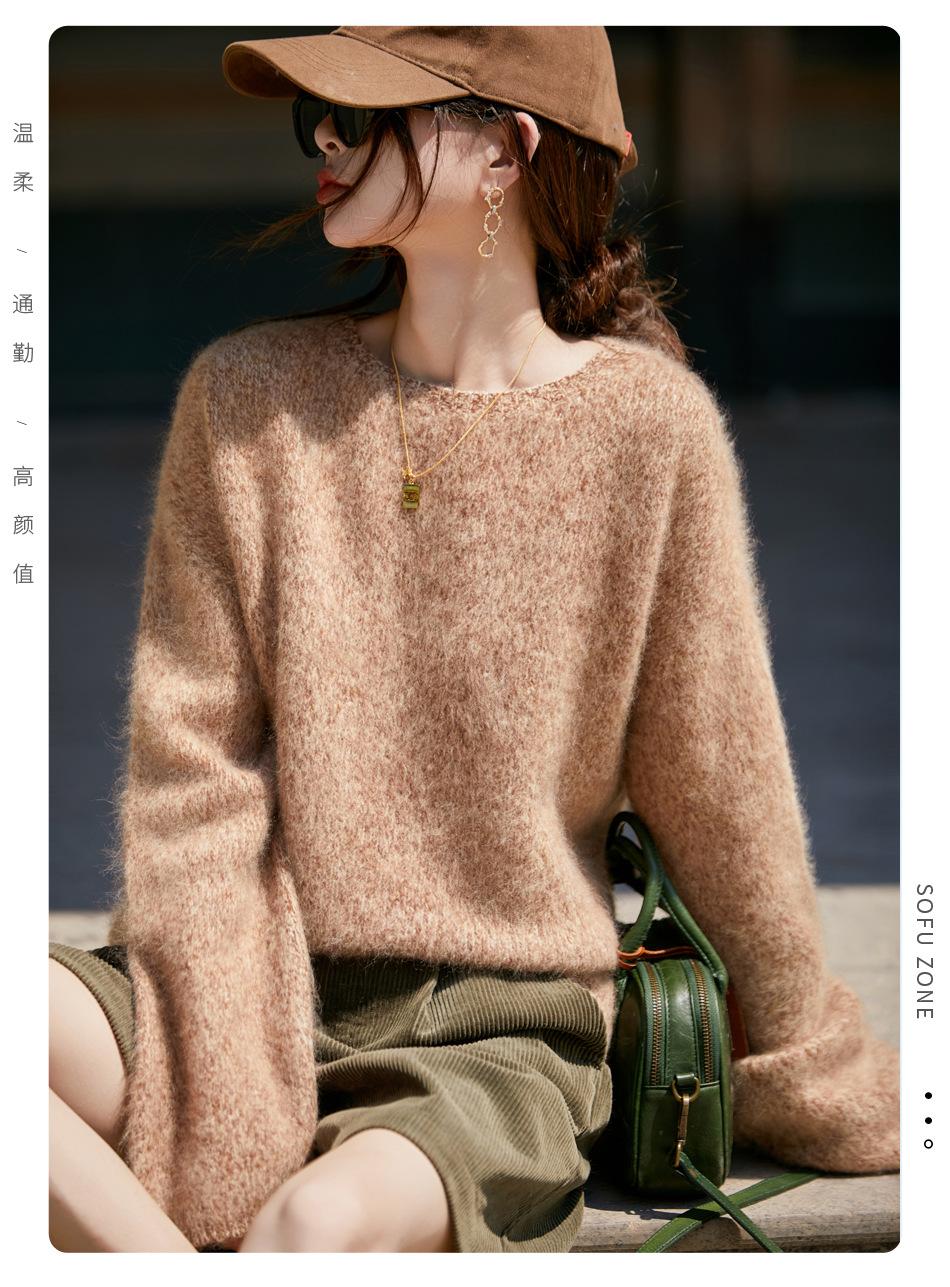 Nuevo Suéter de Lana de Franela Gruesa de Otoño e Invierno para Mujer, Estilo Holgado y Perezoso, Suéter Tejido, Ropa para Mujer Teñida al Espacio, Capa Base