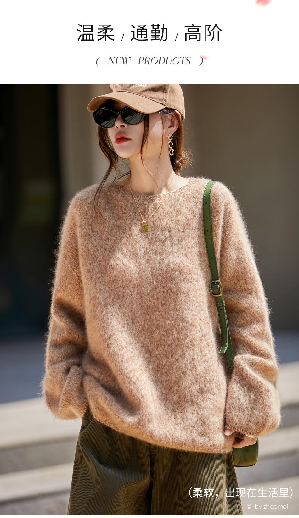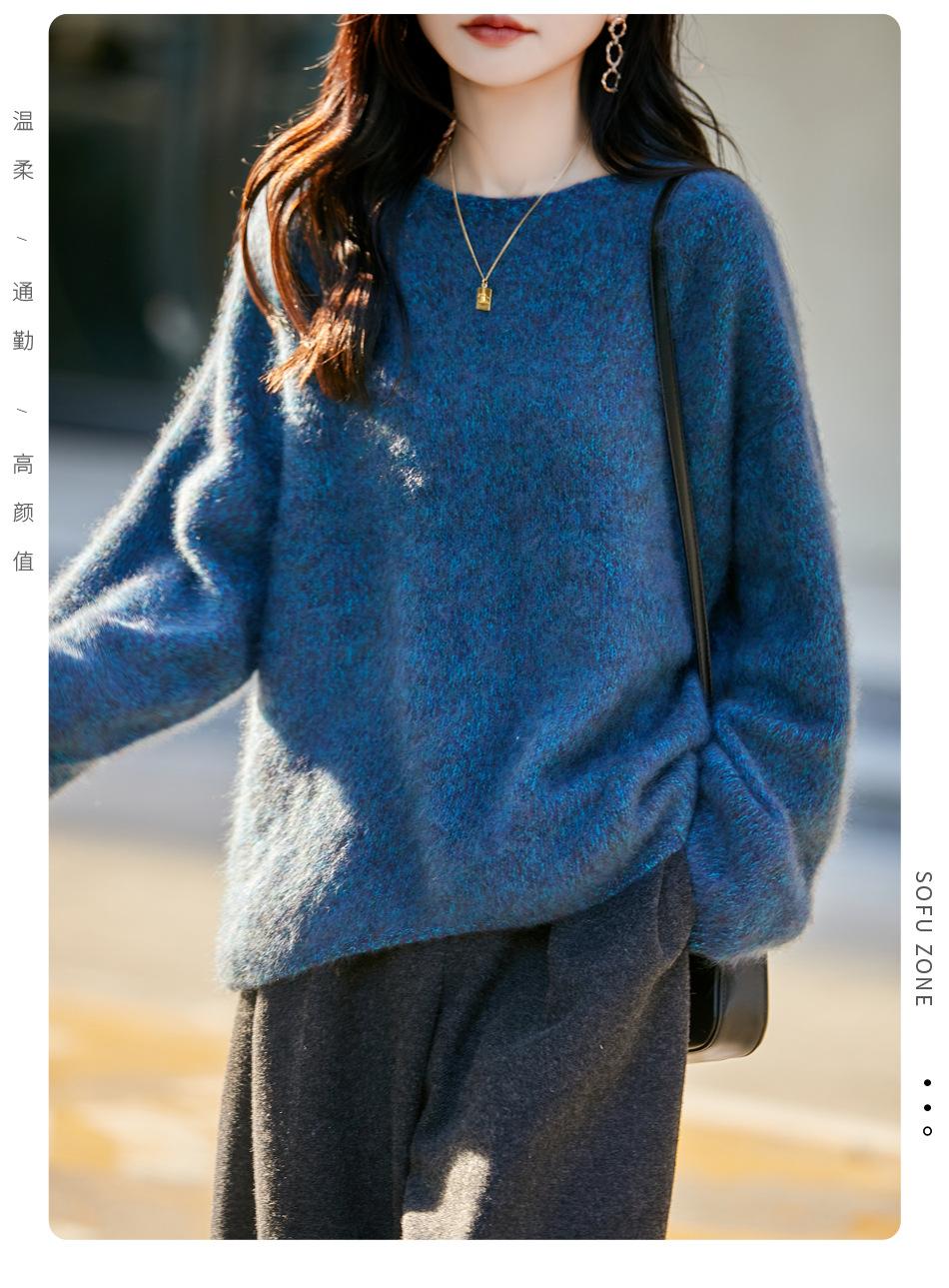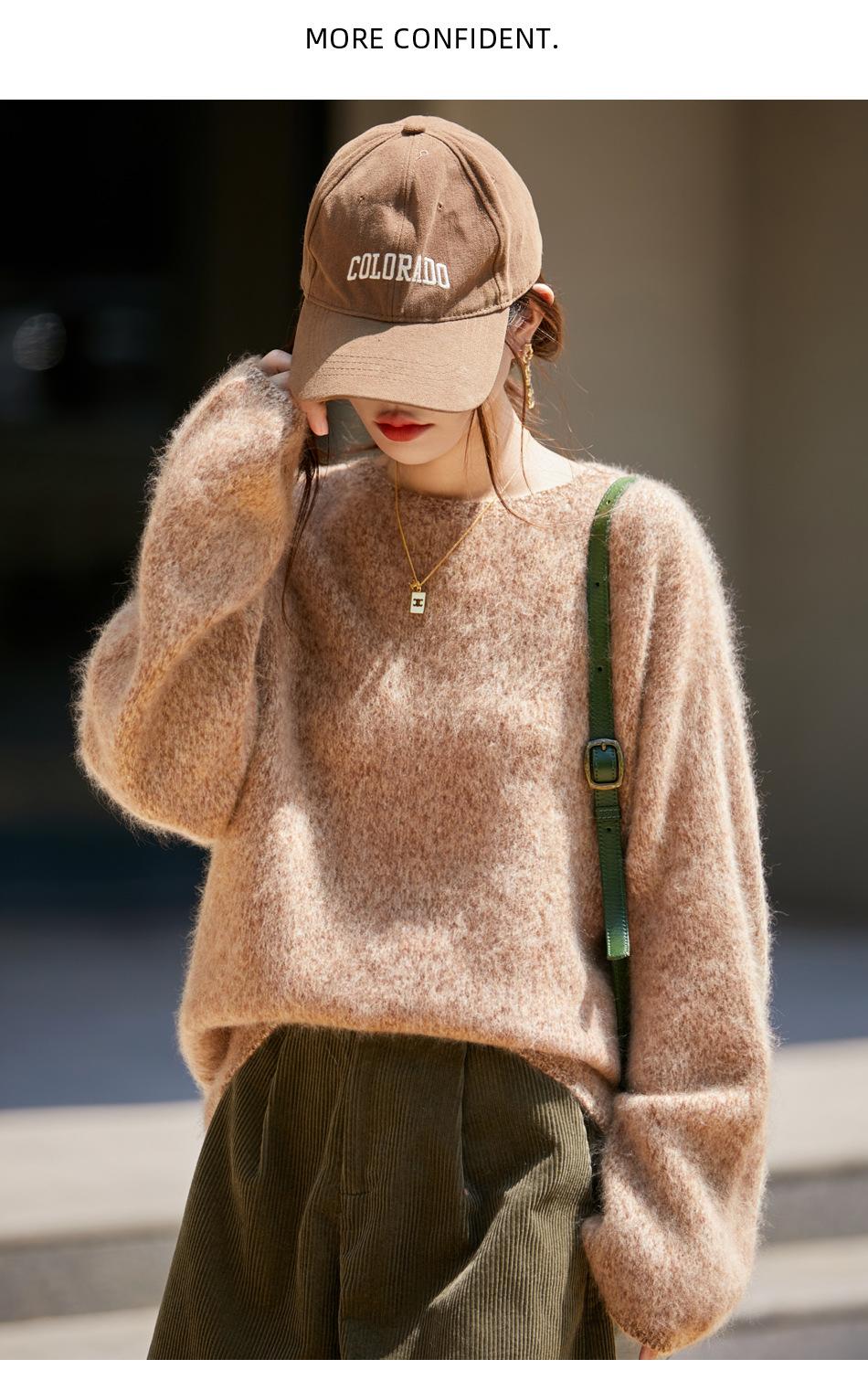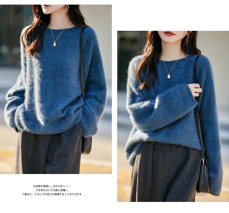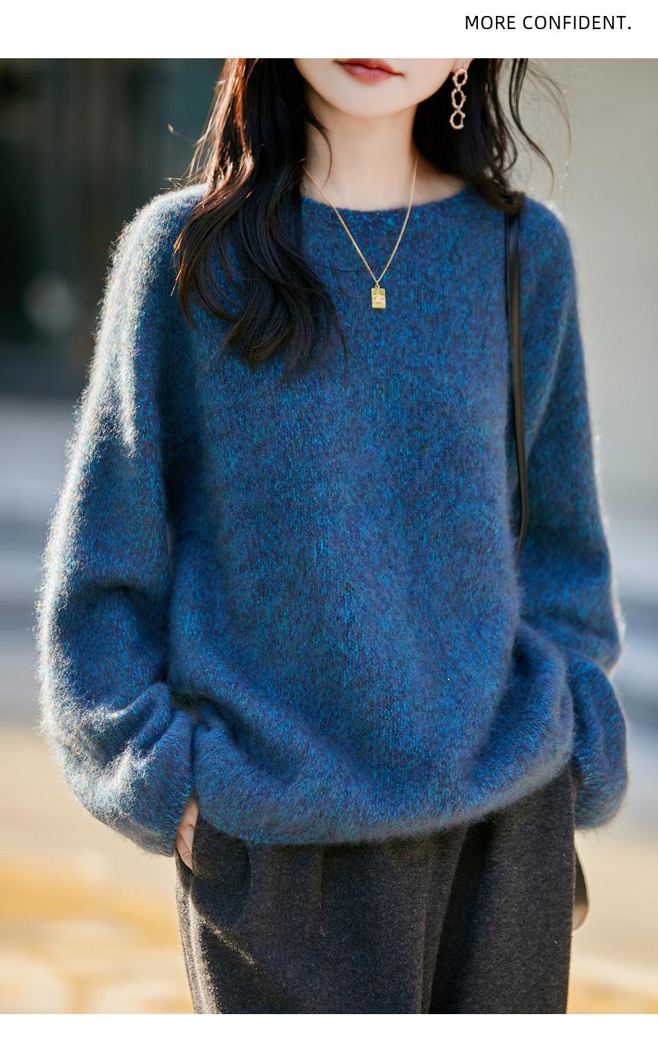 Nuevo Suéter de Lana de Franela Gruesa de Otoño e Invierno para Mujer, Estilo Holgado y Perezoso, Suéter Tejido, Ropa para Mujer Teñida al Espacio, Capa Base