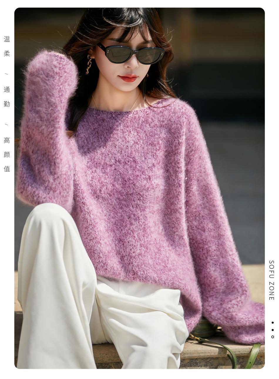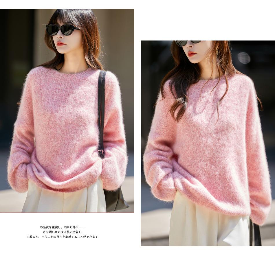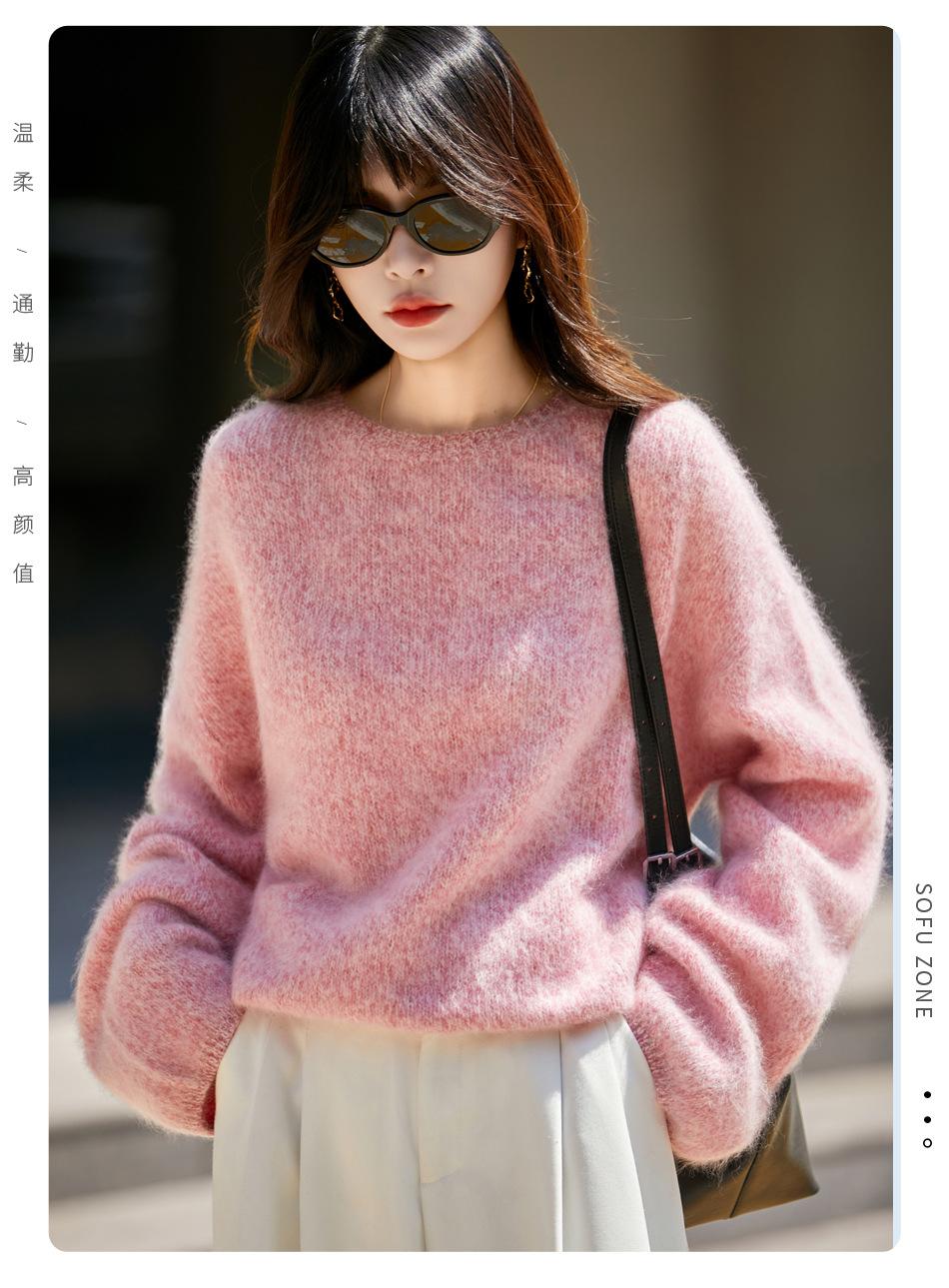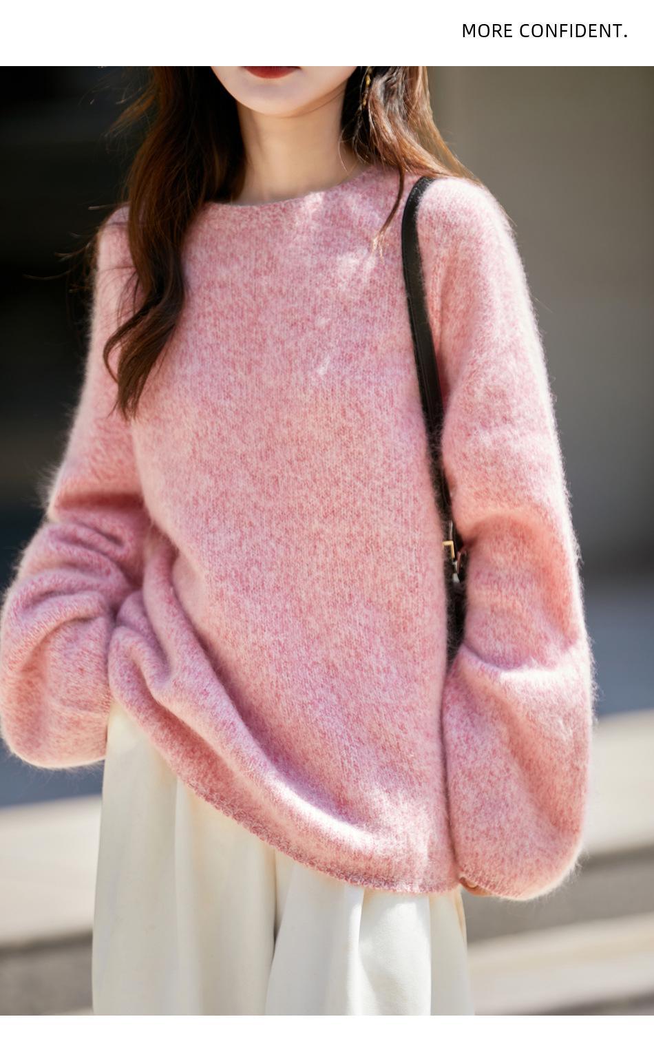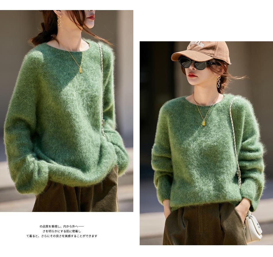 Nuevo Suéter de Lana de Franela Gruesa de Otoño e Invierno para Mujer, Estilo Holgado y Perezoso, Suéter Tejido, Ropa para Mujer Teñida al Espacio, Capa Base