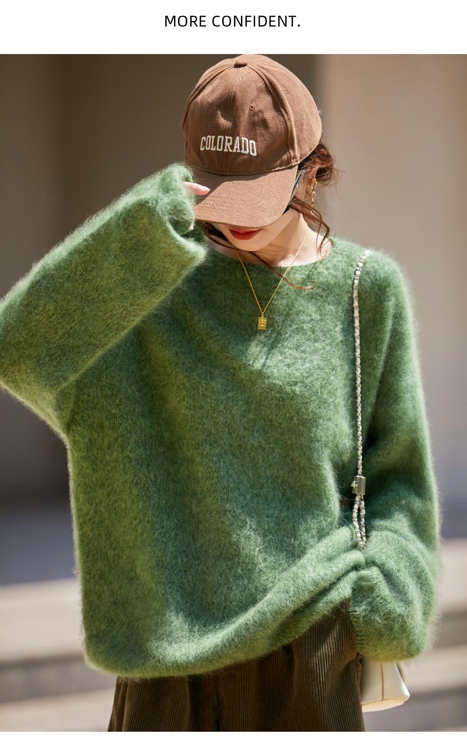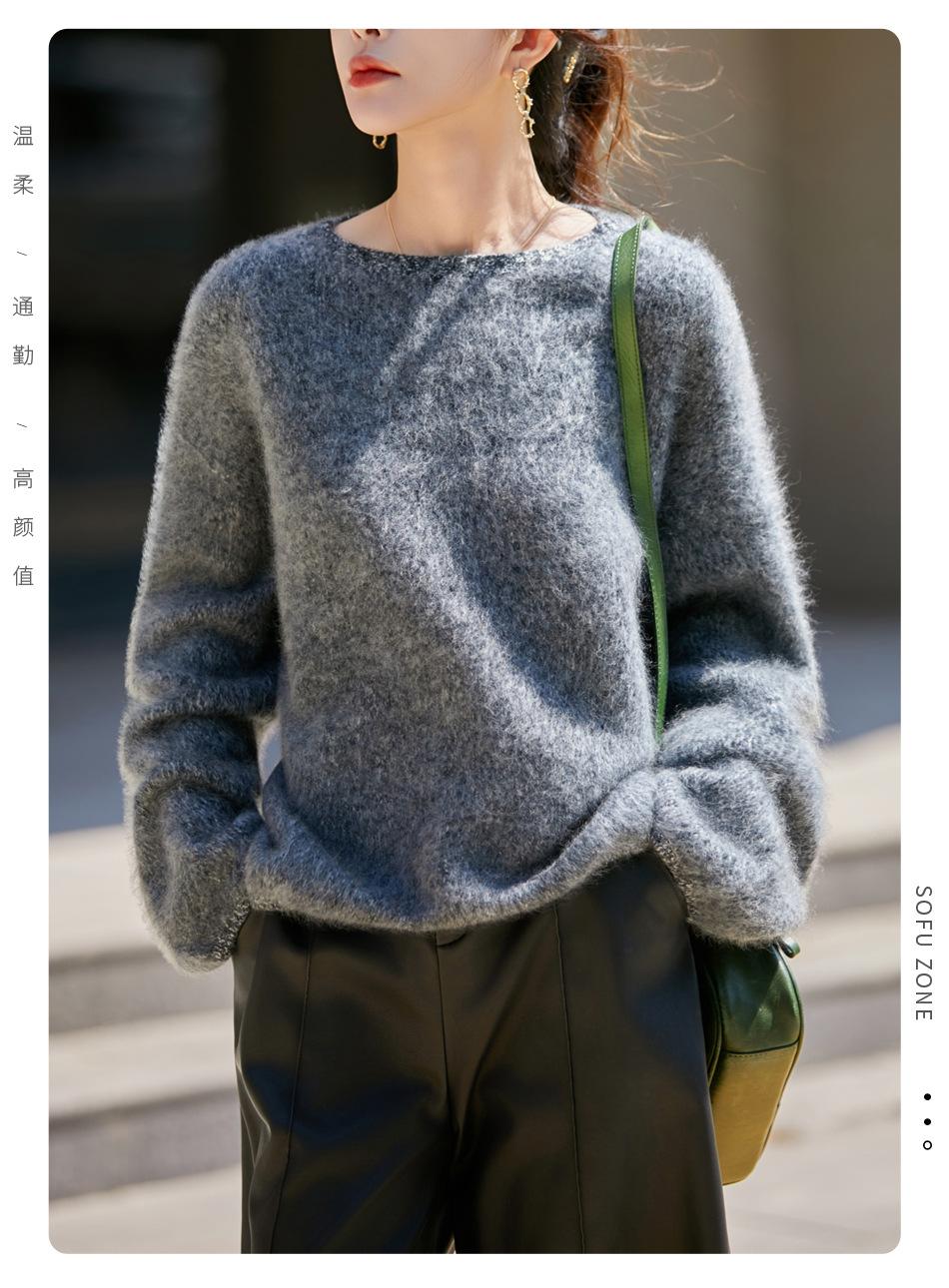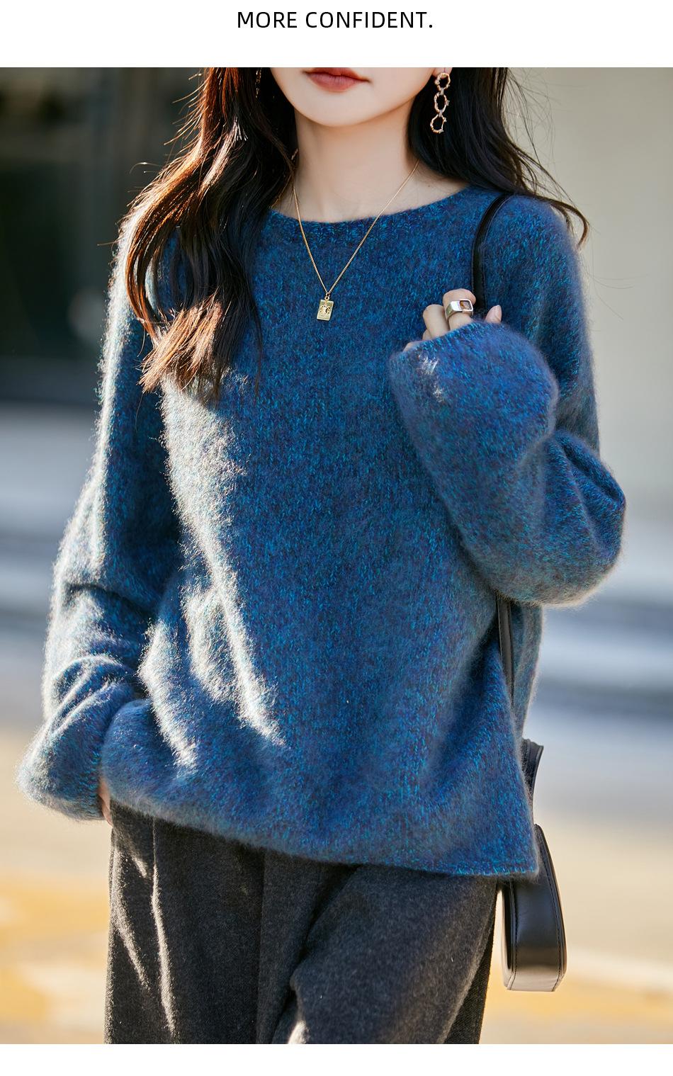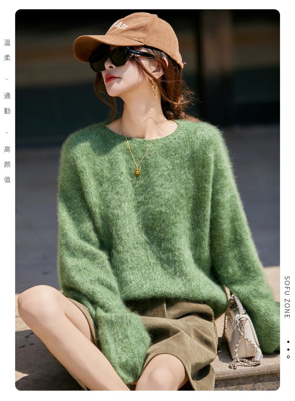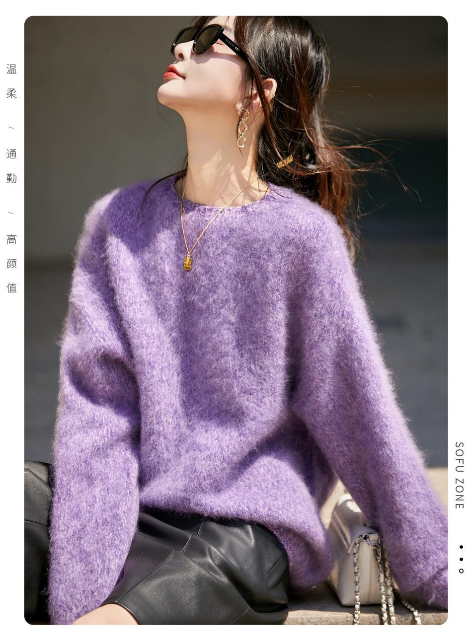 Nuevo Suéter de Lana de Franela Gruesa de Otoño e Invierno para Mujer, Estilo Holgado y Perezoso, Suéter Tejido, Ropa para Mujer Teñida al Espacio, Capa Base