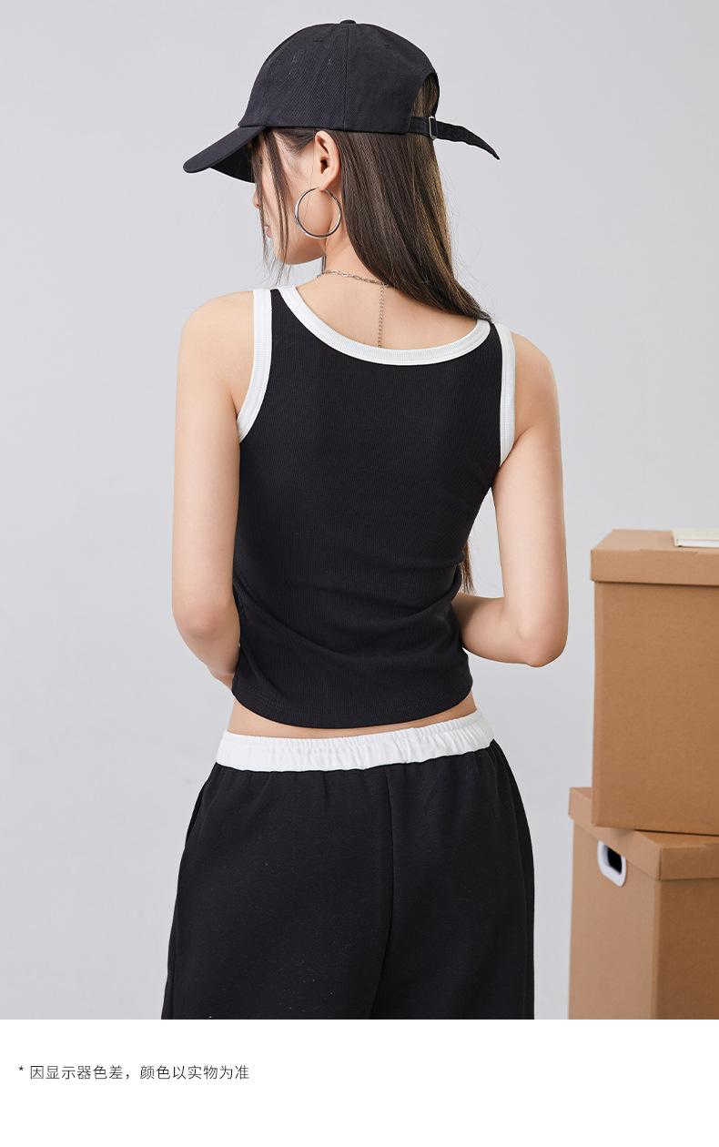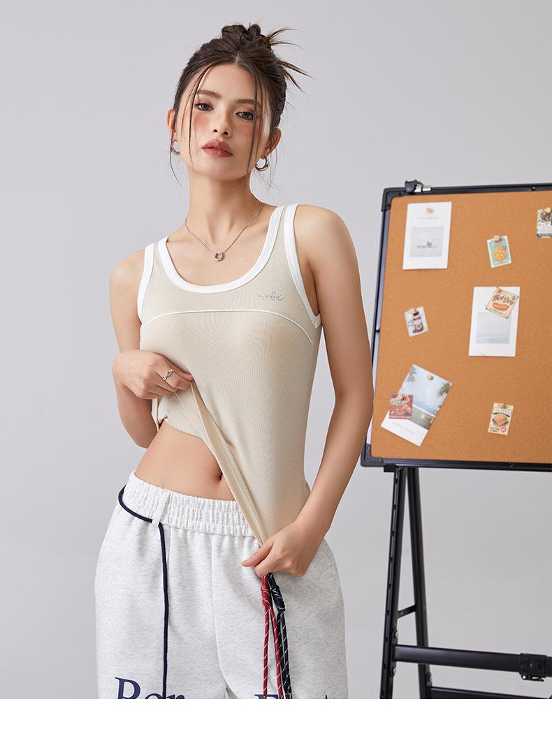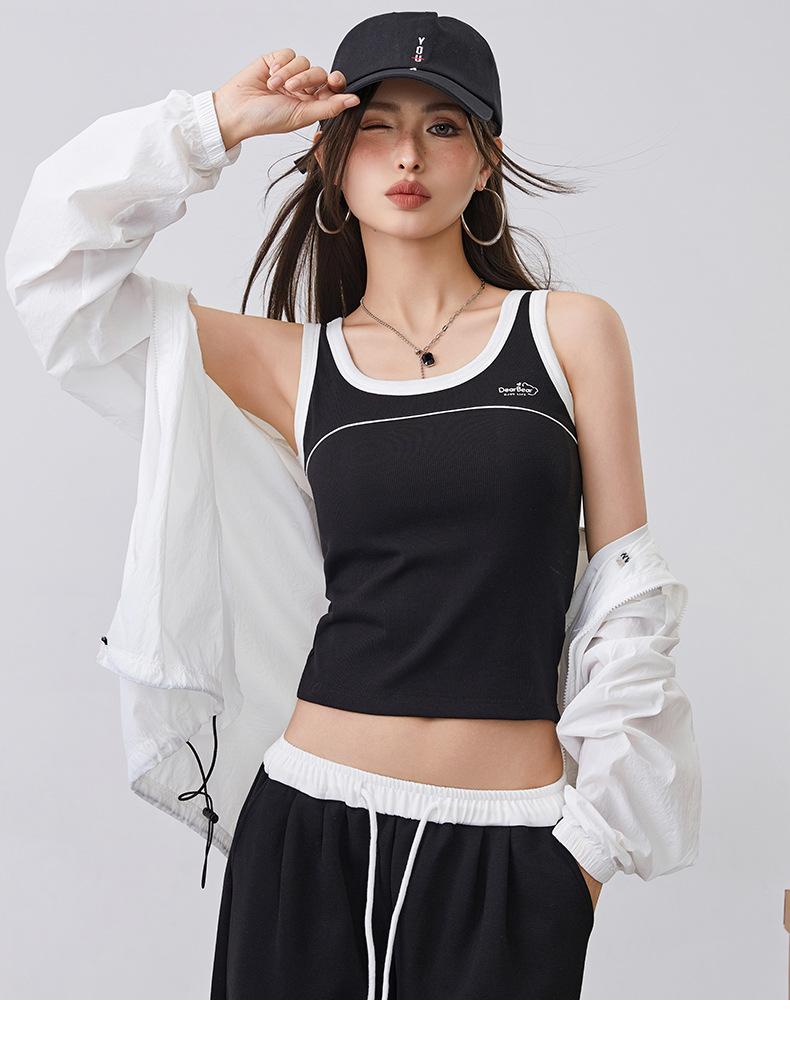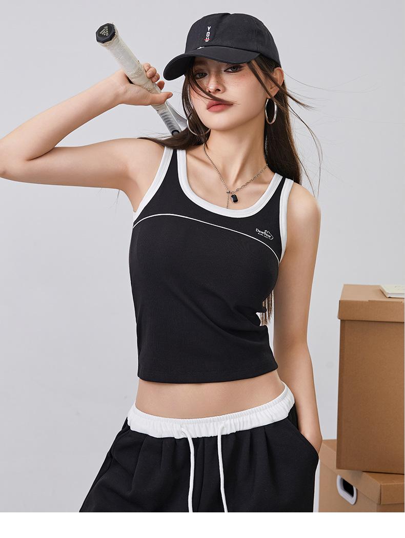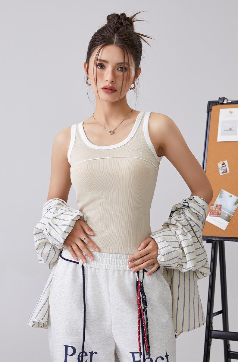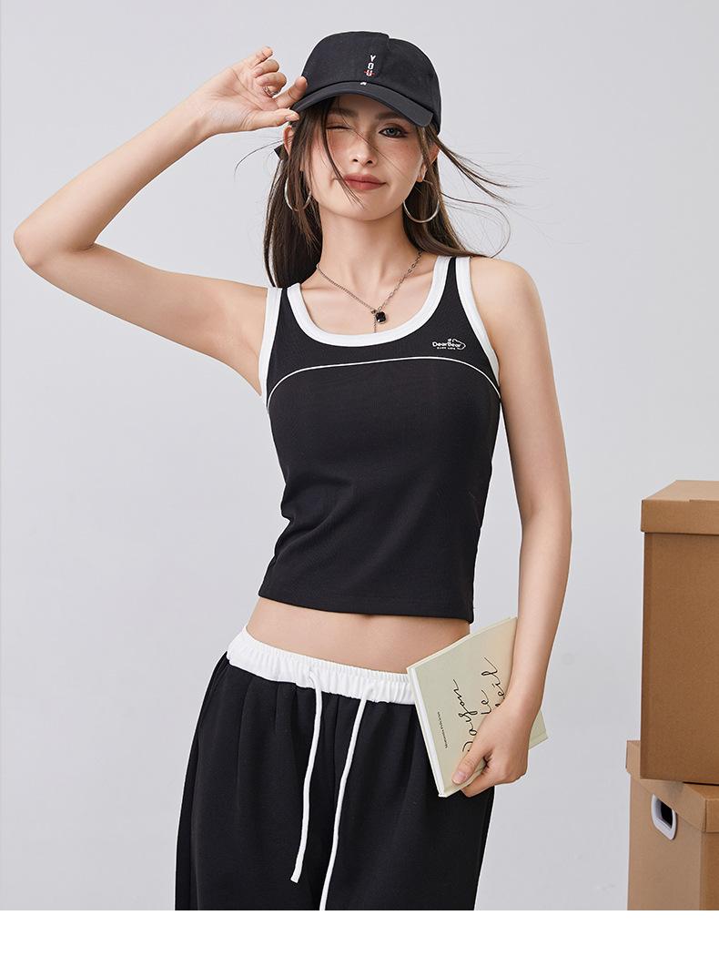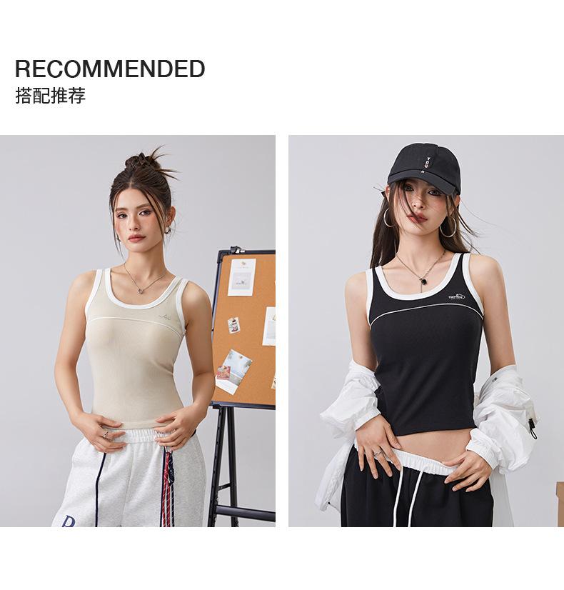 [Personalizado] Camisola Retro de Color Contraste con Estampado de Letras para Mujer 2025 Nuevo Top Interior Ajustado