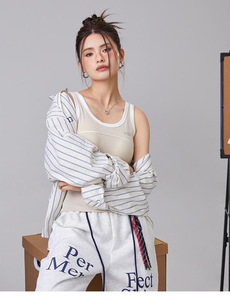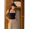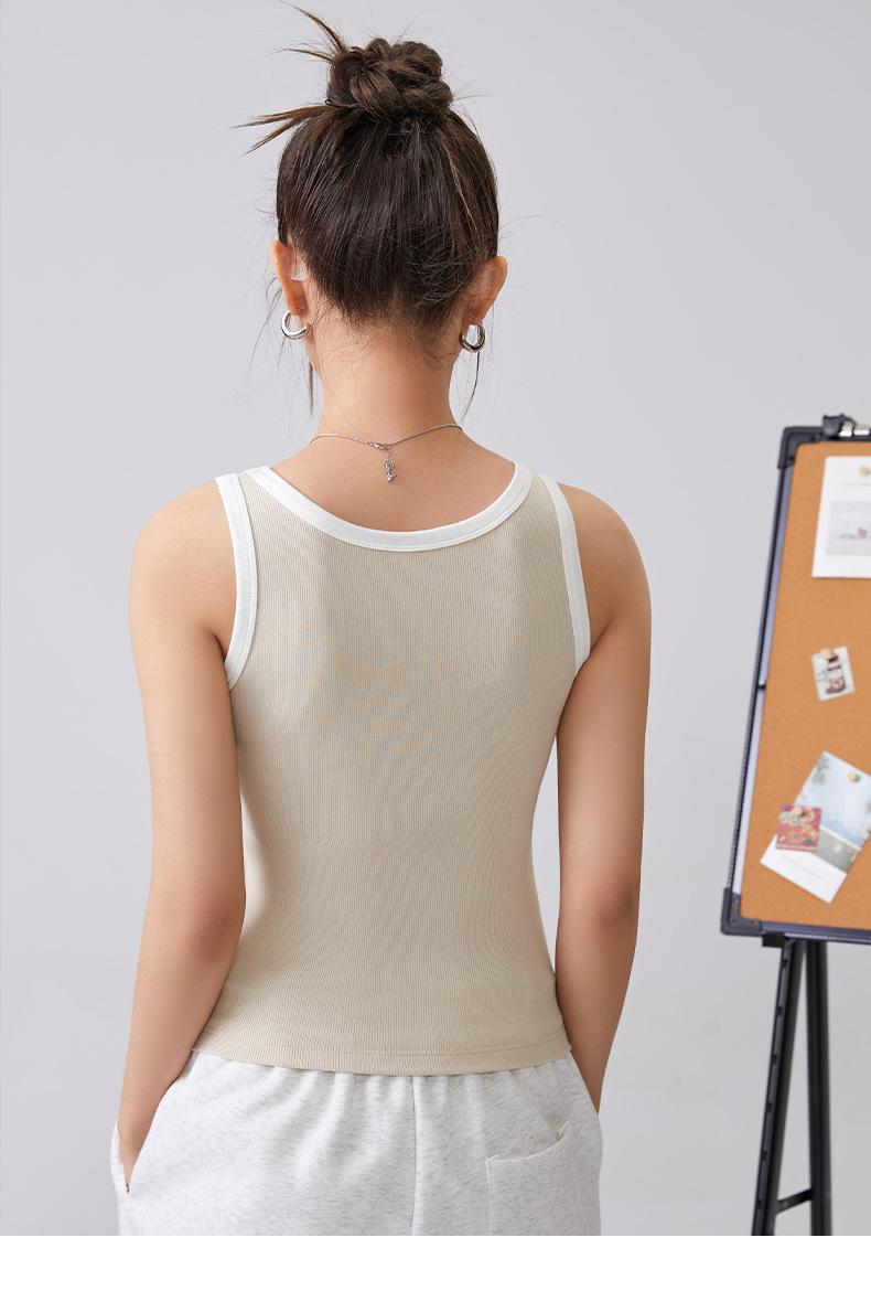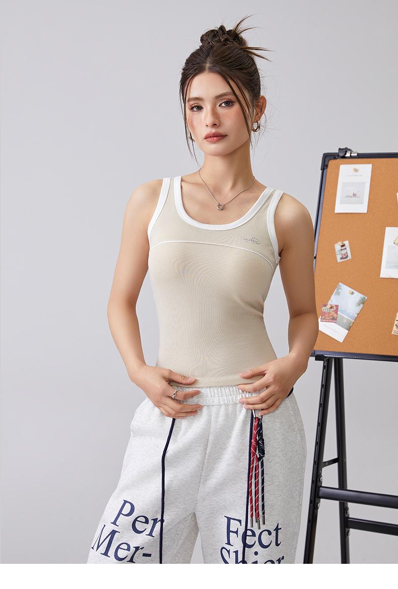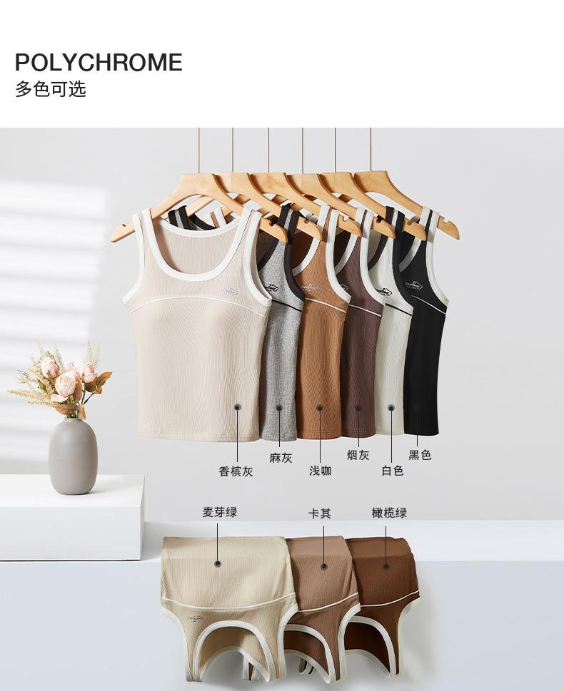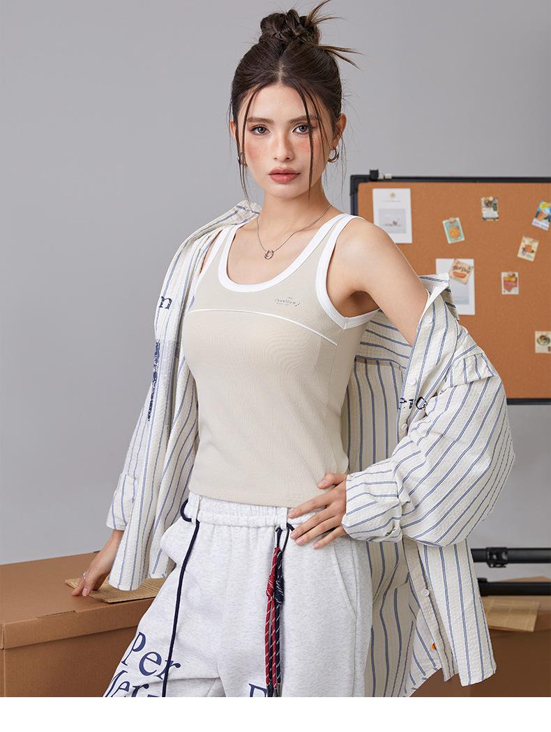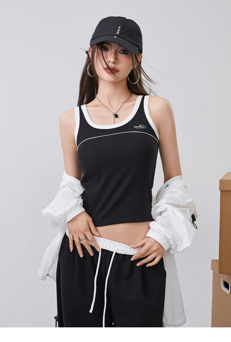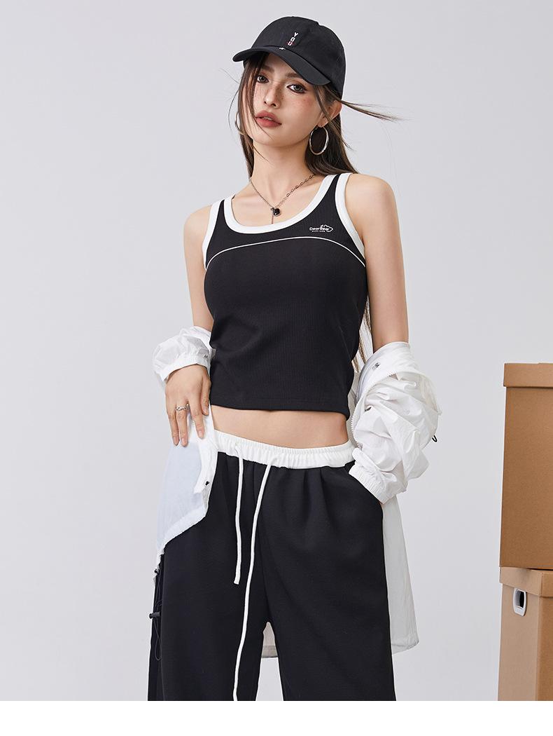 [Personalizado] Camisola Retro de Color Contraste con Estampado de Letras para Mujer 2025 Nuevo Top Interior Ajustado