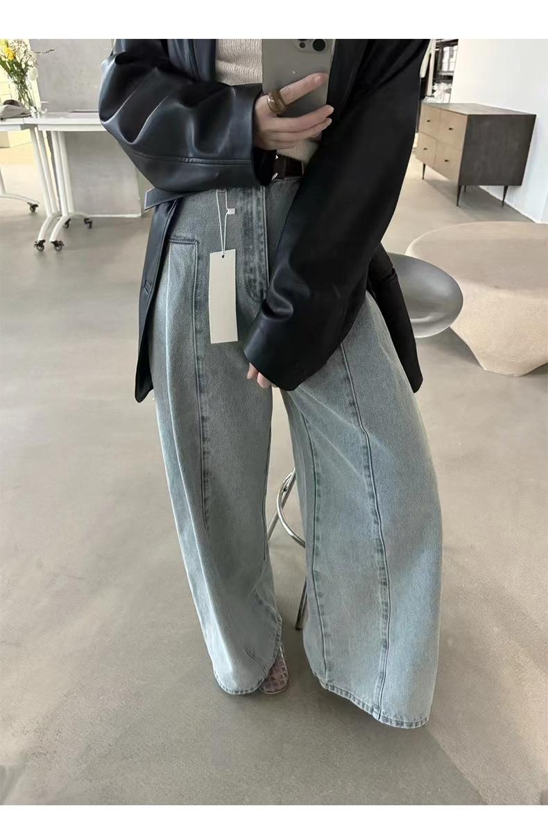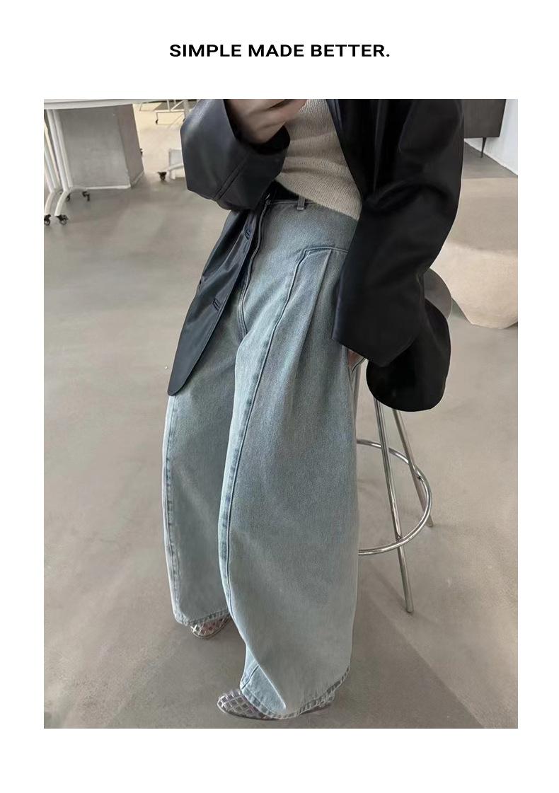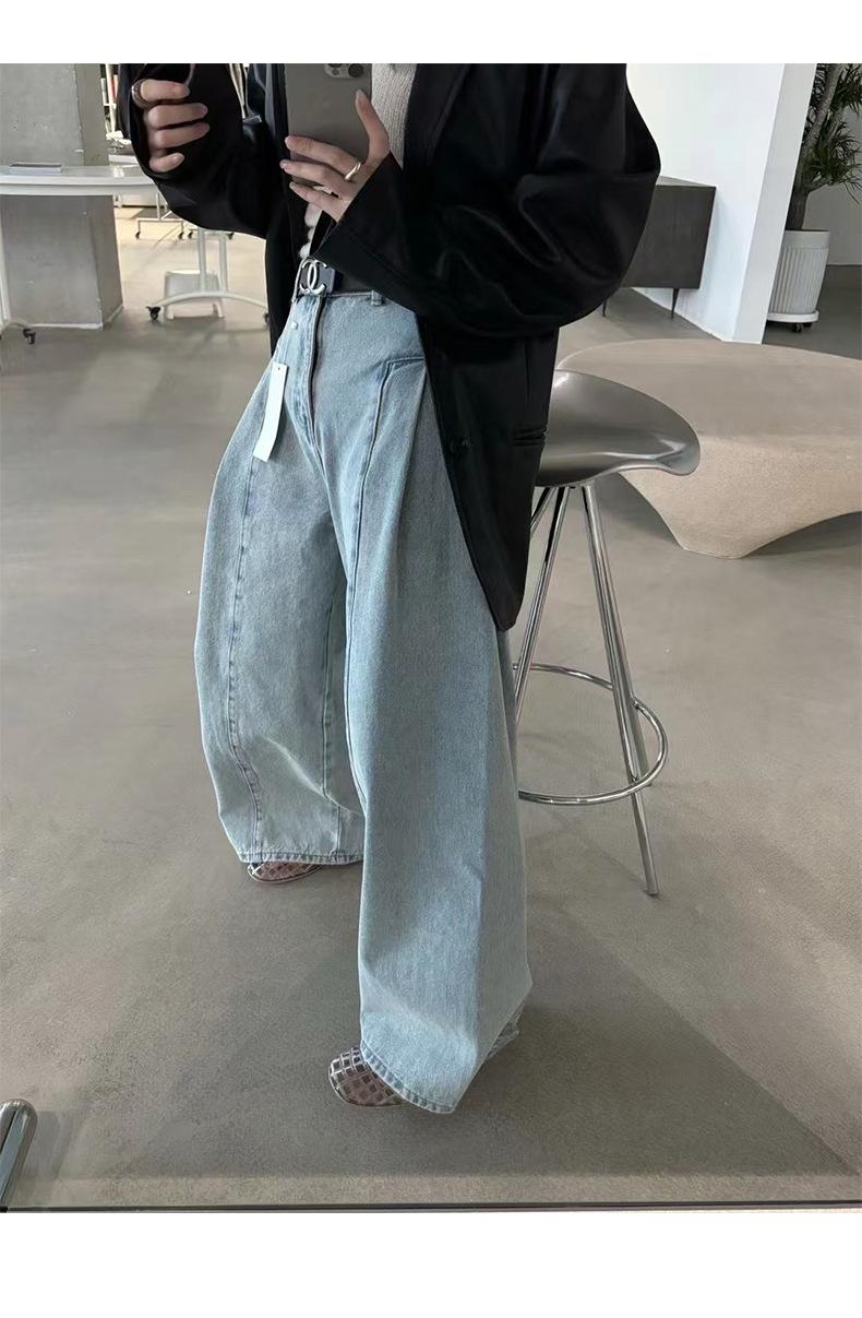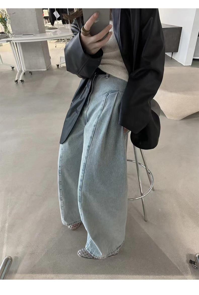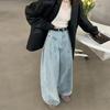 2025 Otoño Nuevo Coreano Dongdaemun Retro Casual Cintura Alta Adelgazante Versátil Pierna Ancha Pierna Recta Denim Pantalones Largos Mujer