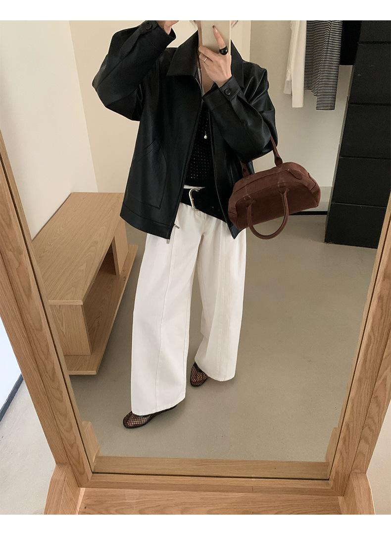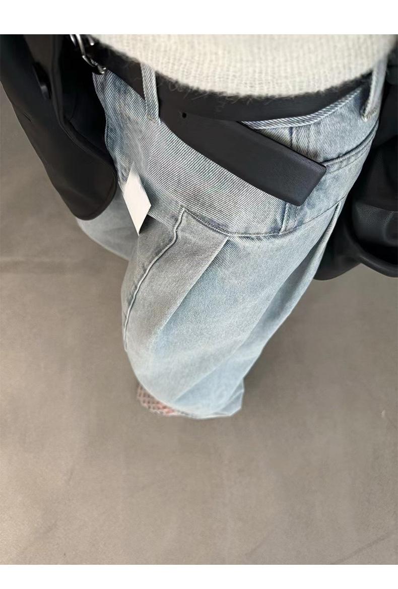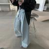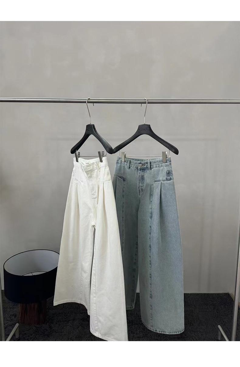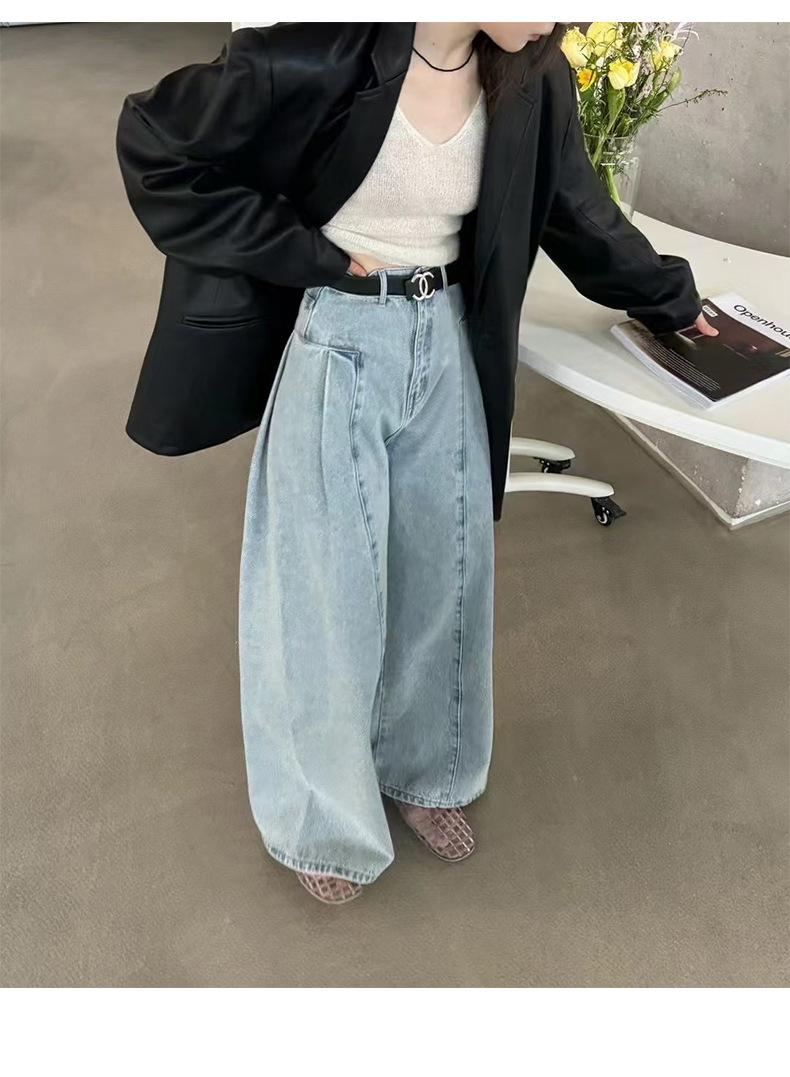 2025 Otoño Nuevo Coreano Dongdaemun Retro Casual Cintura Alta Adelgazante Versátil Pierna Ancha Pierna Recta Denim Pantalones Largos Mujer