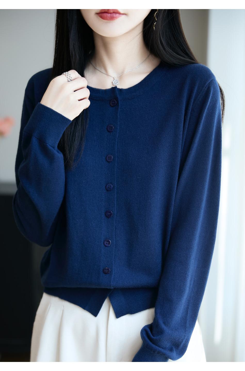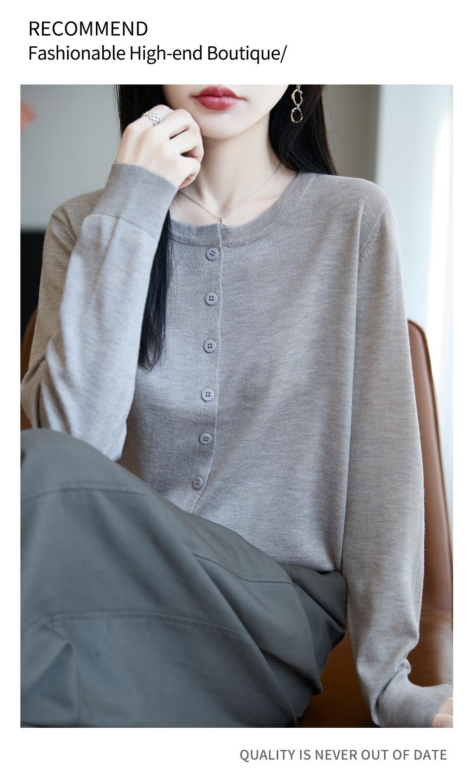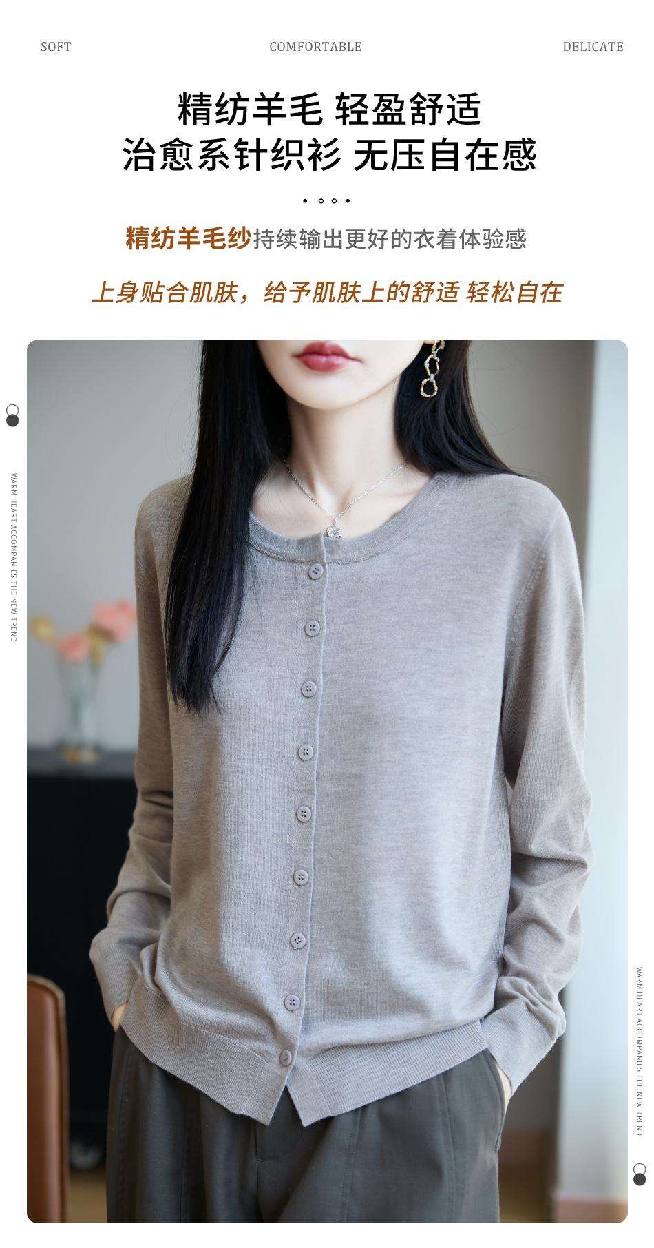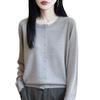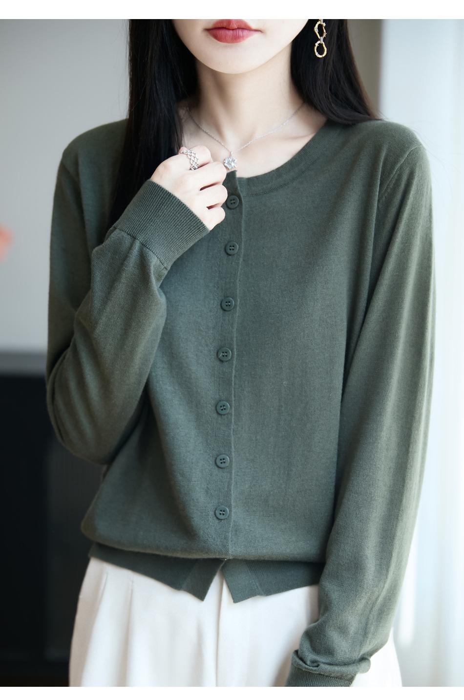 Cárdigan de punto de lana merino fina de punto de manga larga y cuello redondo de principios de otoño transfronterizo, abrigo para mujer delgado, suelto, casual, cómodo, adelgazante