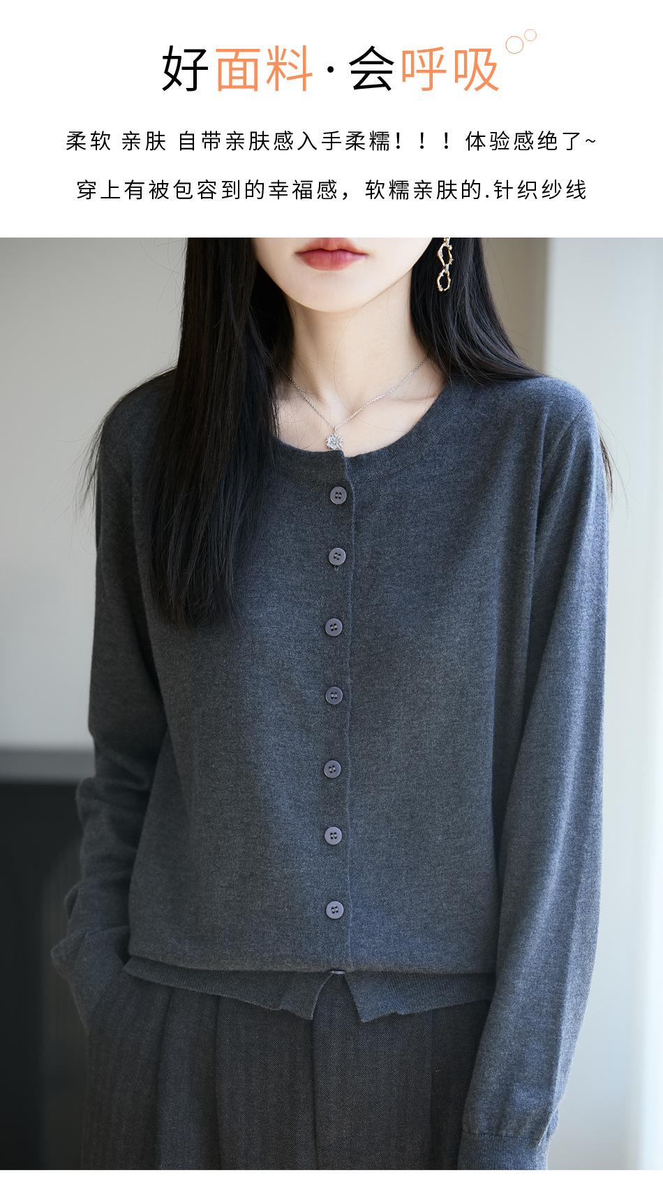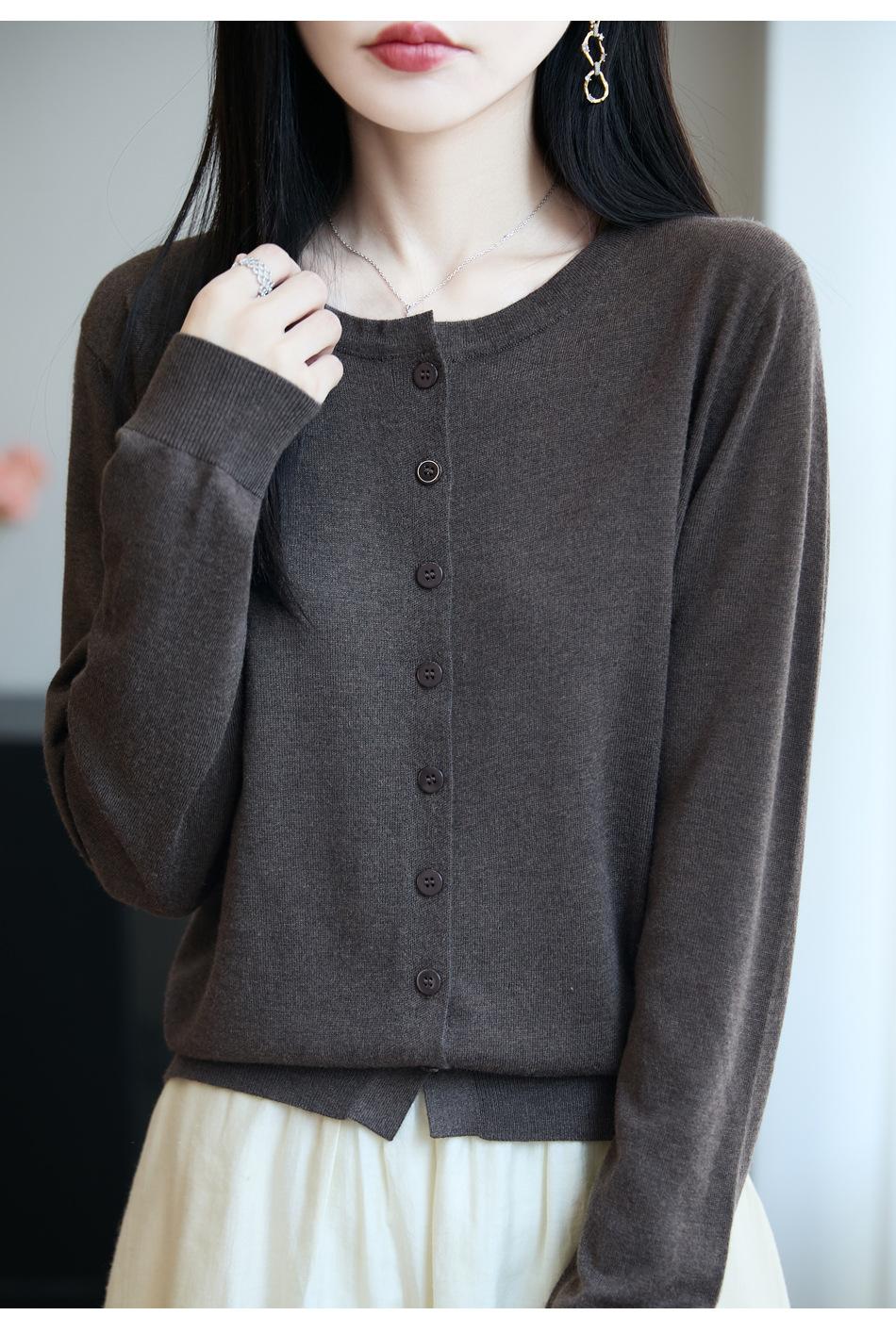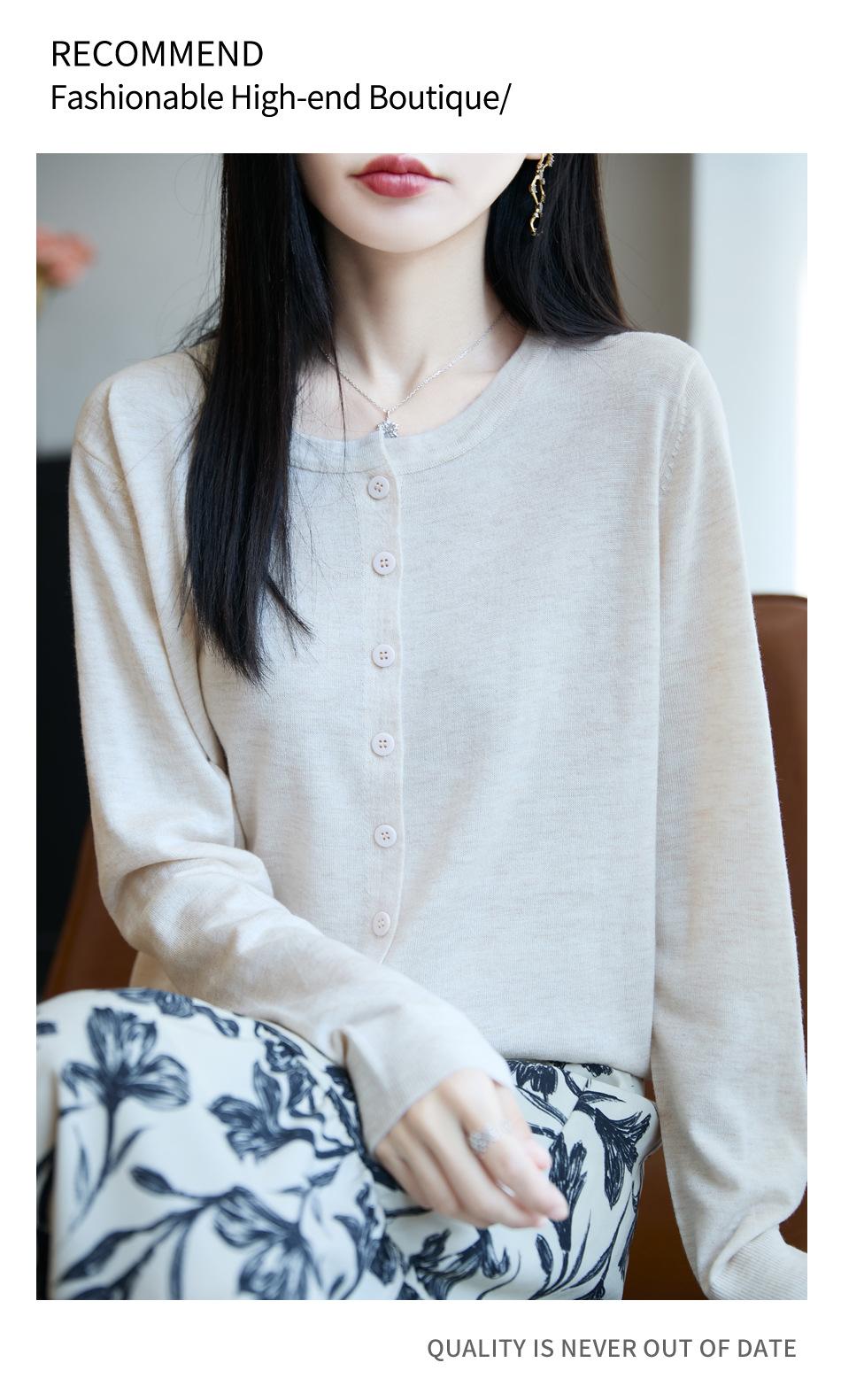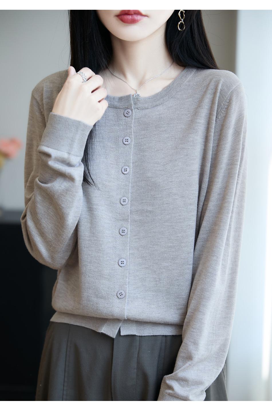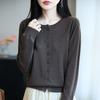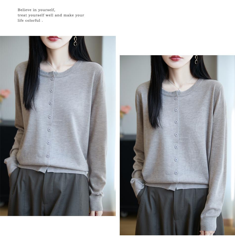 Cárdigan de punto de lana merino fina de punto de manga larga y cuello redondo de principios de otoño transfronterizo, abrigo para mujer delgado, suelto, casual, cómodo, adelgazante