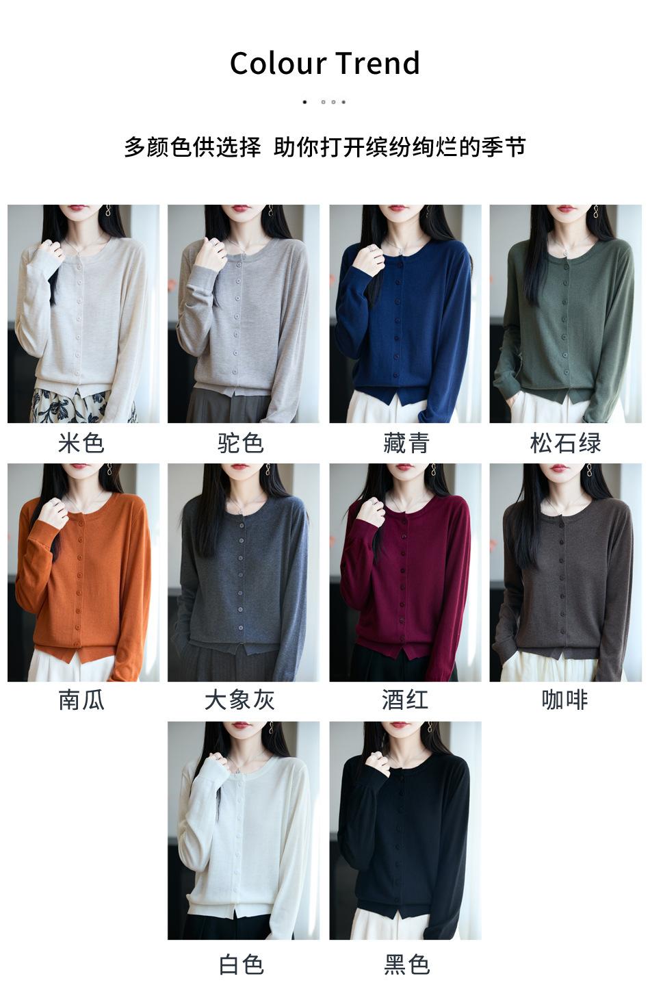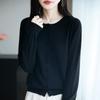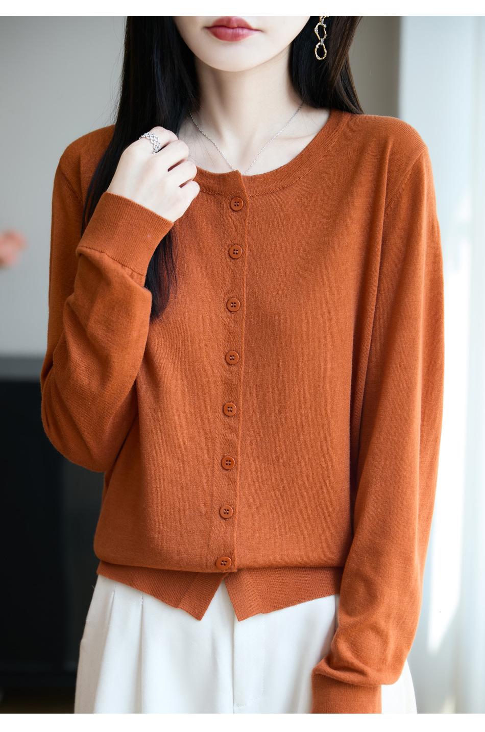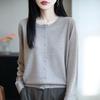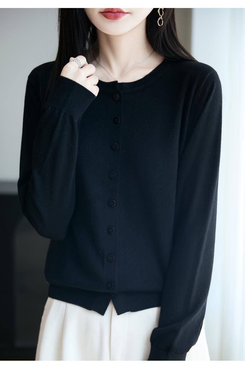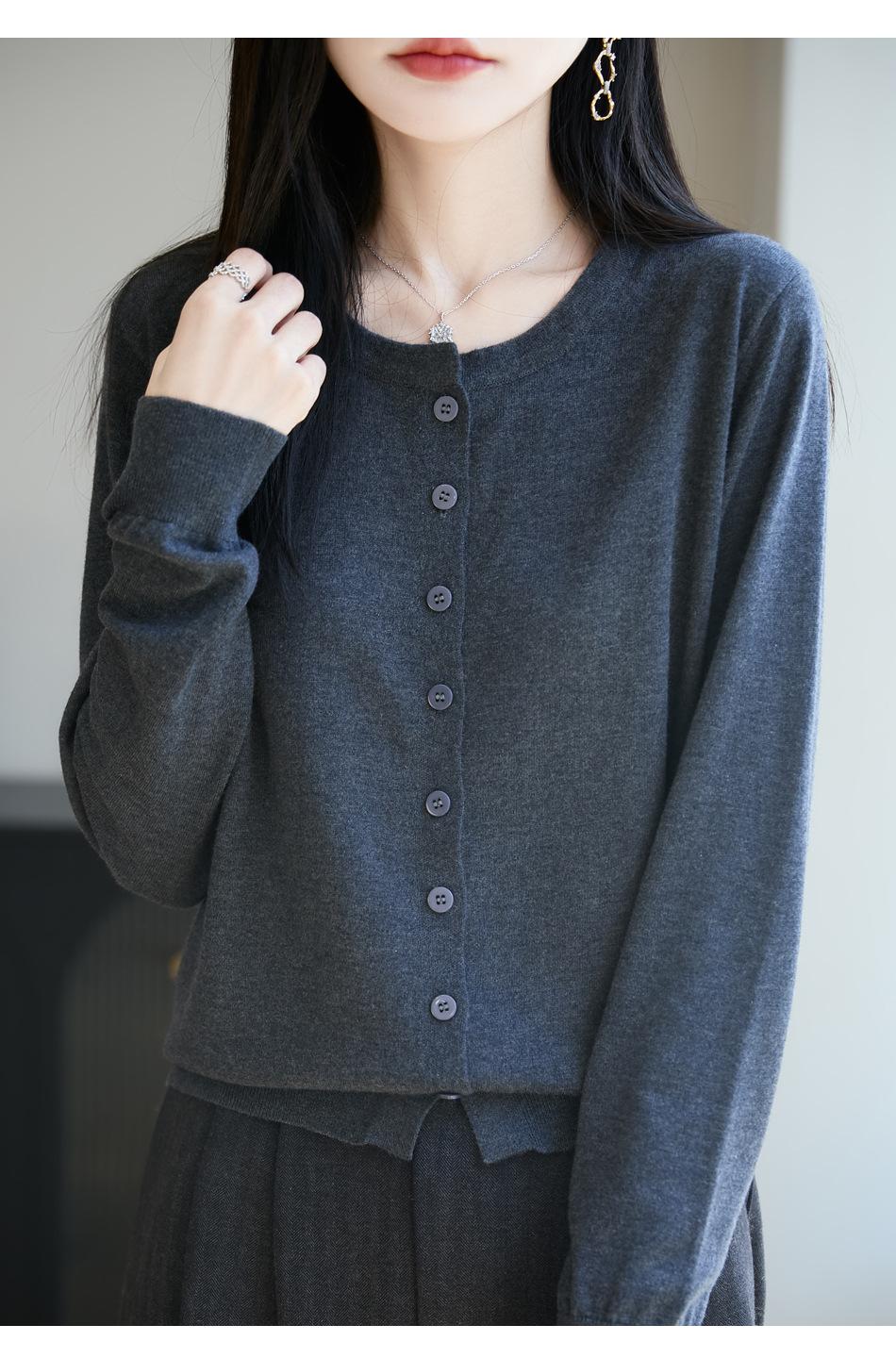 Cárdigan de punto de lana merino fina de punto de manga larga y cuello redondo de principios de otoño transfronterizo, abrigo para mujer delgado, suelto, casual, cómodo, adelgazante