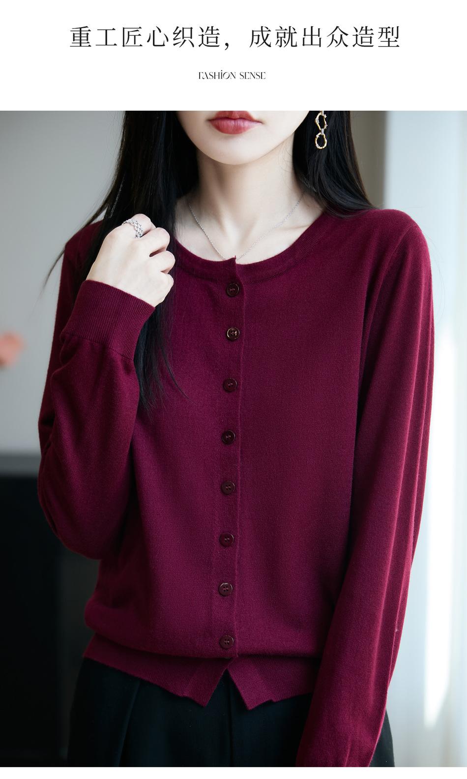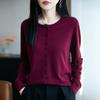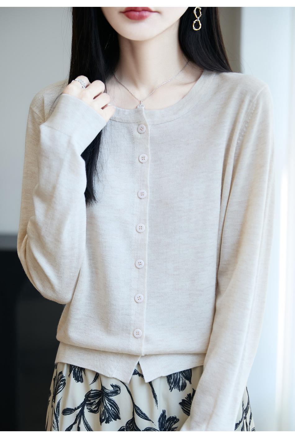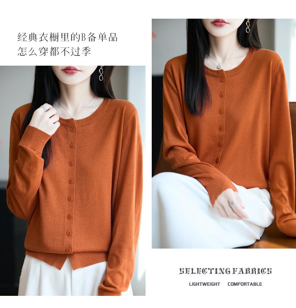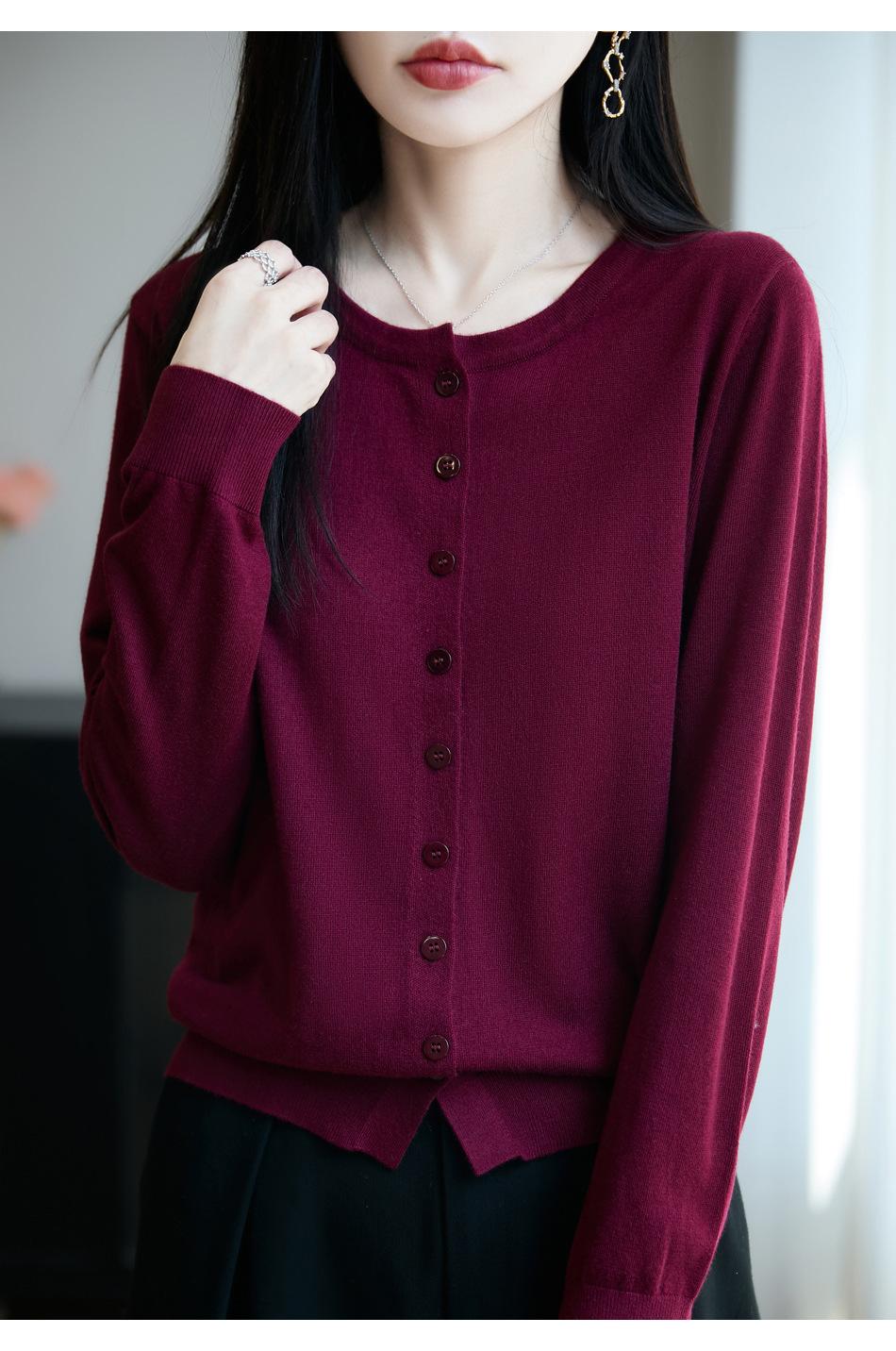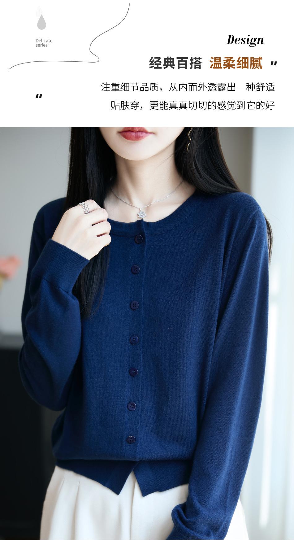 Cárdigan de punto de lana merino fina de punto de manga larga y cuello redondo de principios de otoño transfronterizo, abrigo para mujer delgado, suelto, casual, cómodo, adelgazante