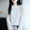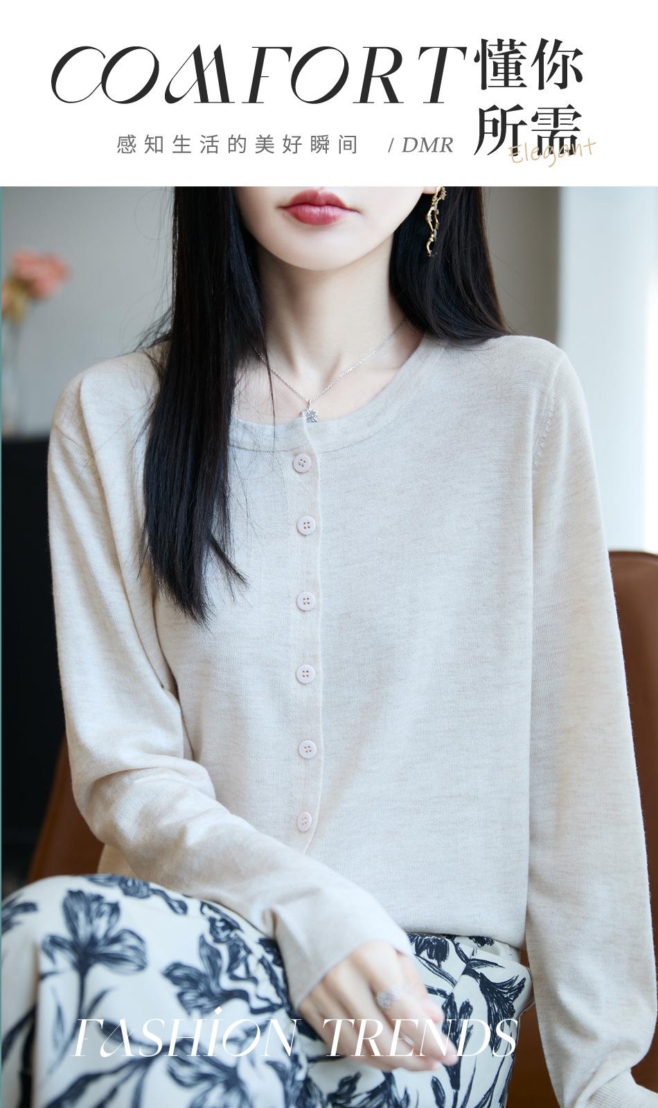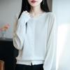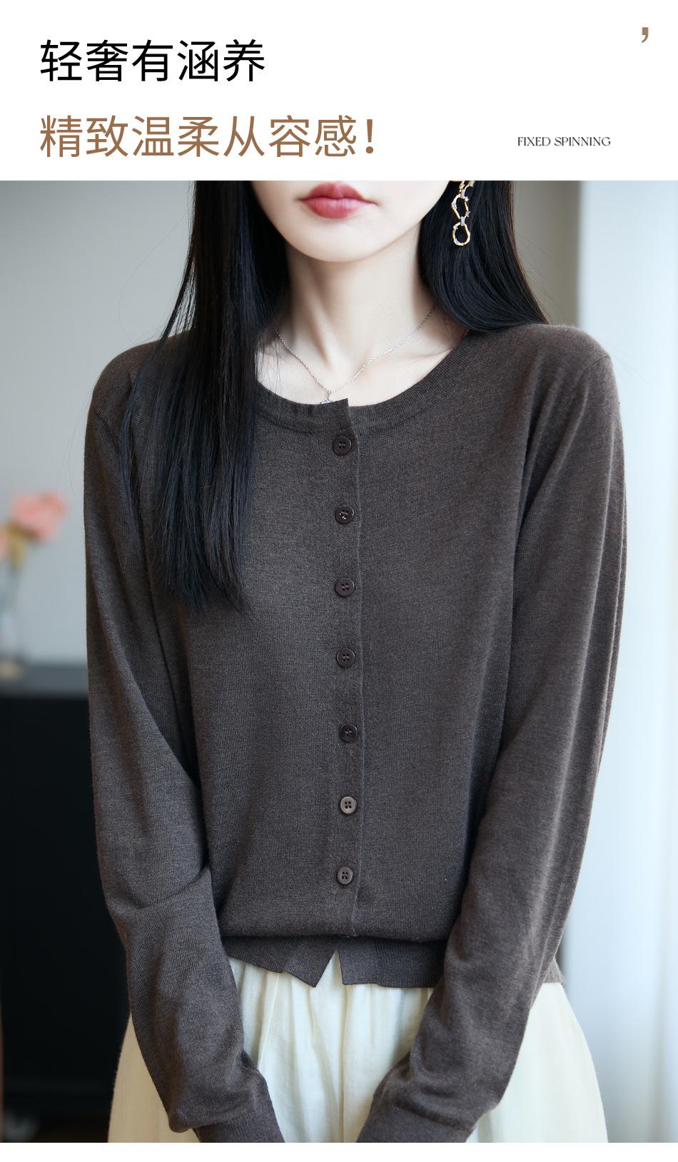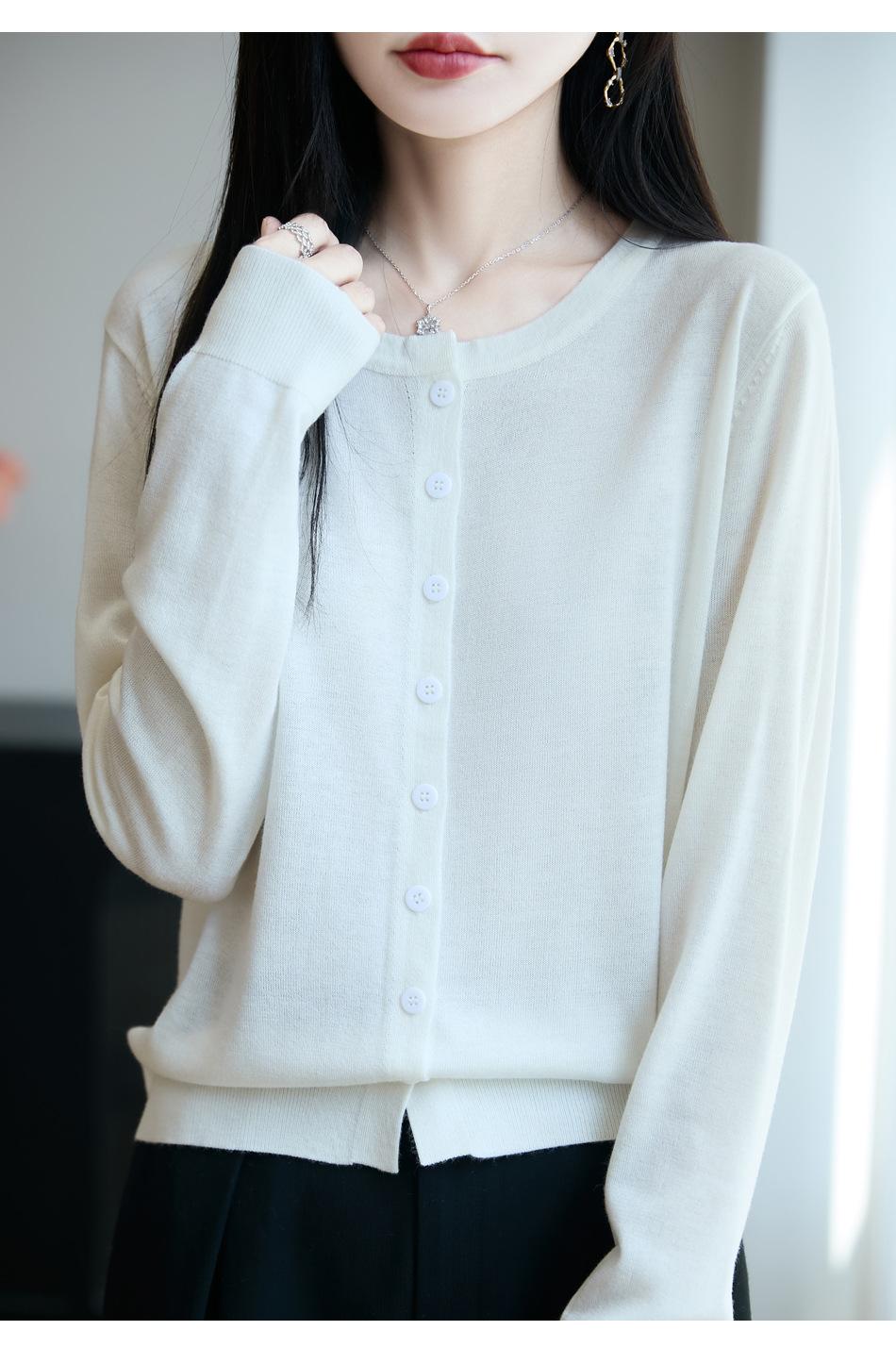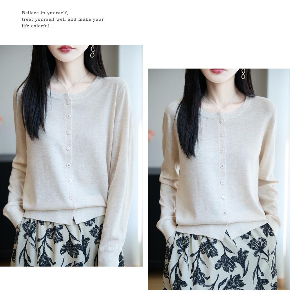 Cárdigan de punto de lana merino fina de punto de manga larga y cuello redondo de principios de otoño transfronterizo, abrigo para mujer delgado, suelto, casual, cómodo, adelgazante