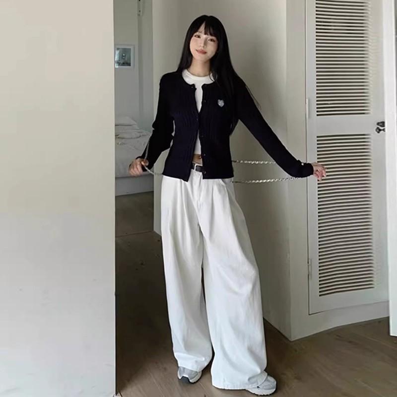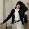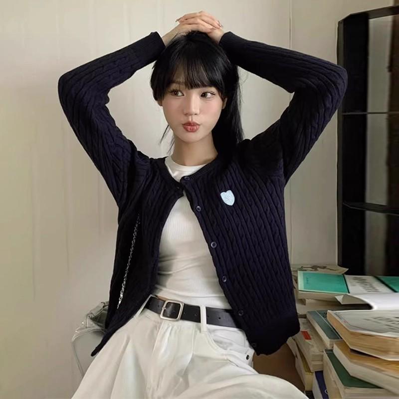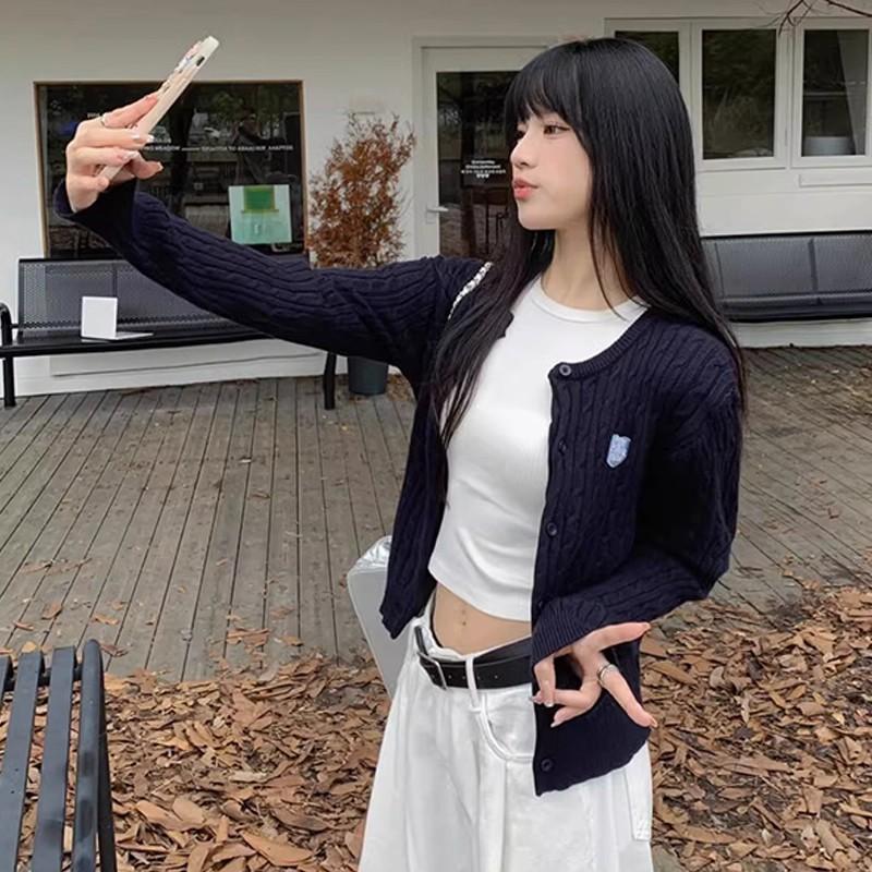 Cárdigan de Punto Estilo Holgazán Abrigo Suéter para Mujer Principios de Otoño 2025 Nueva Ropa Exterior Ajustada Manga Larga Top Bordado