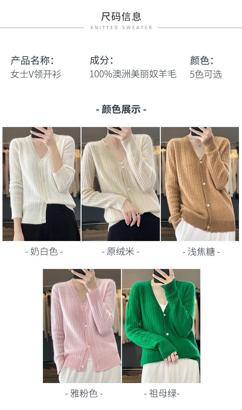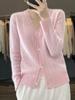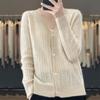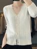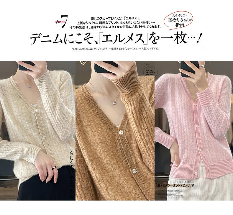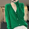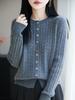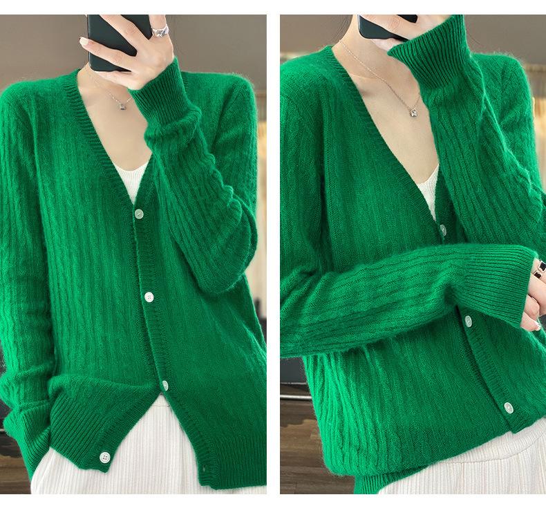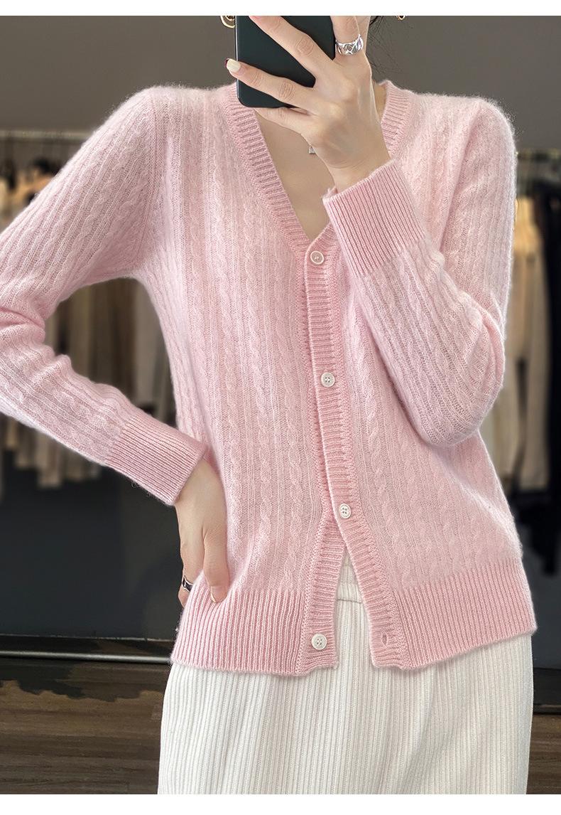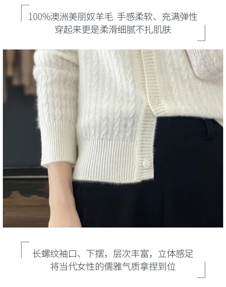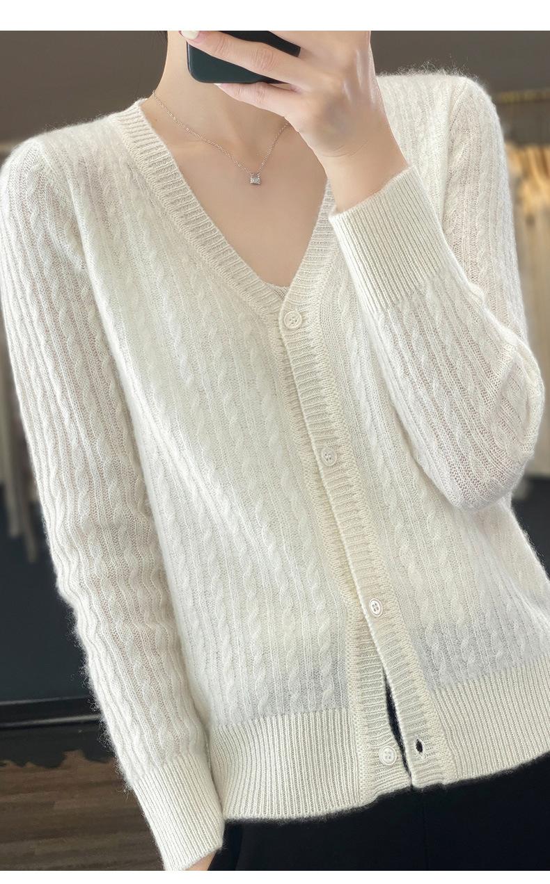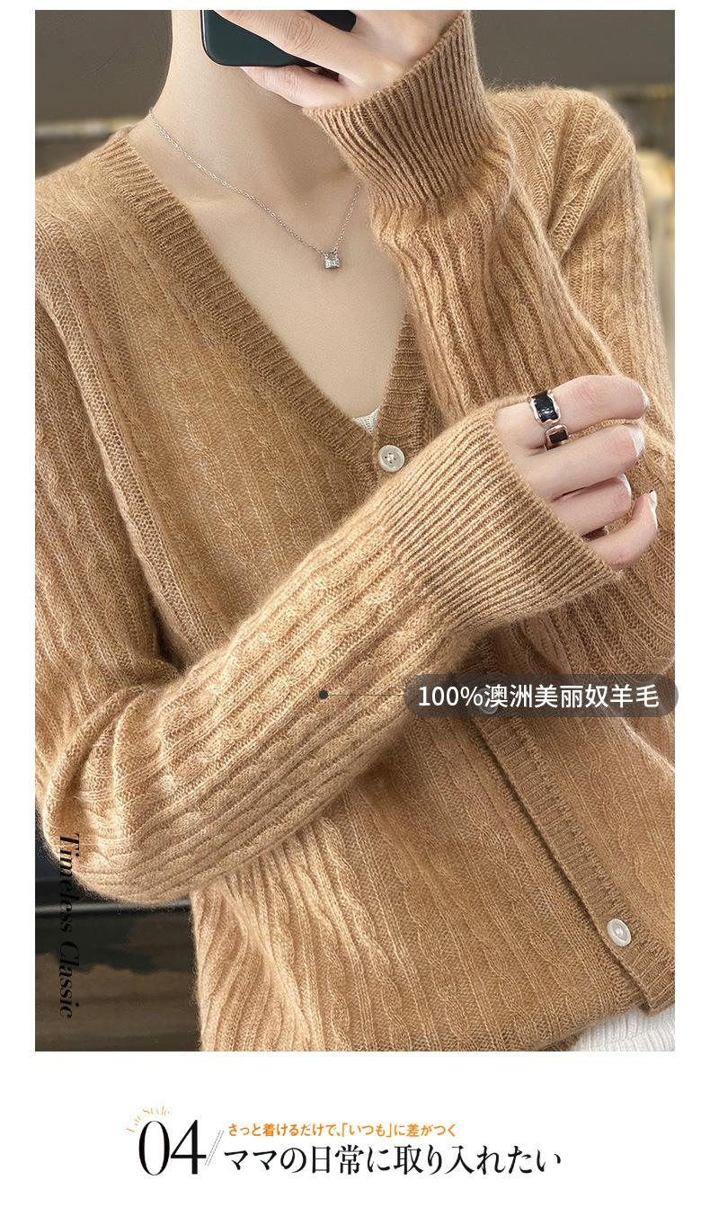 Cárdigan de Punto Trenzado de Lana Pura con Cuello en V para Mujer, Color Sólido, Manga Larga Suelta Versátil con Botones, Ropa Exterior Nueva Otoño/Invierno 2025