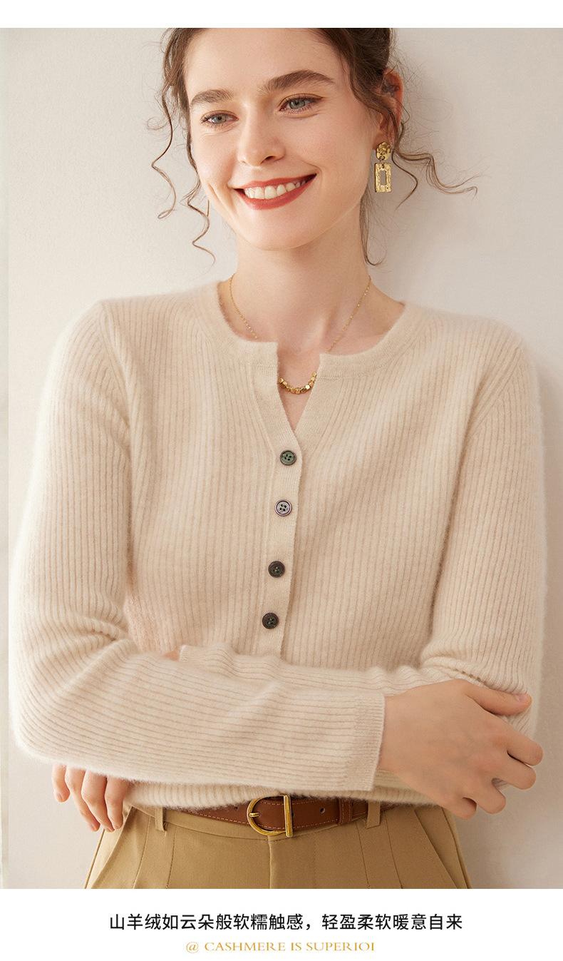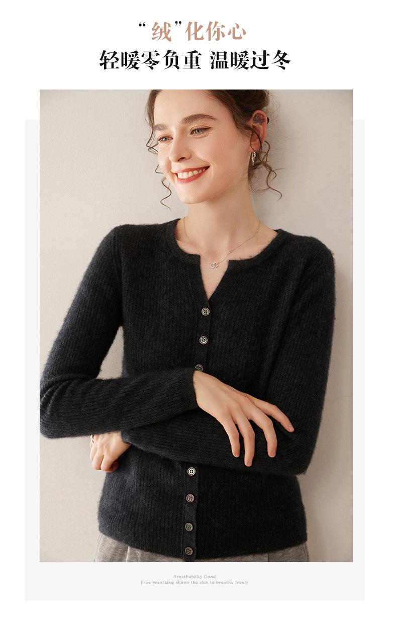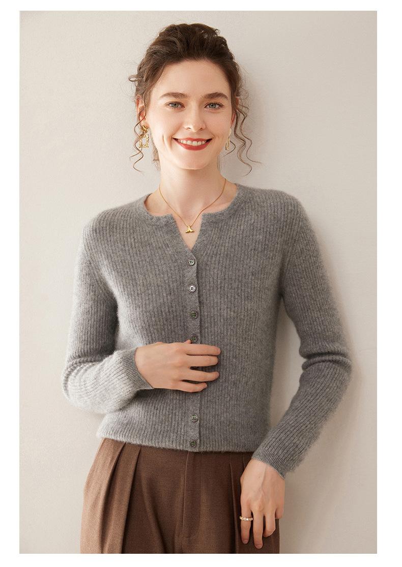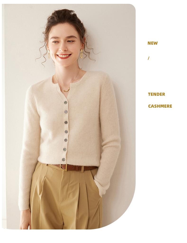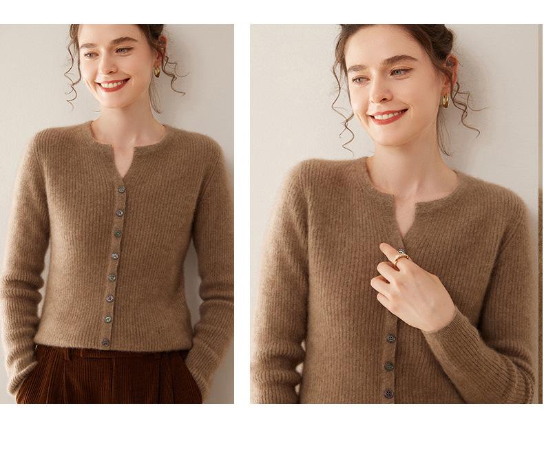 Nuevo Suéter de Cachemira de Cuello Redondo Otoño/Invierno para Mujer, Suéter Cárdigan de Punto de Pecho Sencillo con Cuello Medio Abierto, Top Versátil Casual