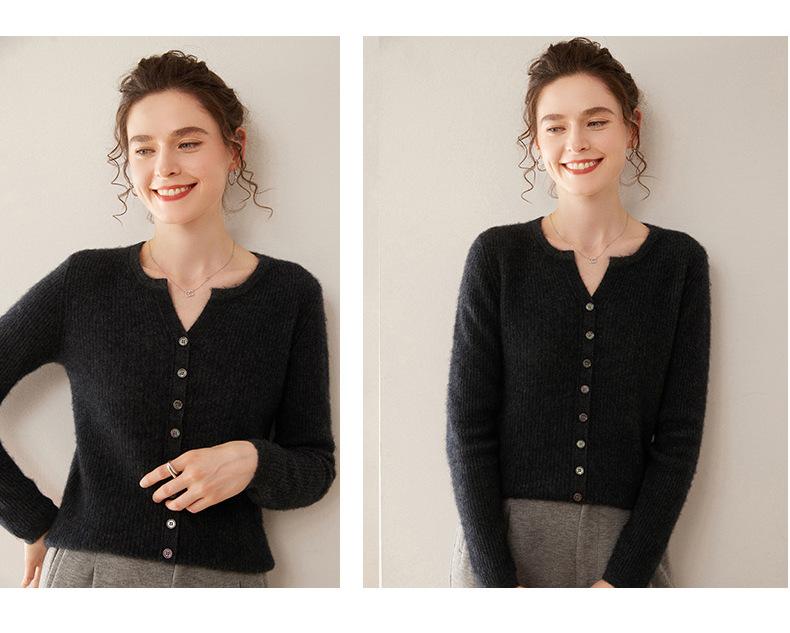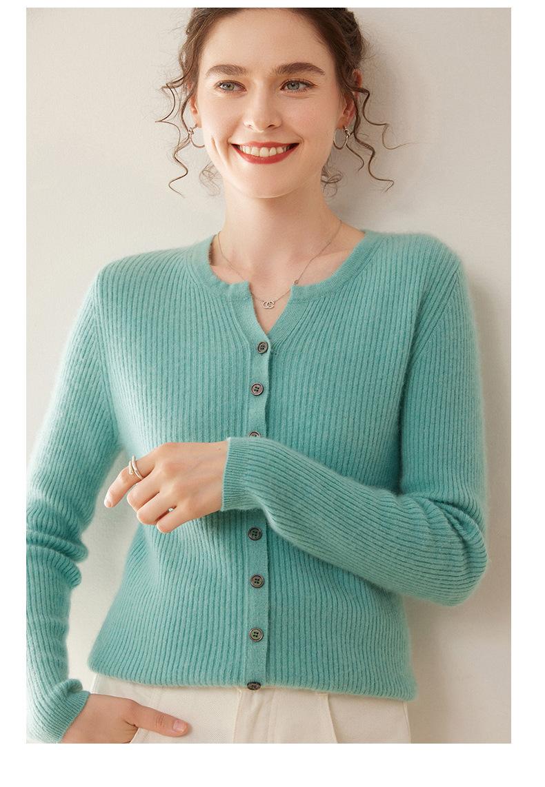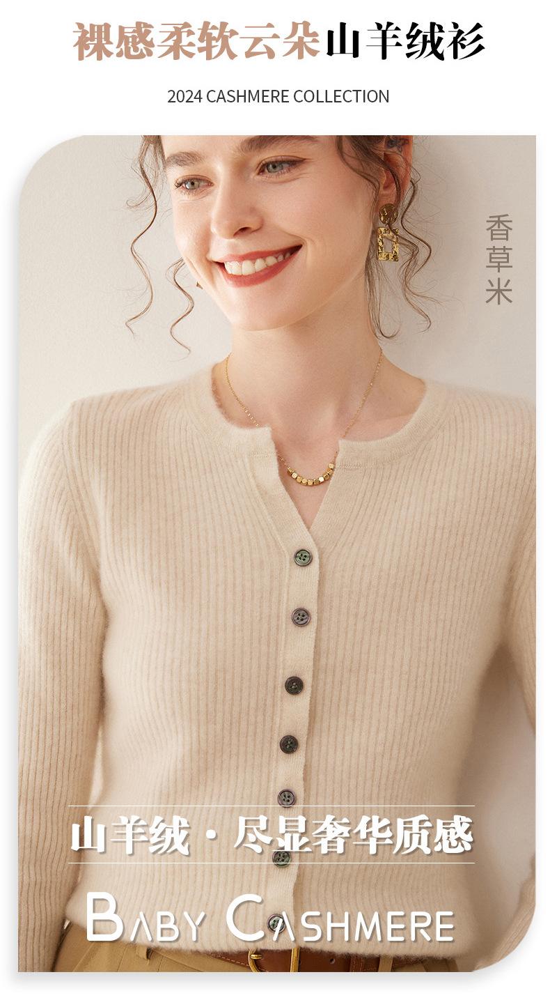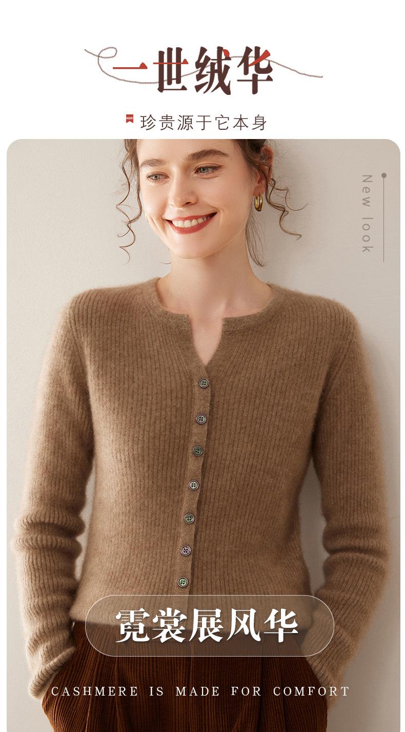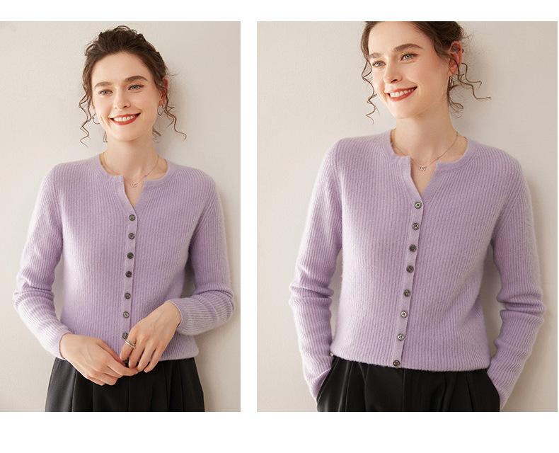 Nuevo Suéter de Cachemira de Cuello Redondo Otoño/Invierno para Mujer, Suéter Cárdigan de Punto de Pecho Sencillo con Cuello Medio Abierto, Top Versátil Casual