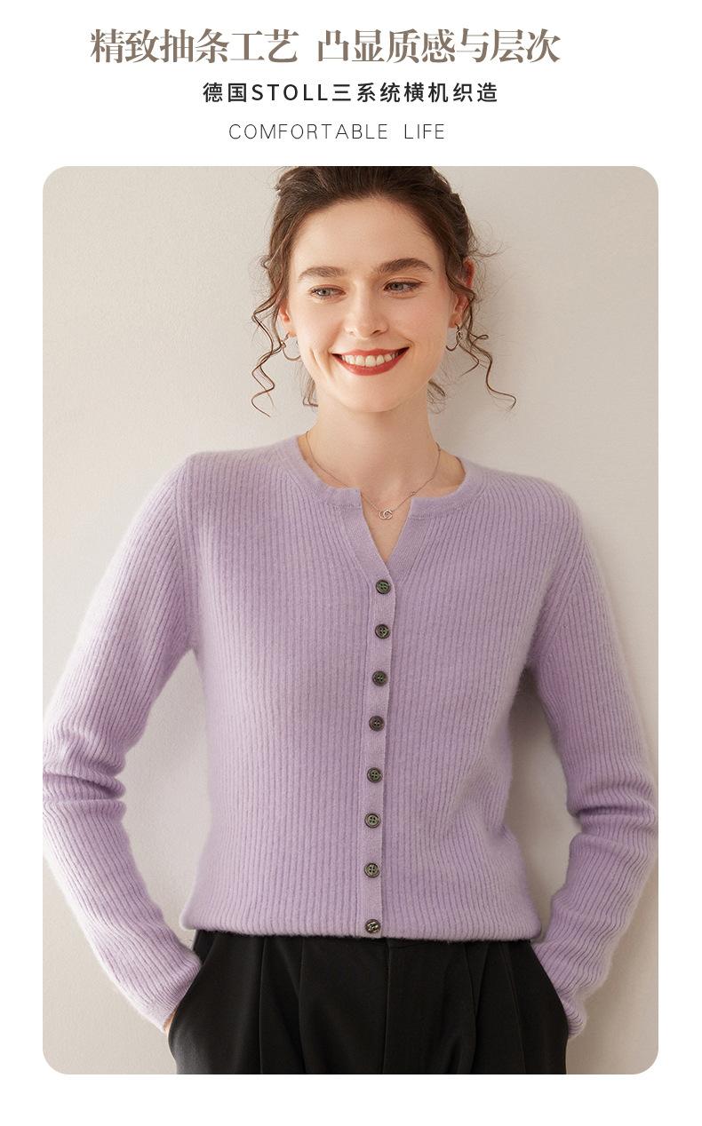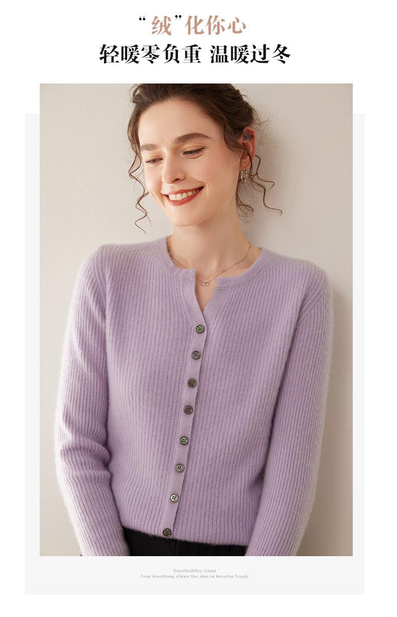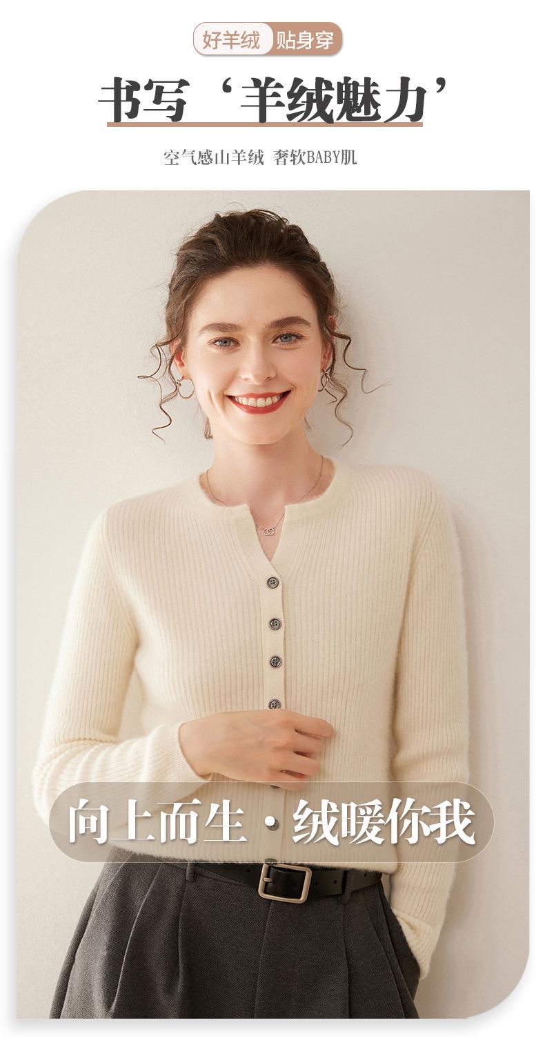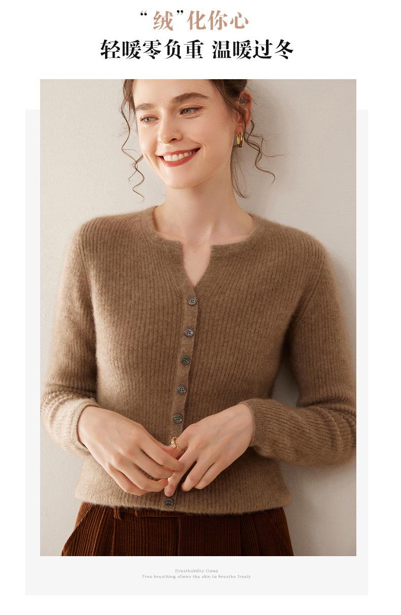Nuevo Suéter de Cachemira de Cuello Redondo Otoño/Invierno para Mujer, Suéter Cárdigan de Punto de Pecho Sencillo con Cuello Medio Abierto, Top Versátil Casual
