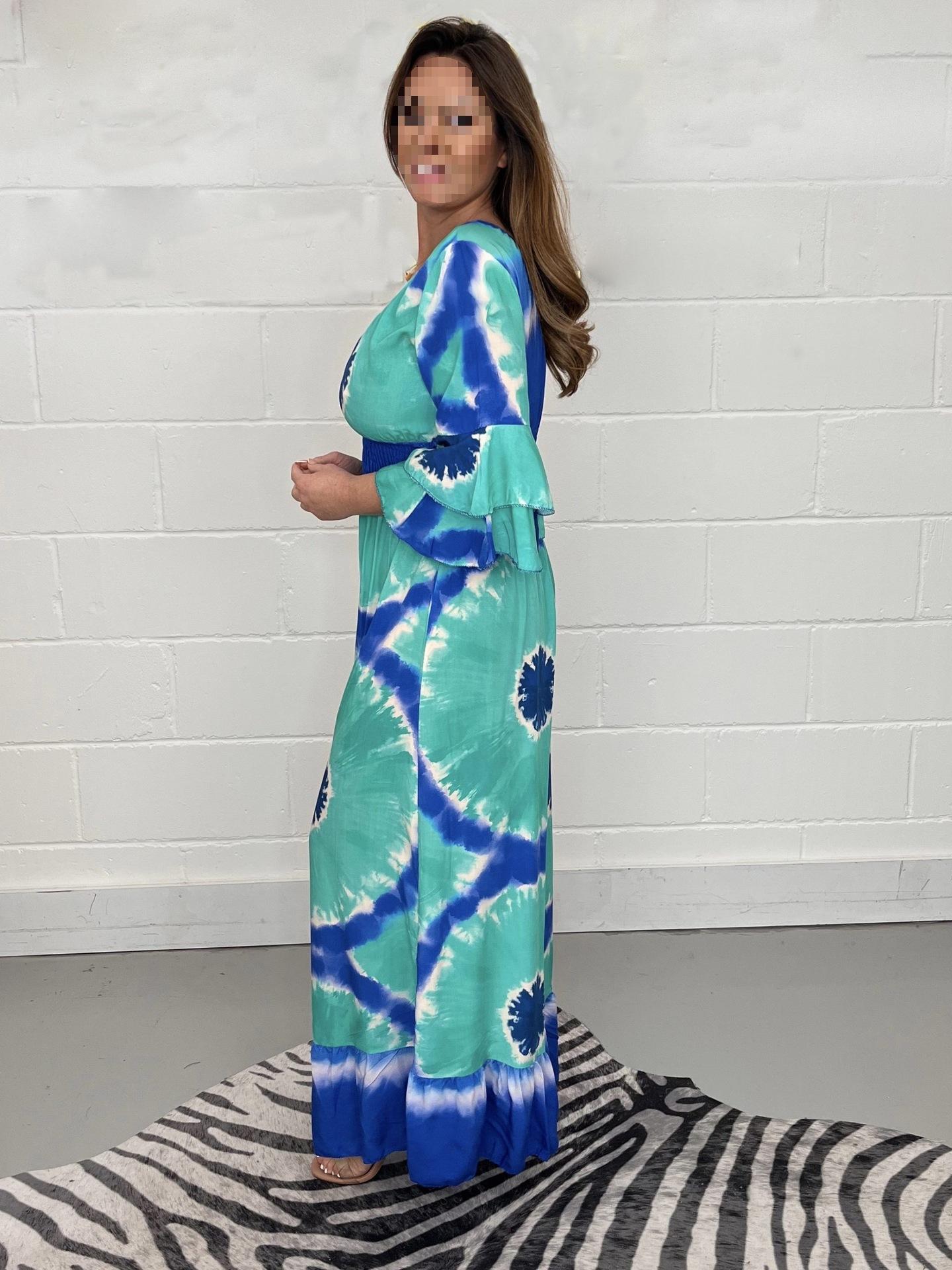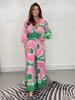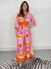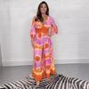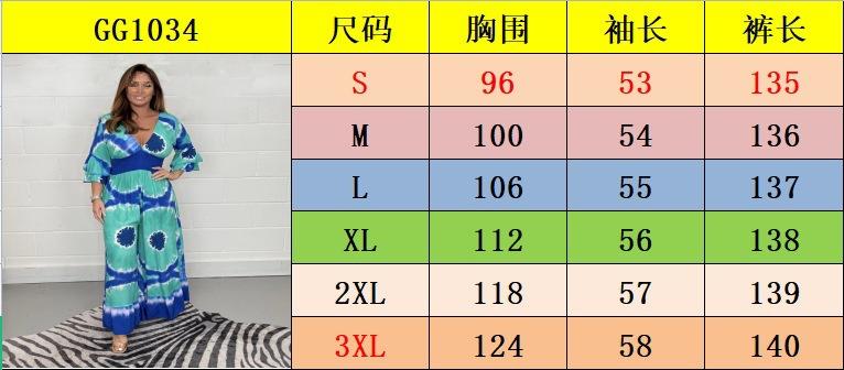 Moda Europea y Americana para Mujer 2024 Transfronteriza Primavera/Verano Nuevo Estilo Talla Grande Estampado Tie-Dye Manga Campana Pierna Ancha Mono