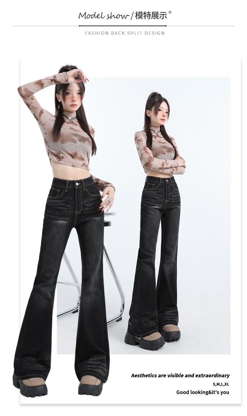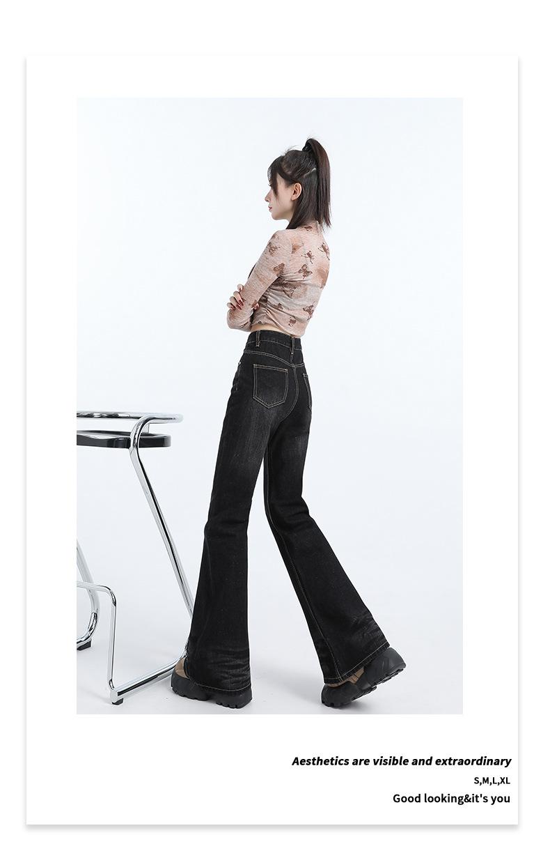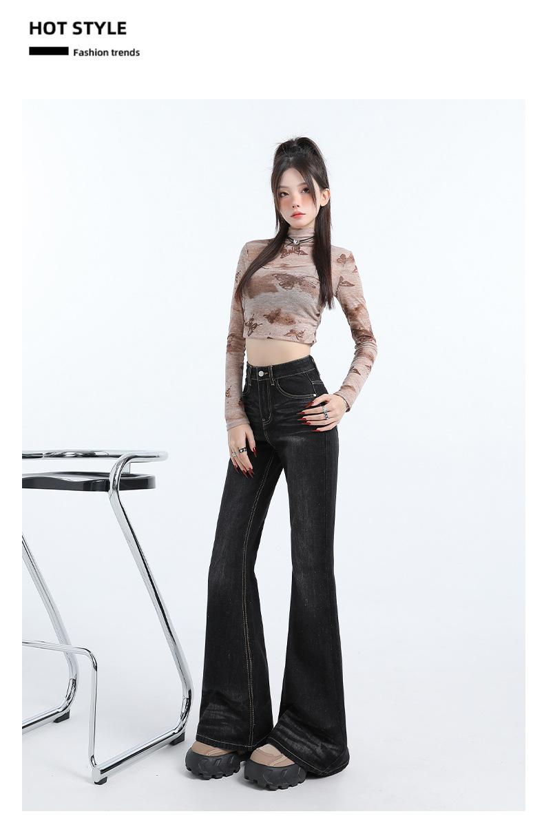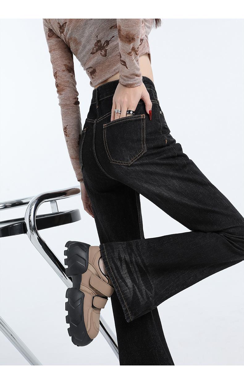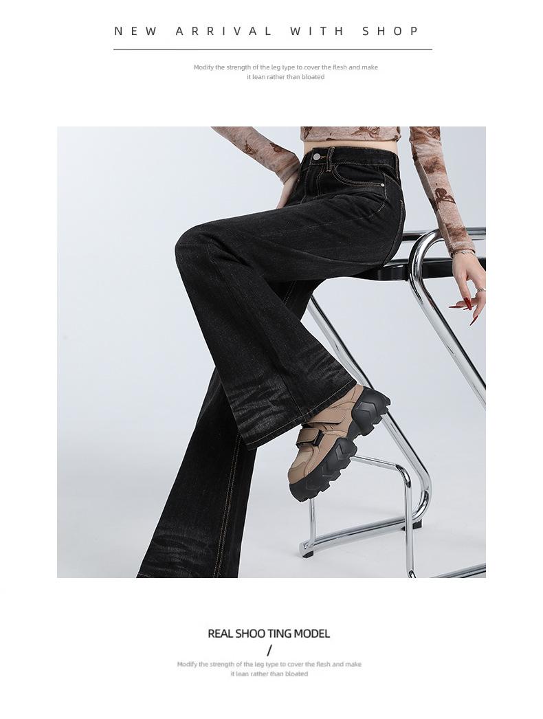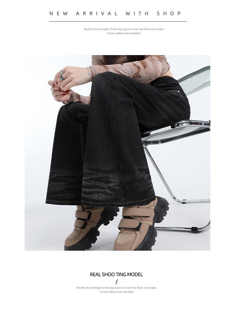 Nuevo Estilo Americano Retro de Alta Gama Jeans Negro Gris Moda Femenina Spice Girls Ajustado Adelgazante Moderno Pantalón Acampanado