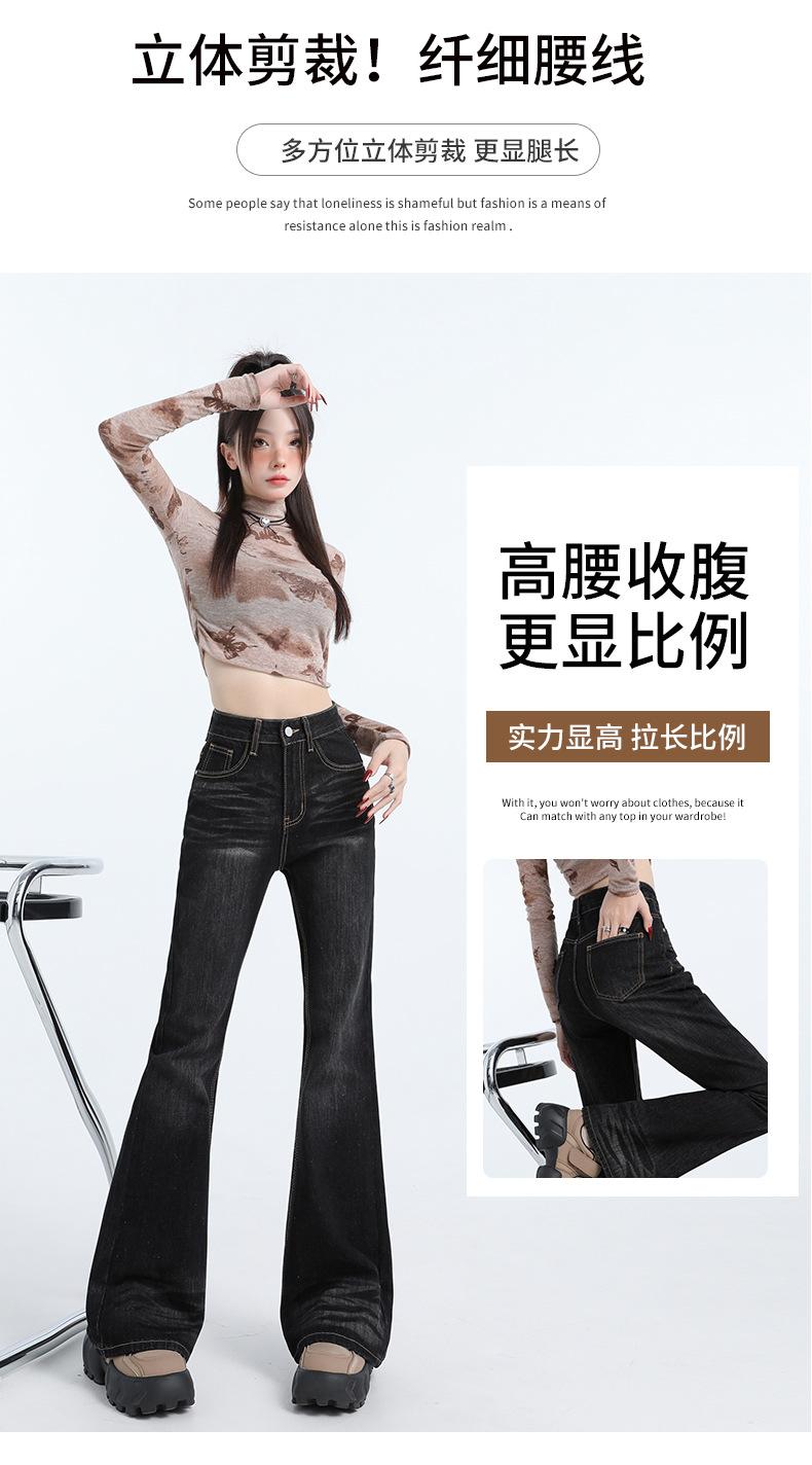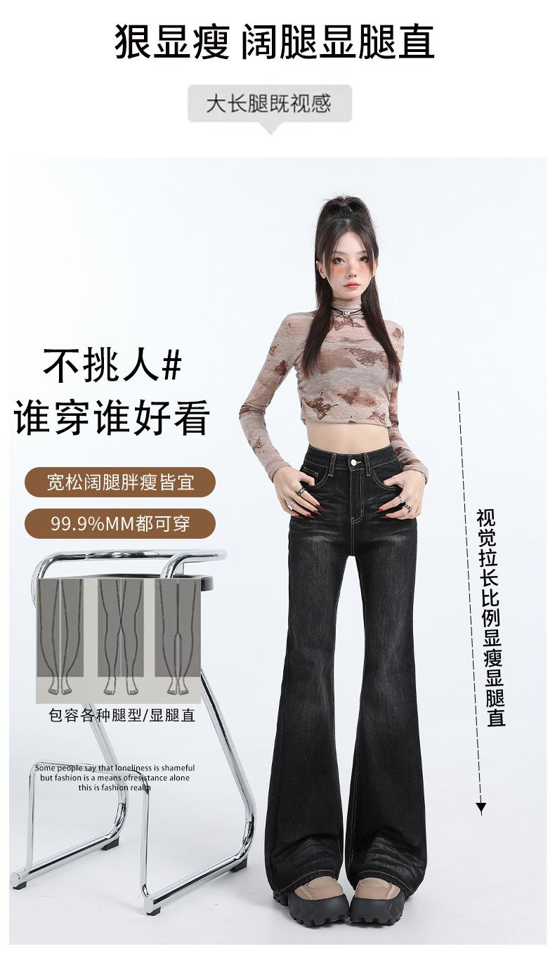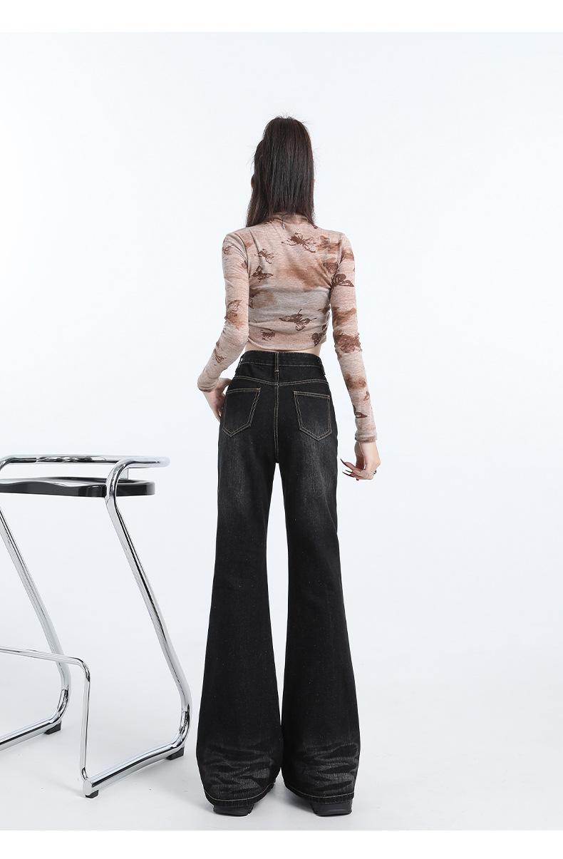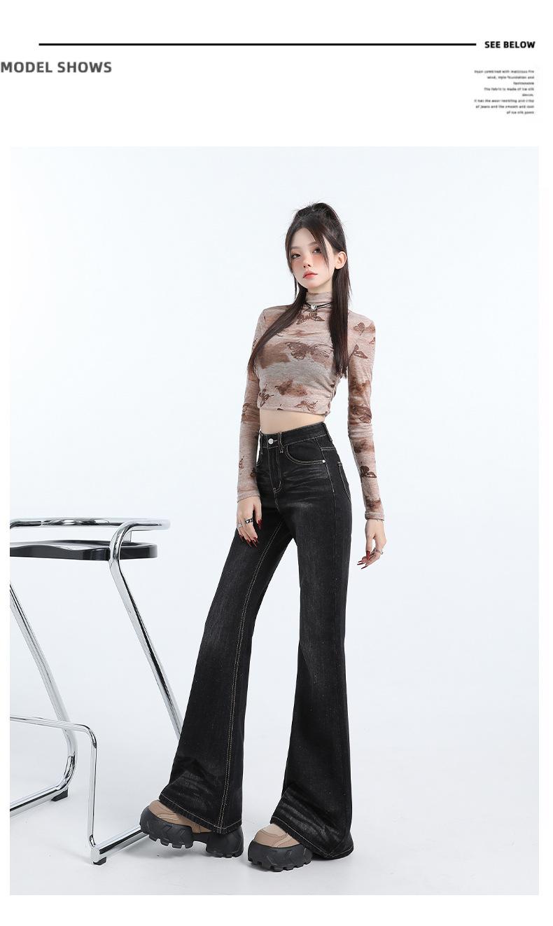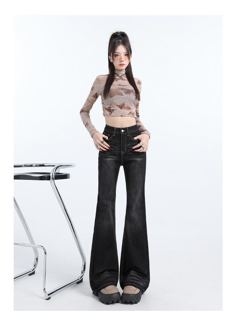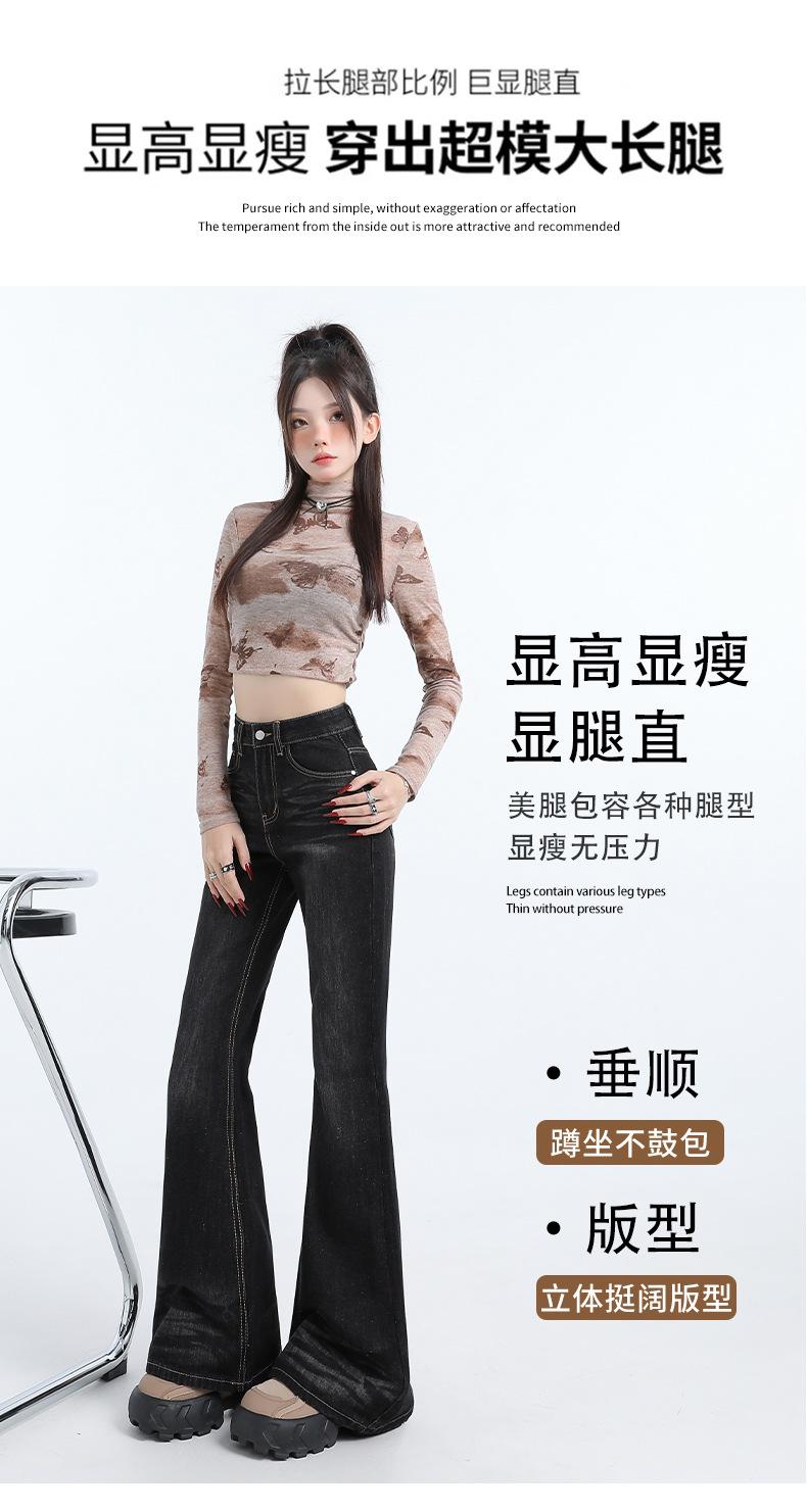 Nuevo Estilo Americano Retro de Alta Gama Jeans Negro Gris Moda Femenina Spice Girls Ajustado Adelgazante Moderno Pantalón Acampanado