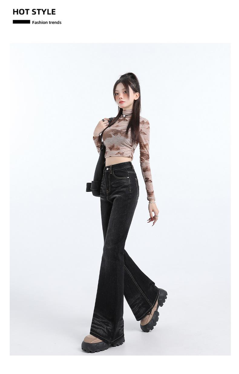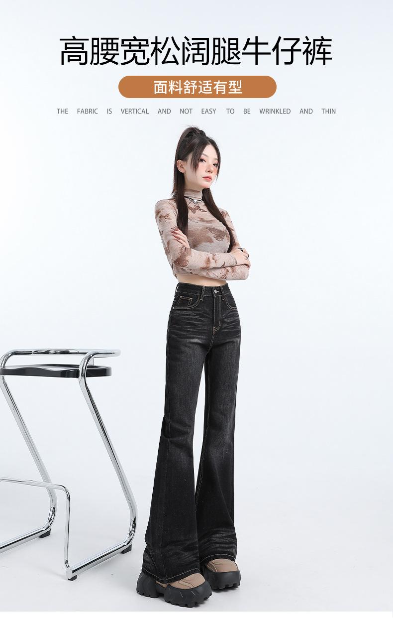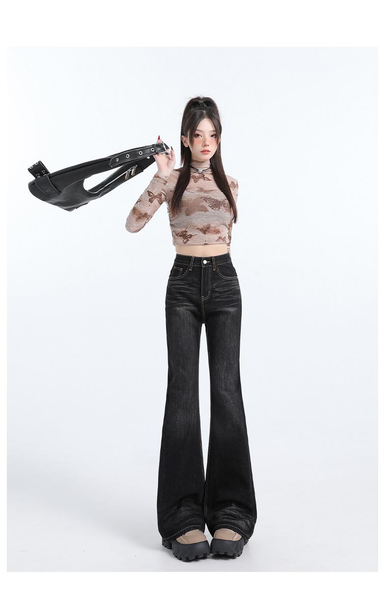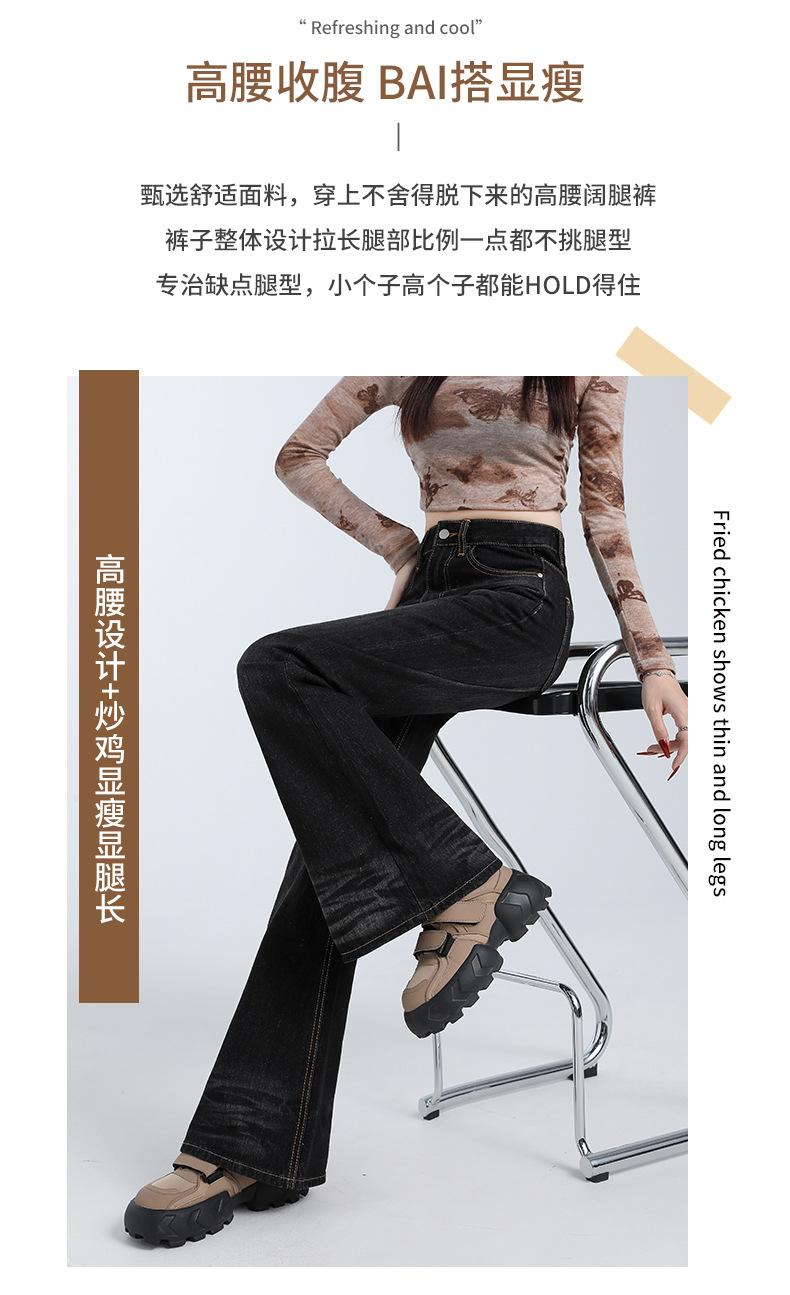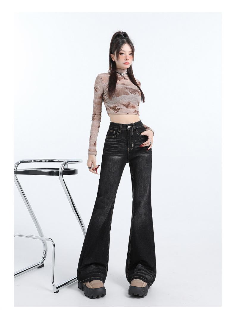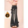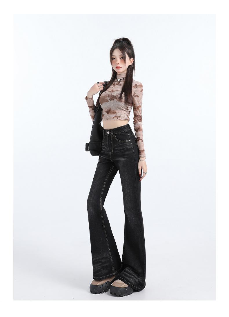 Nuevo Estilo Americano Retro de Alta Gama Jeans Negro Gris Moda Femenina Spice Girls Ajustado Adelgazante Moderno Pantalón Acampanado