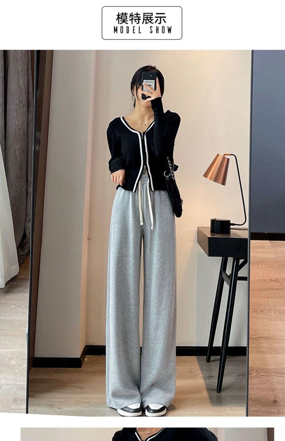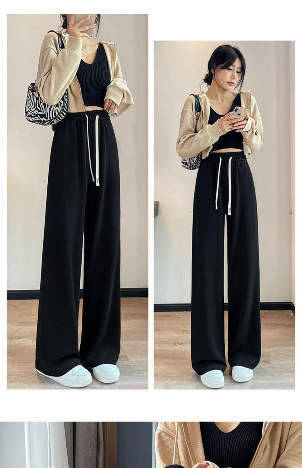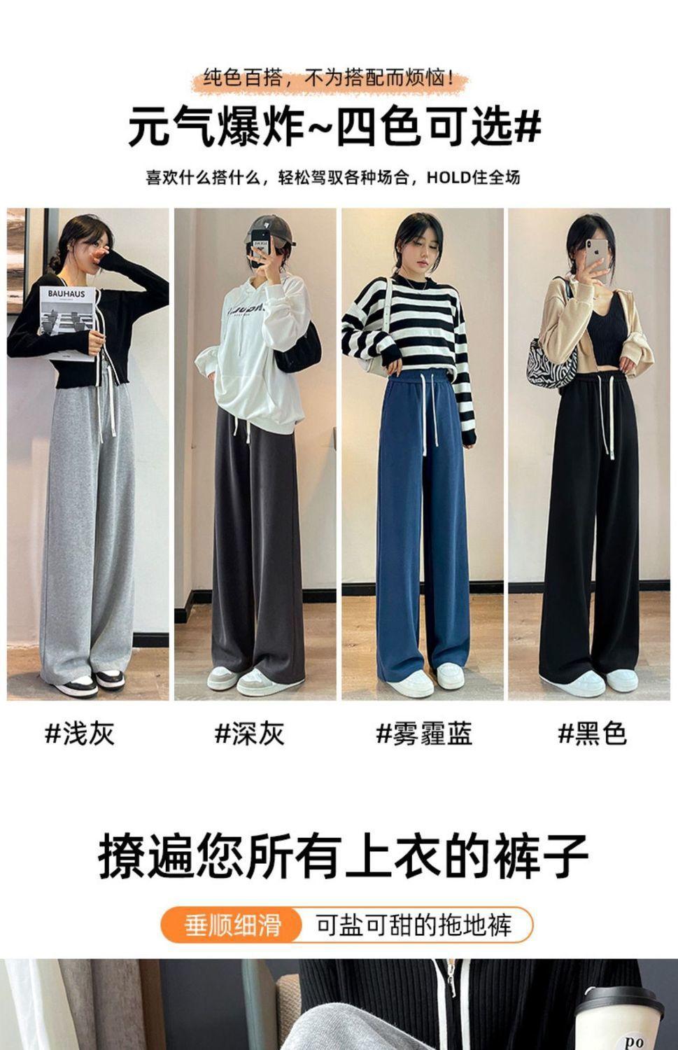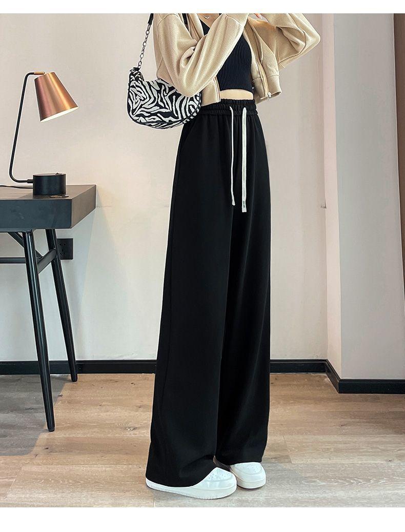 Pantalones Drapey de Cintura Alta y Pierna Ancha para Mujer Primavera y Otoño 2025 Estilo Delgado Pantalones Extra Largos hasta el Piso Versátiles Sueltos Adelgazantes Pierna Recta Pantalones Deportivos