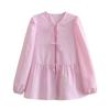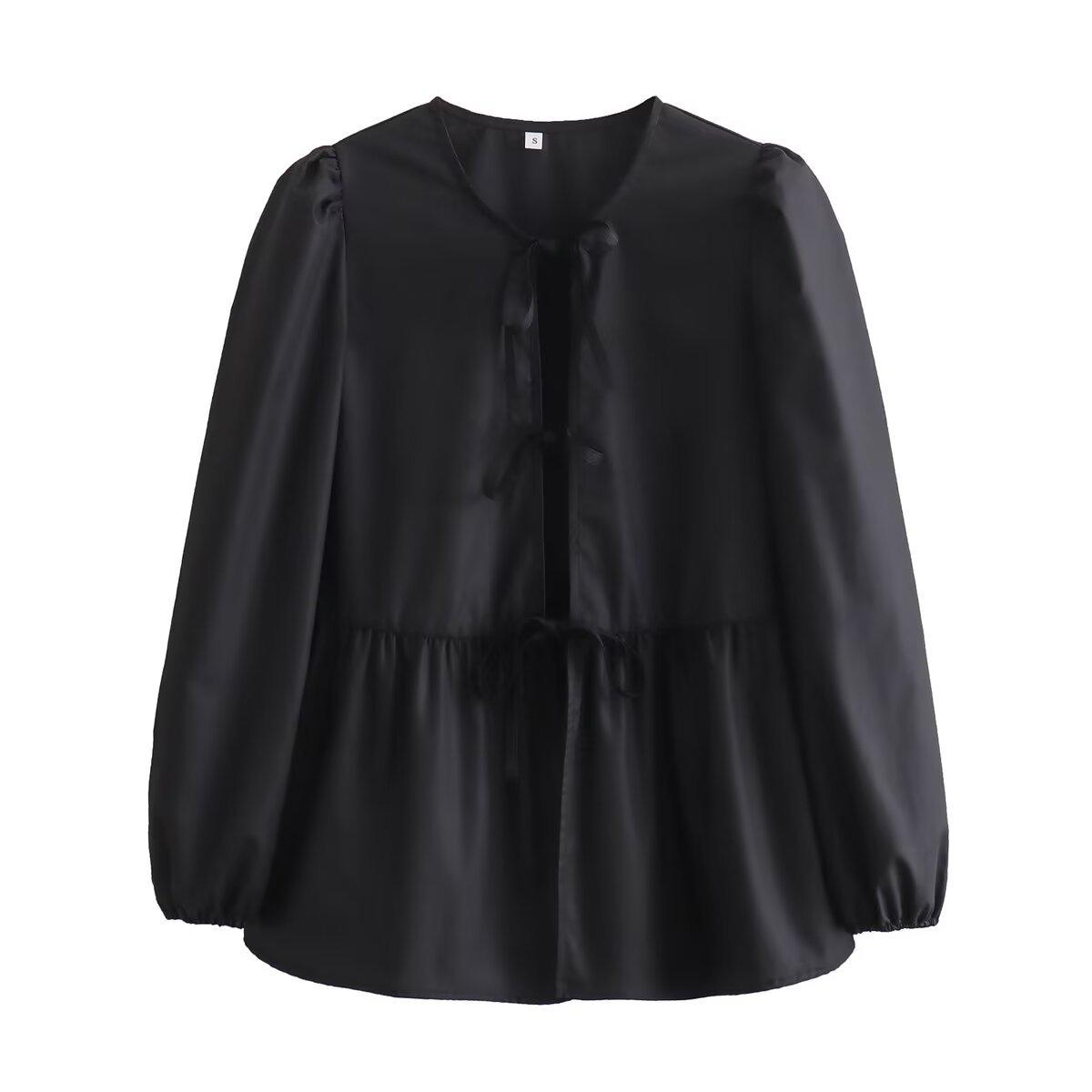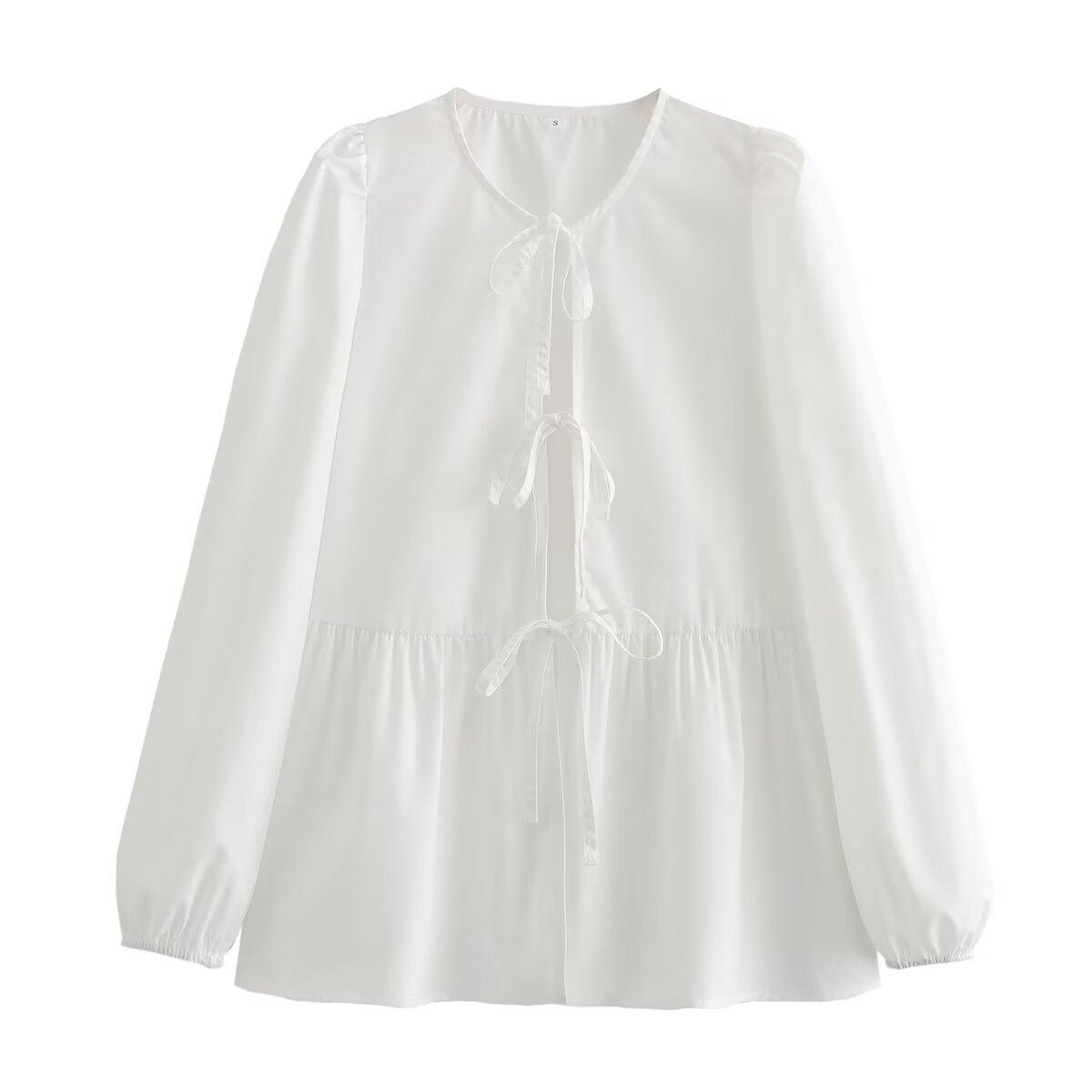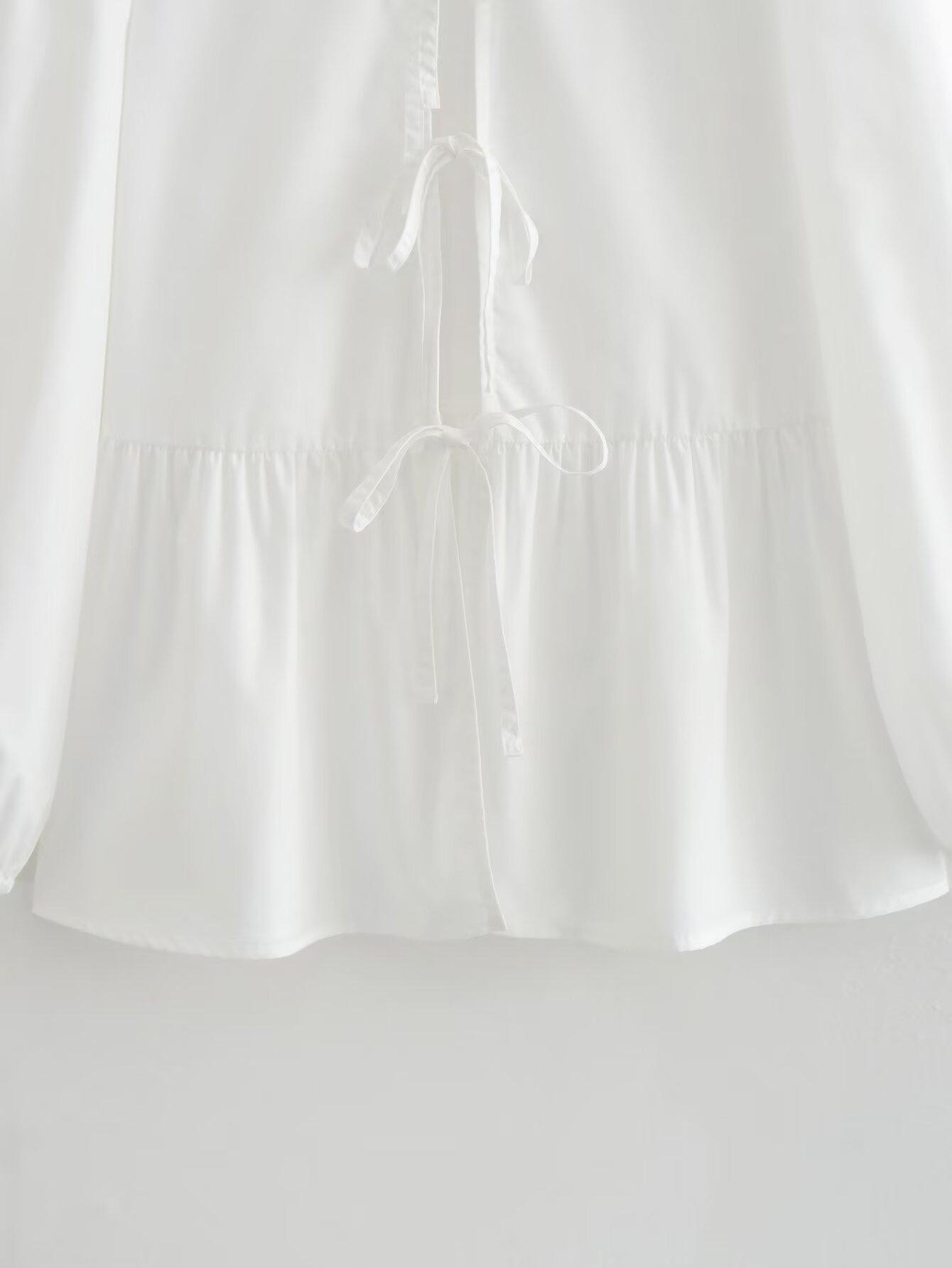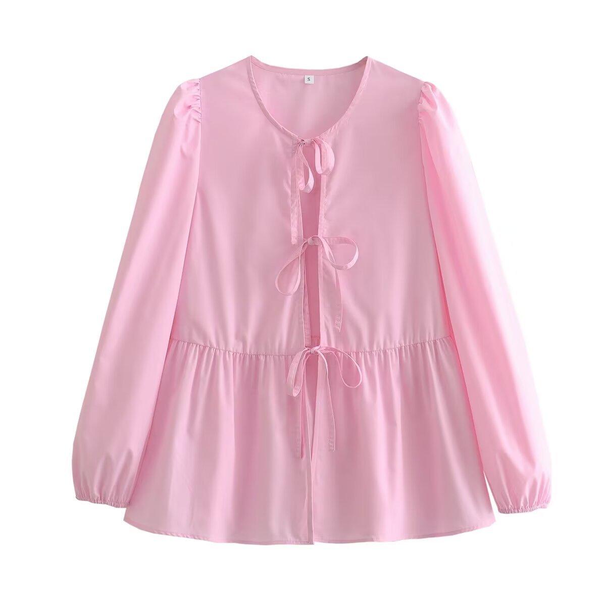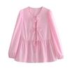 Nuevo 2024 transfronterizo nuevo estilo europeo y americano para mujer comercio exterior al por mayor ZRA7 color manga burbuja lazo encaje camisa