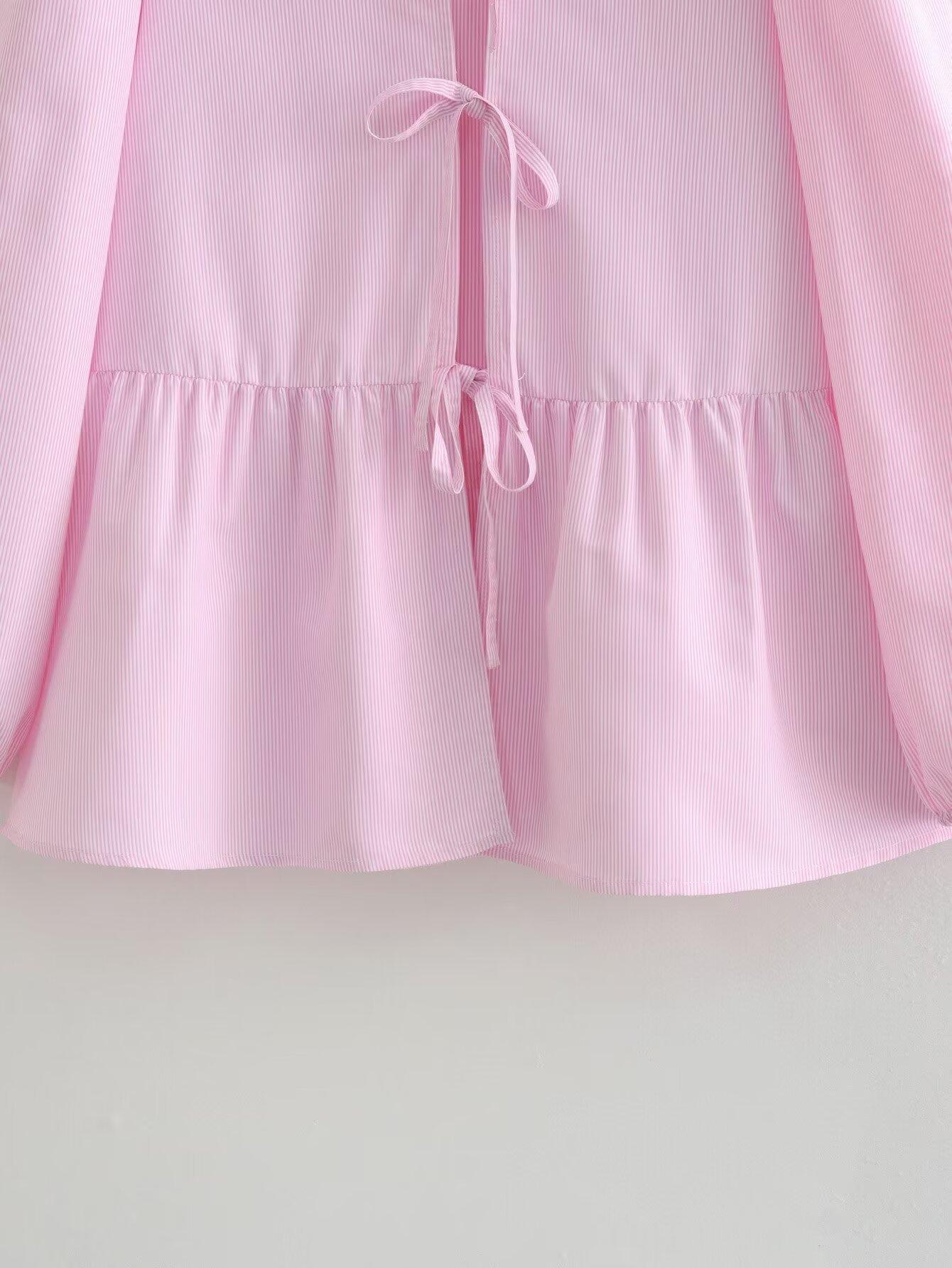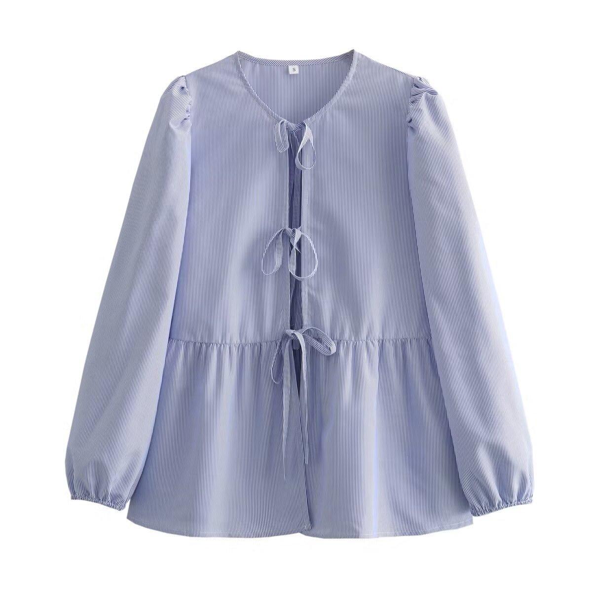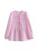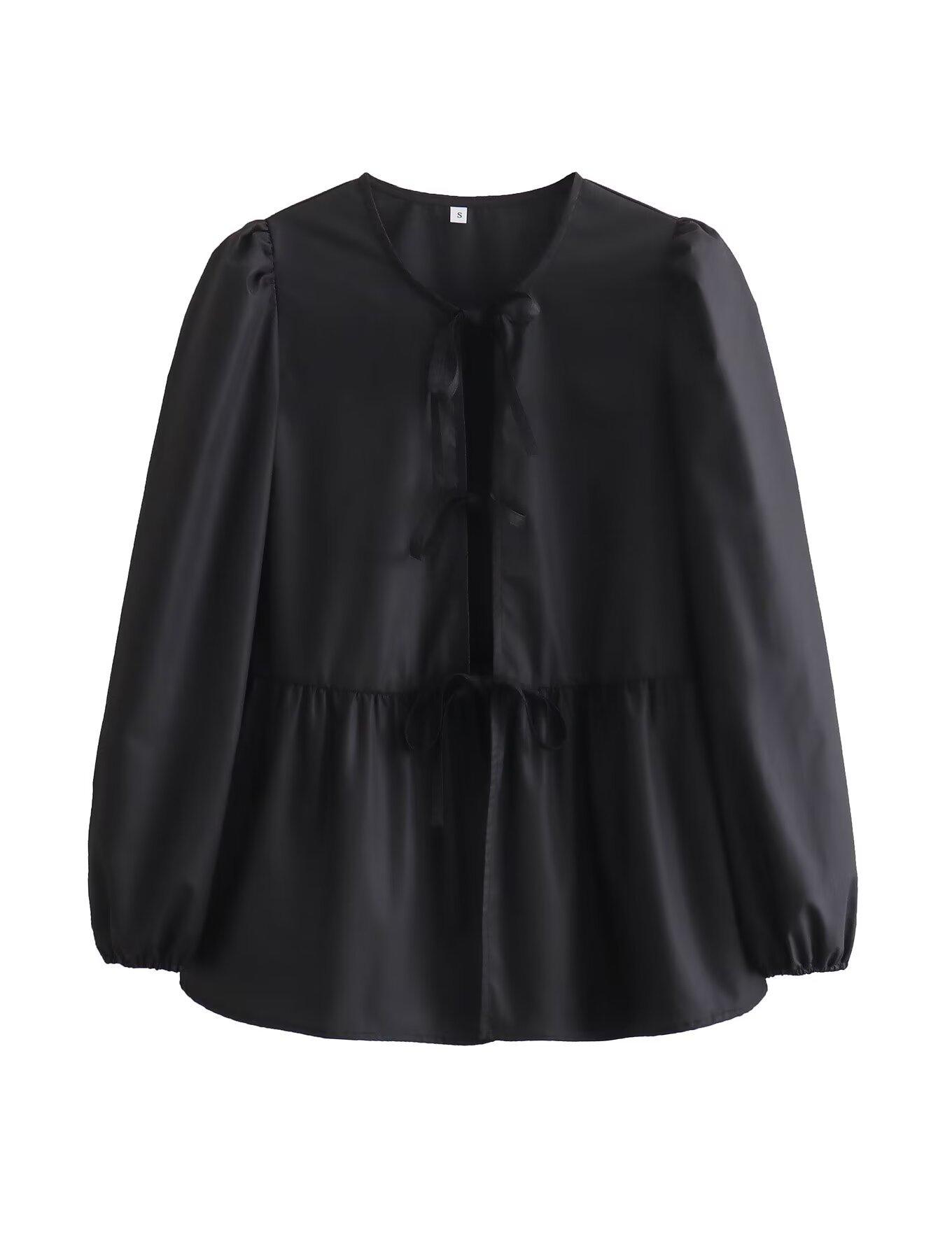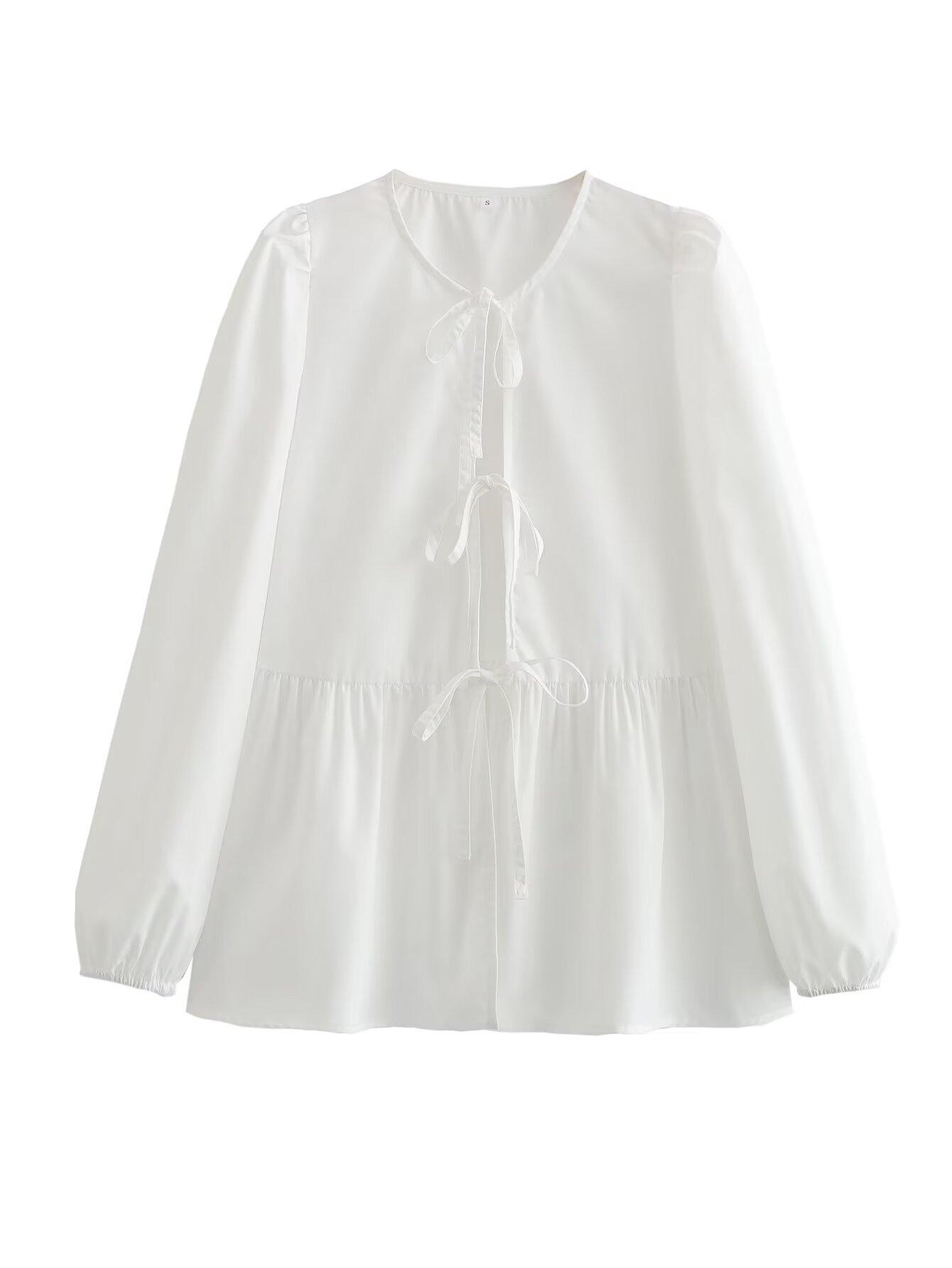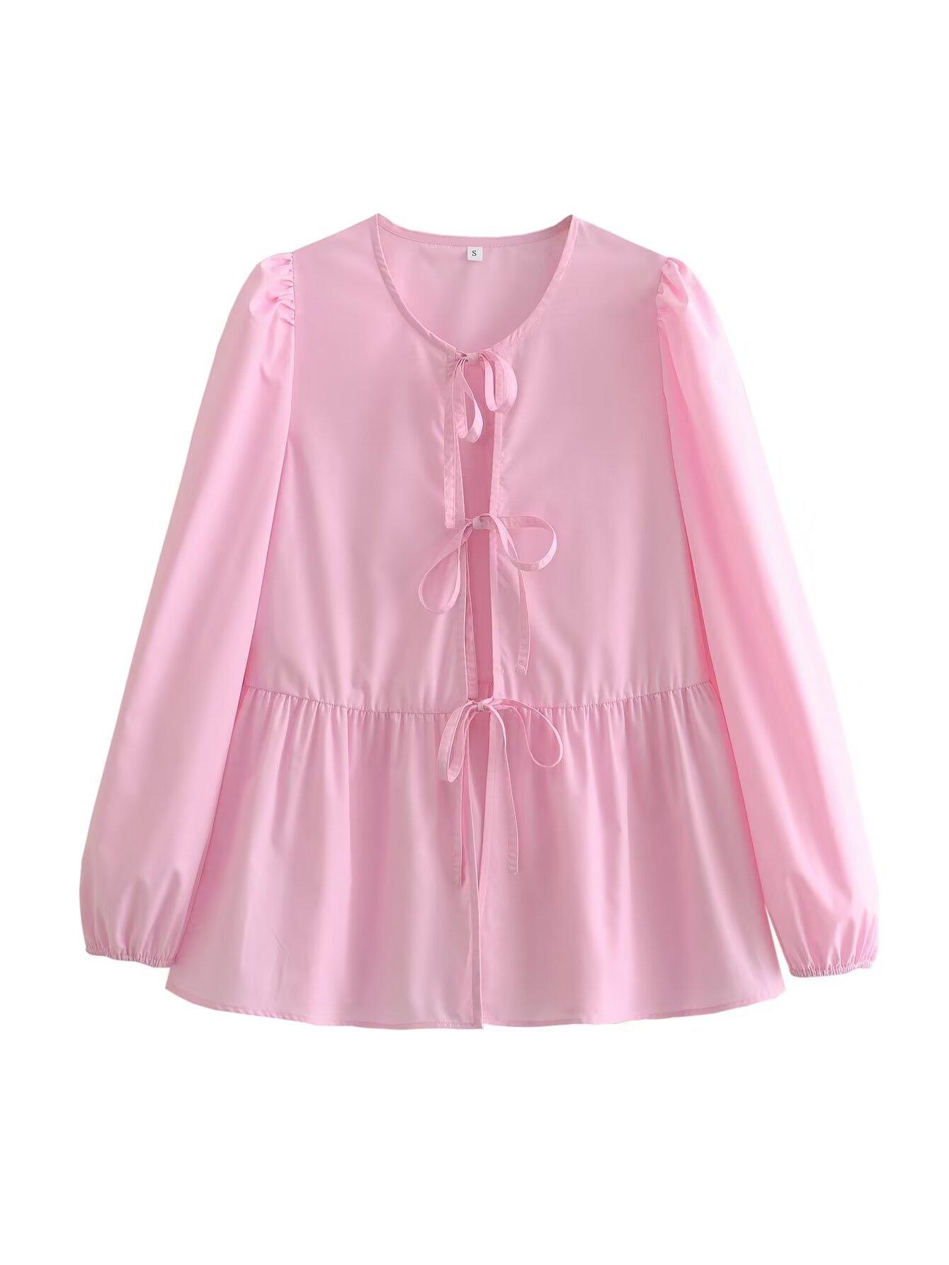 Nuevo 2024 transfronterizo nuevo estilo europeo y americano para mujer comercio exterior al por mayor ZRA7 color manga burbuja lazo encaje camisa