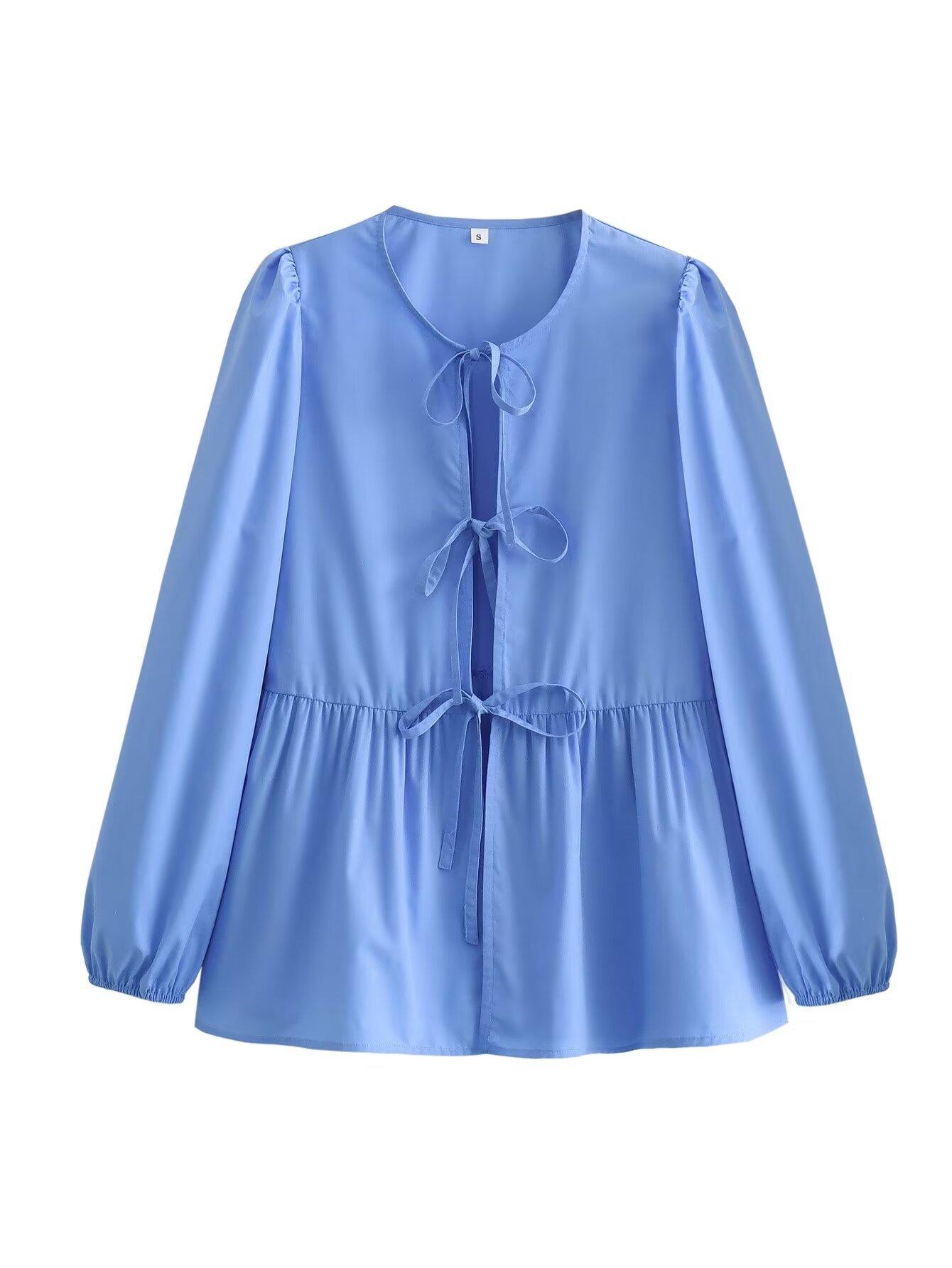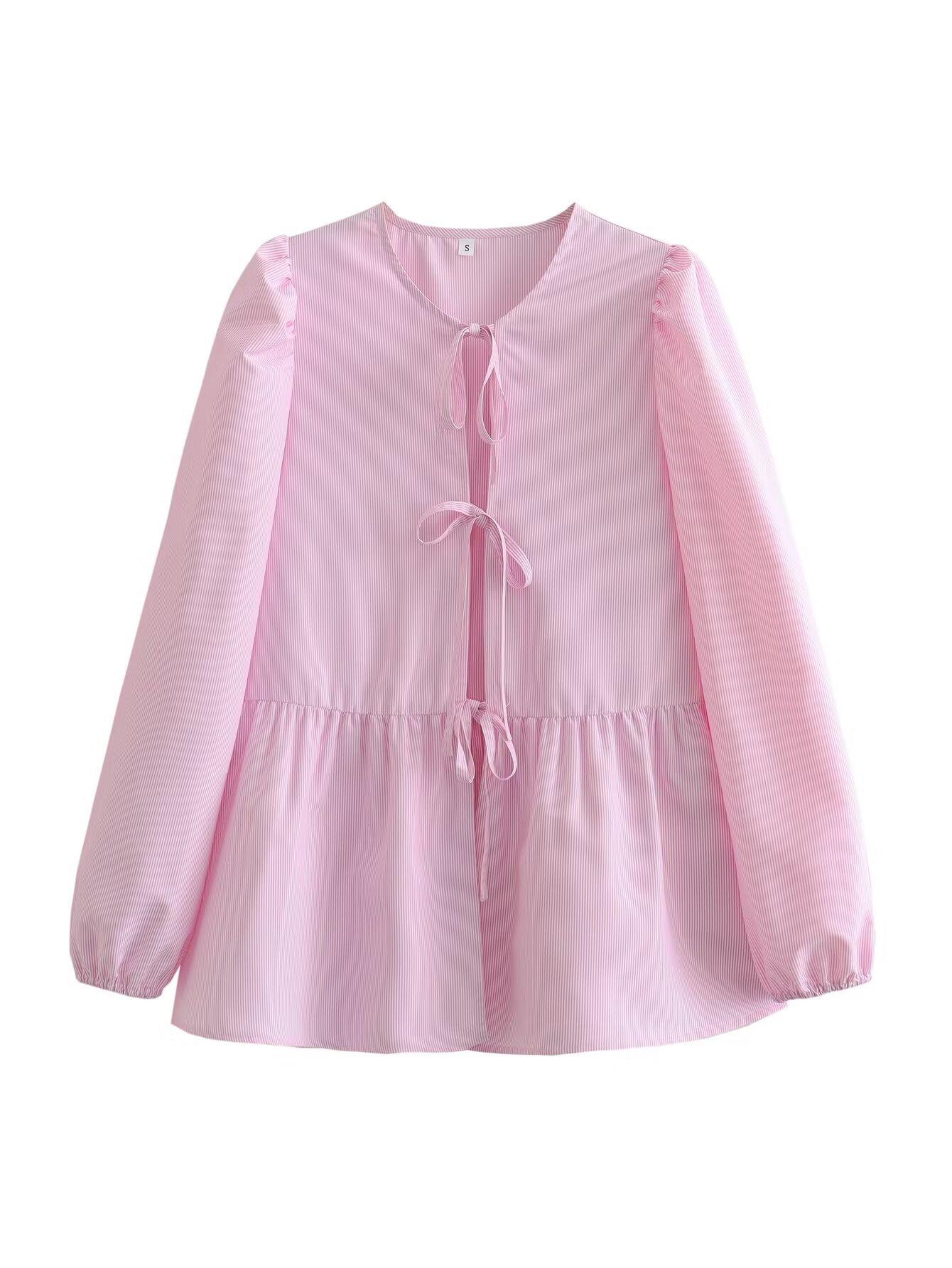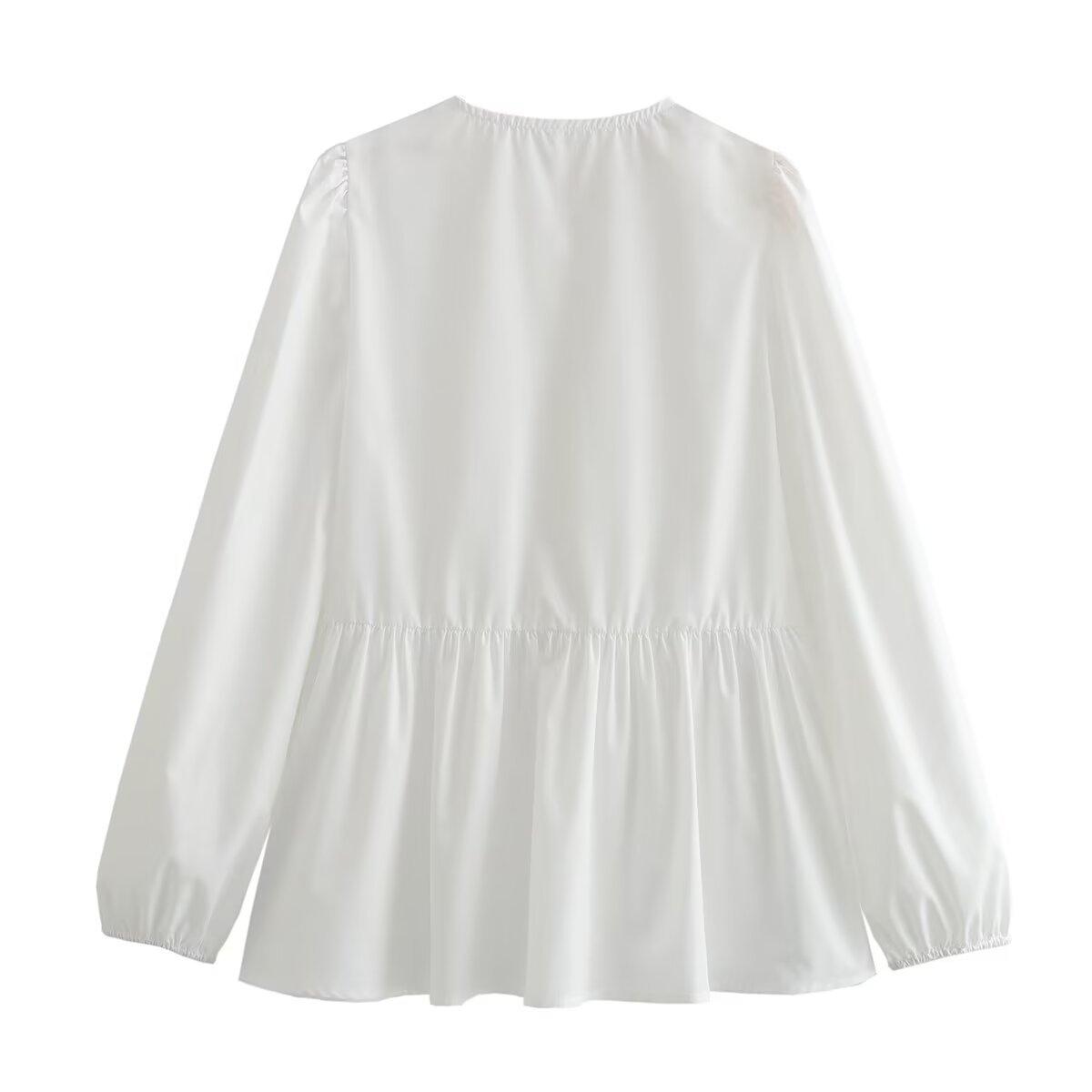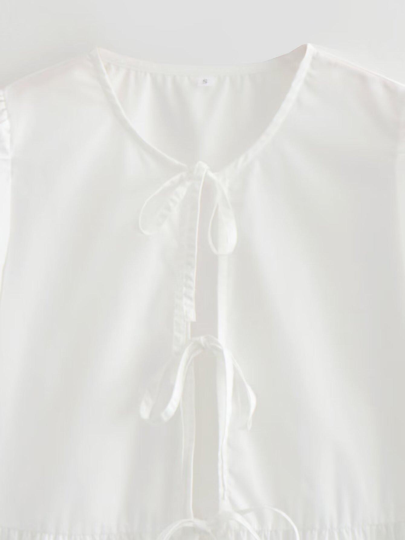 Nuevo 2024 transfronterizo nuevo estilo europeo y americano para mujer comercio exterior al por mayor ZRA7 color manga burbuja lazo encaje camisa