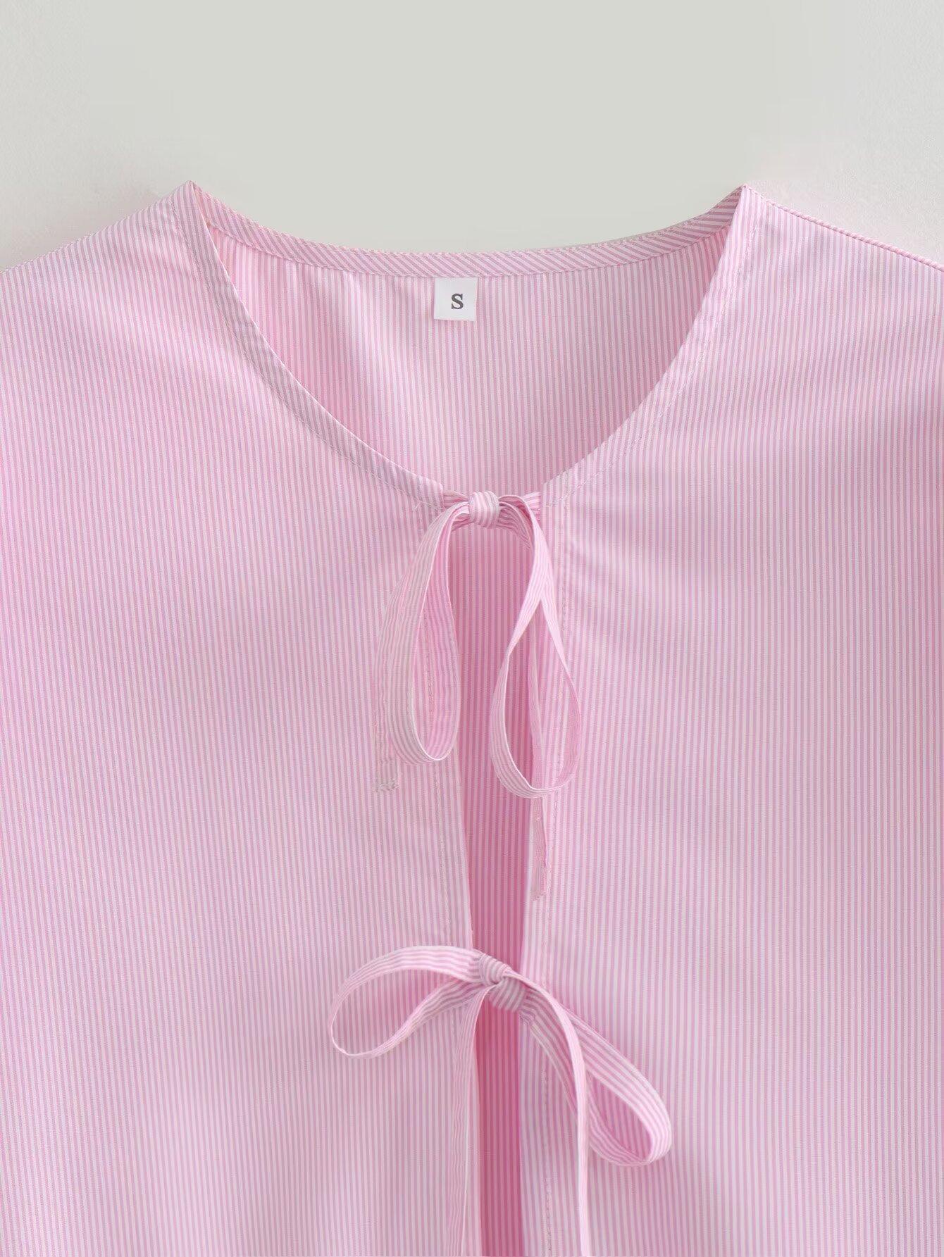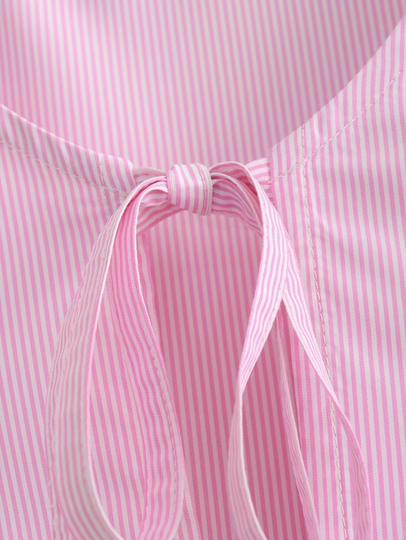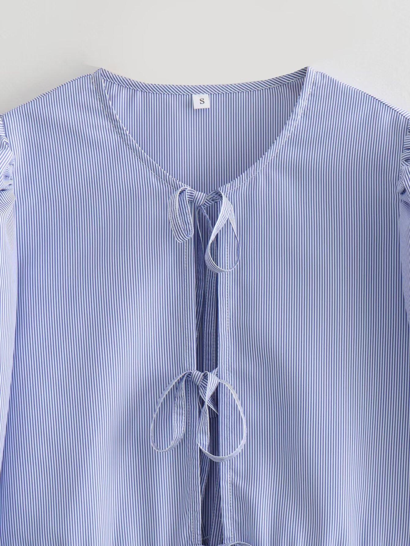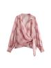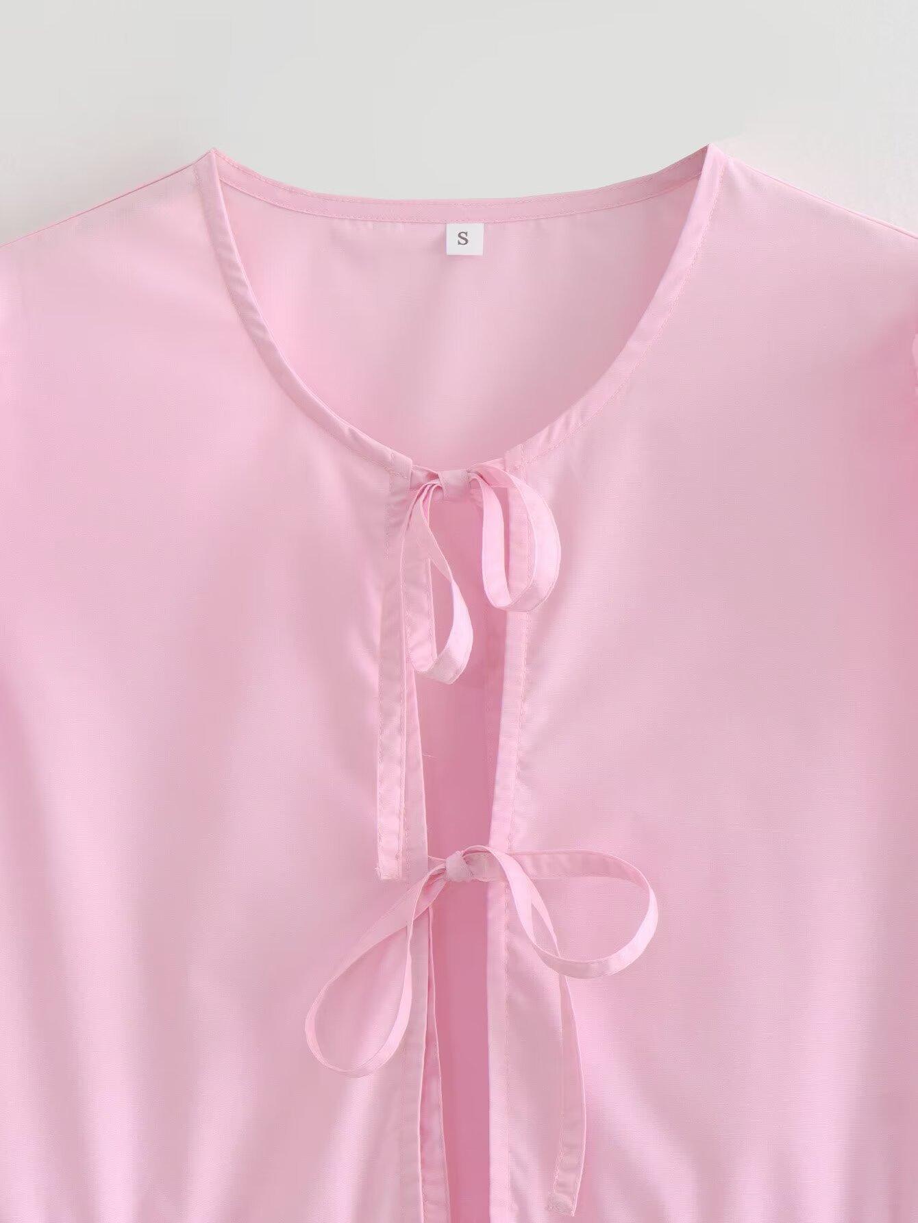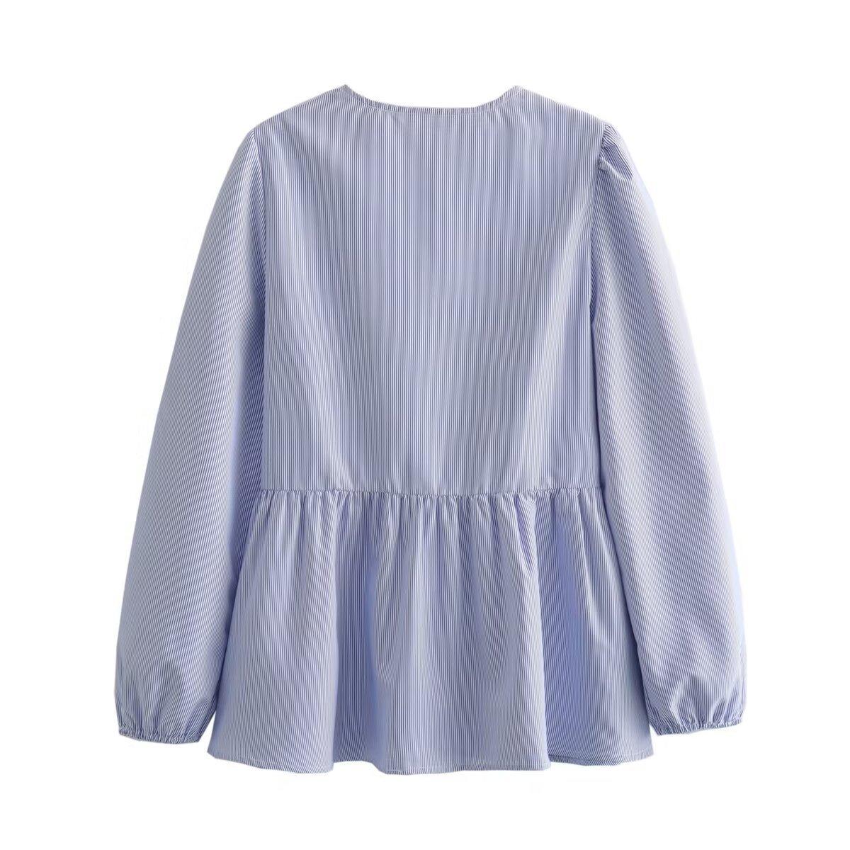 Nuevo 2024 transfronterizo nuevo estilo europeo y americano para mujer comercio exterior al por mayor ZRA7 color manga burbuja lazo encaje camisa