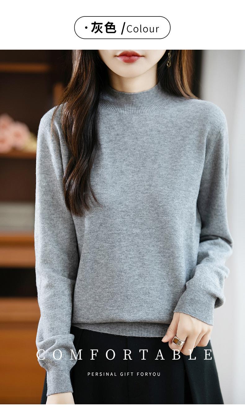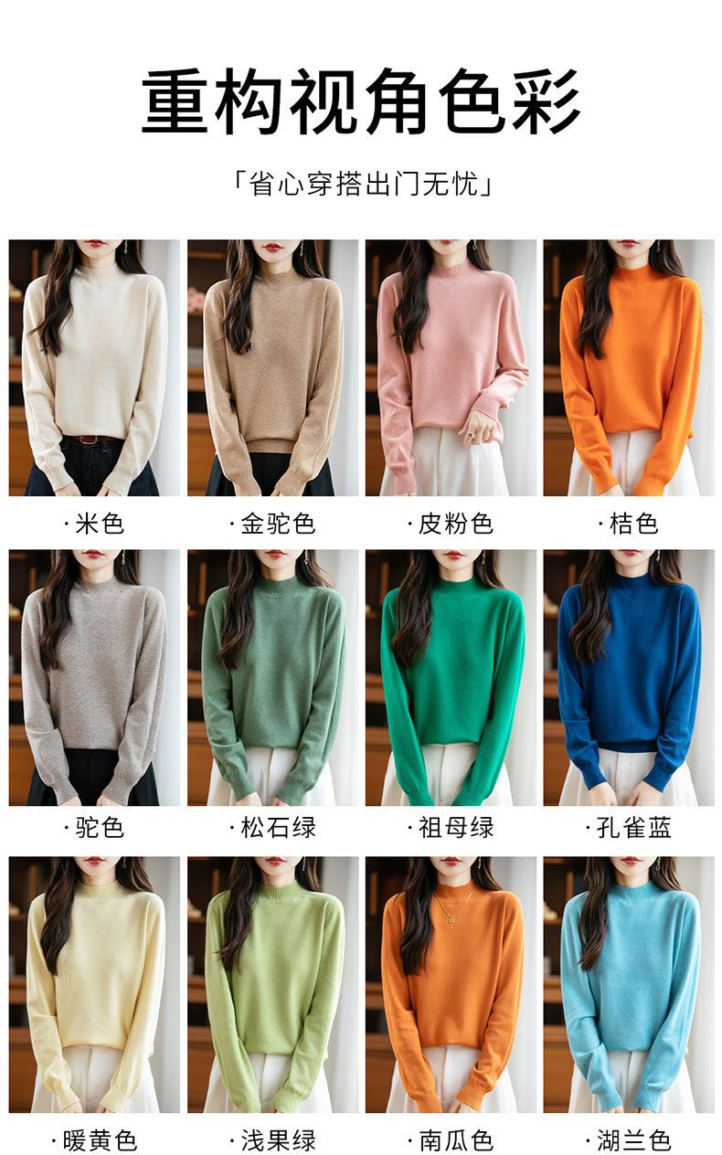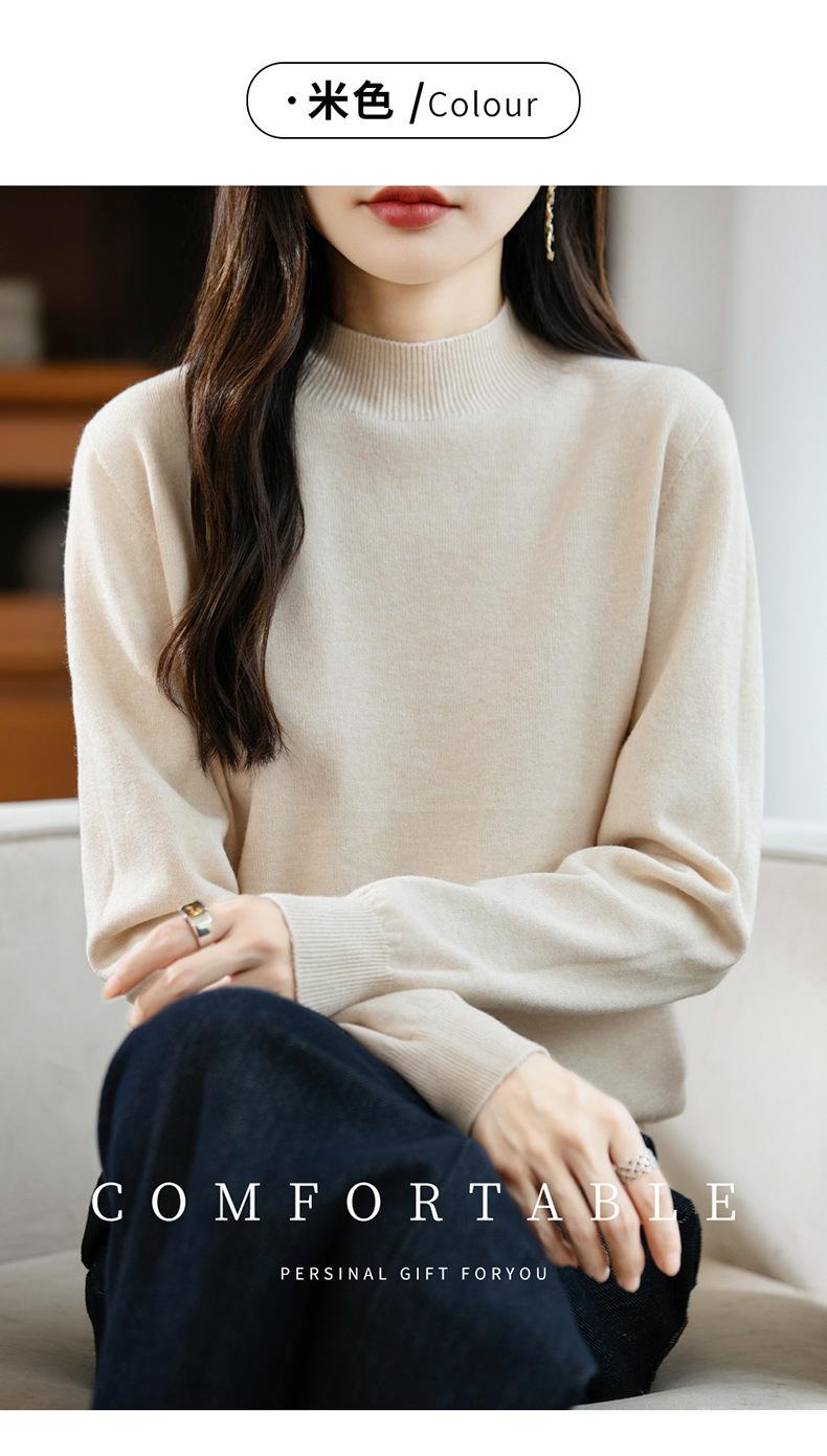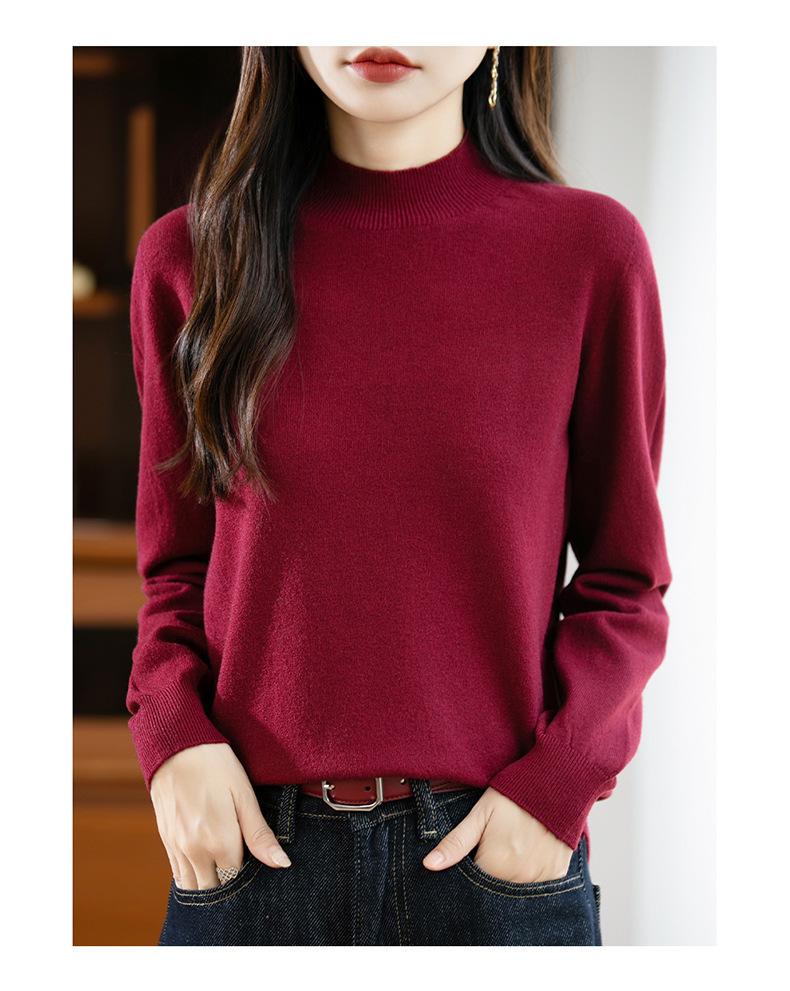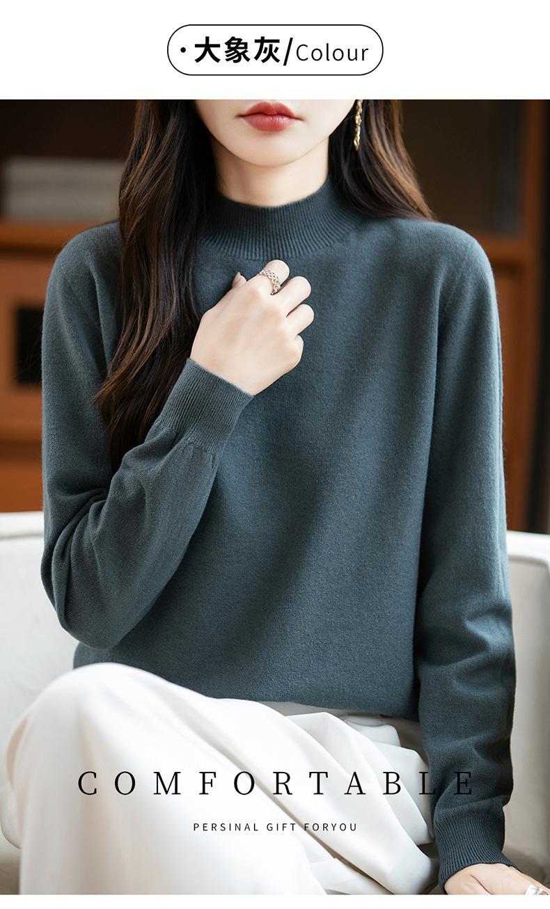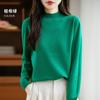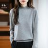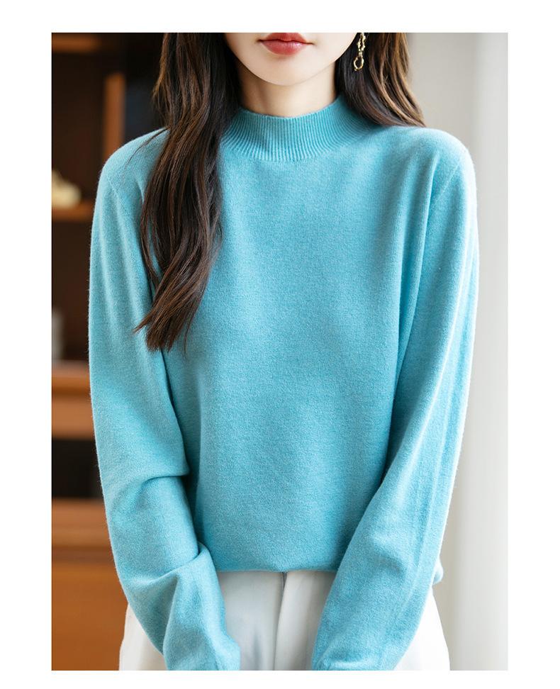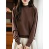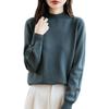 Suéter de Punto Plano de Cuello Semi-Alto para Mujer Otoño/Invierno Nuevo Jersey de Cuello Redondo Versátil Suelto Adelgazante Color Sólido Suéter Básico