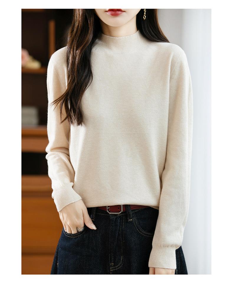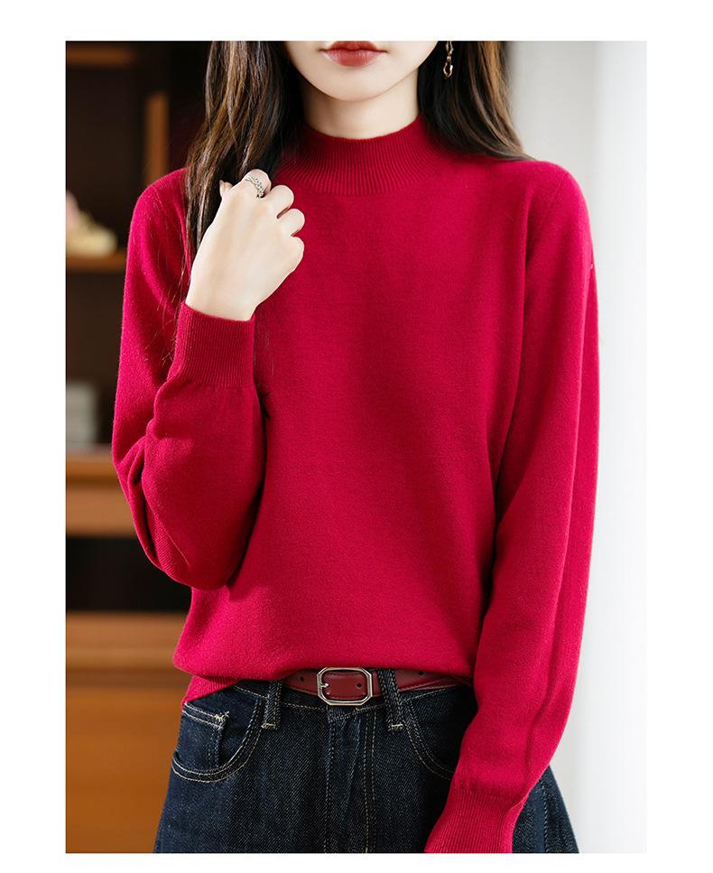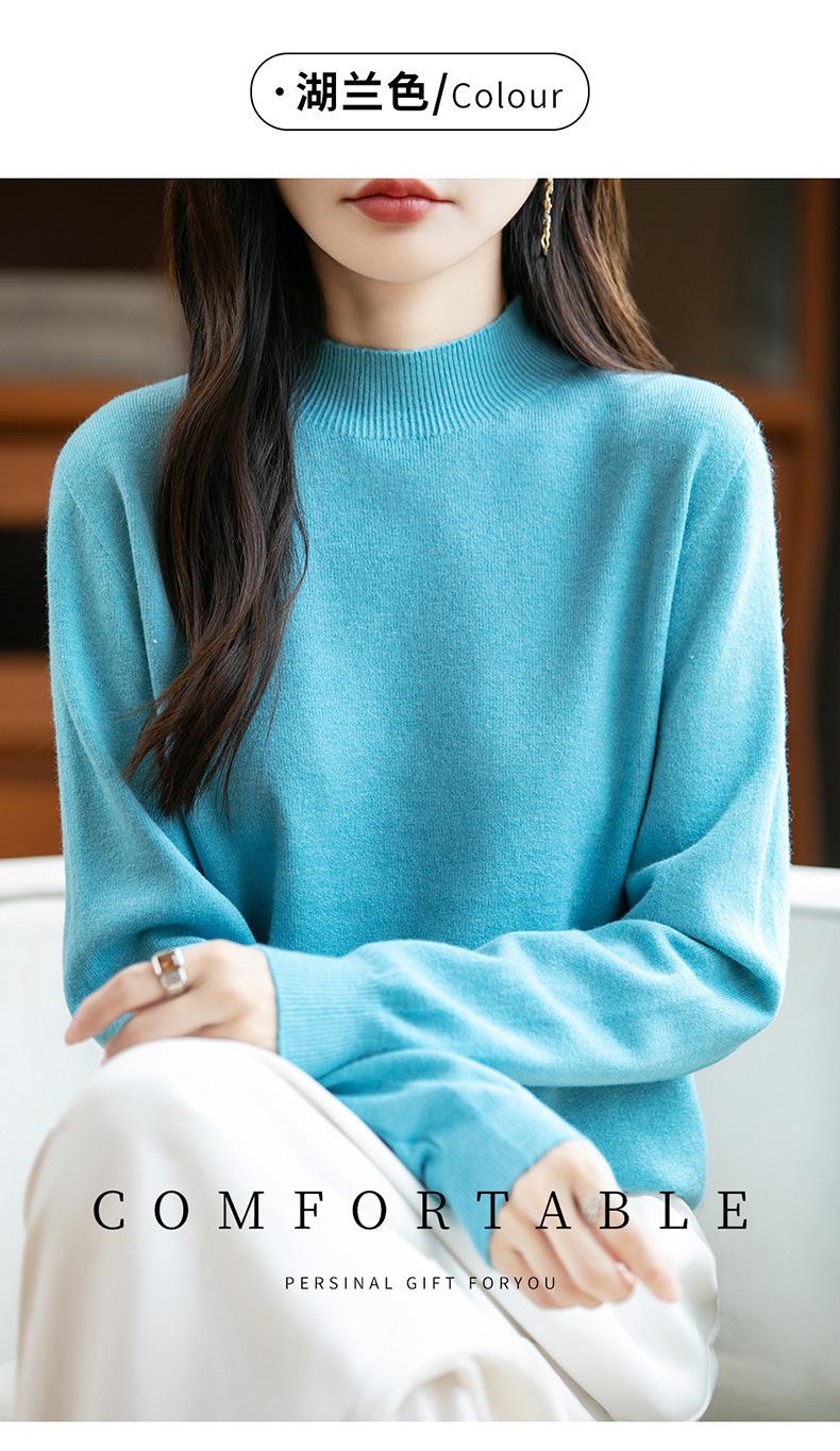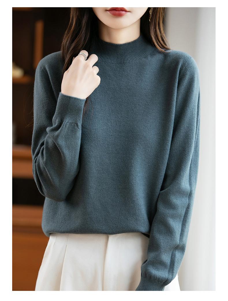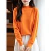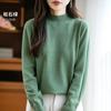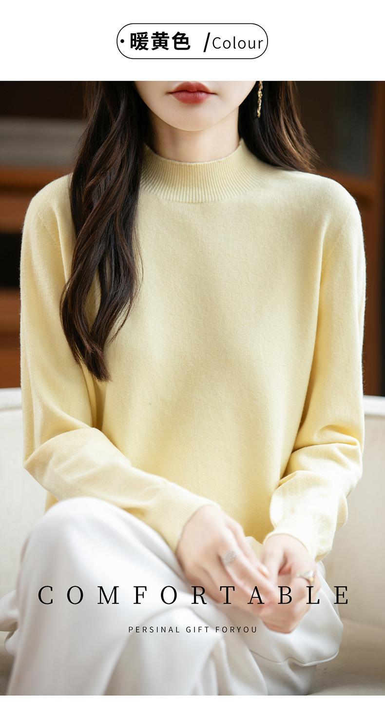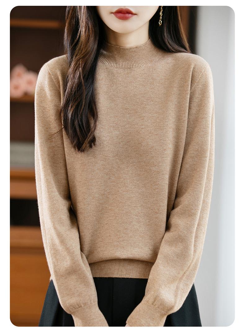 Suéter de Punto Plano de Cuello Semi-Alto para Mujer Otoño/Invierno Nuevo Jersey de Cuello Redondo Versátil Suelto Adelgazante Color Sólido Suéter Básico