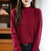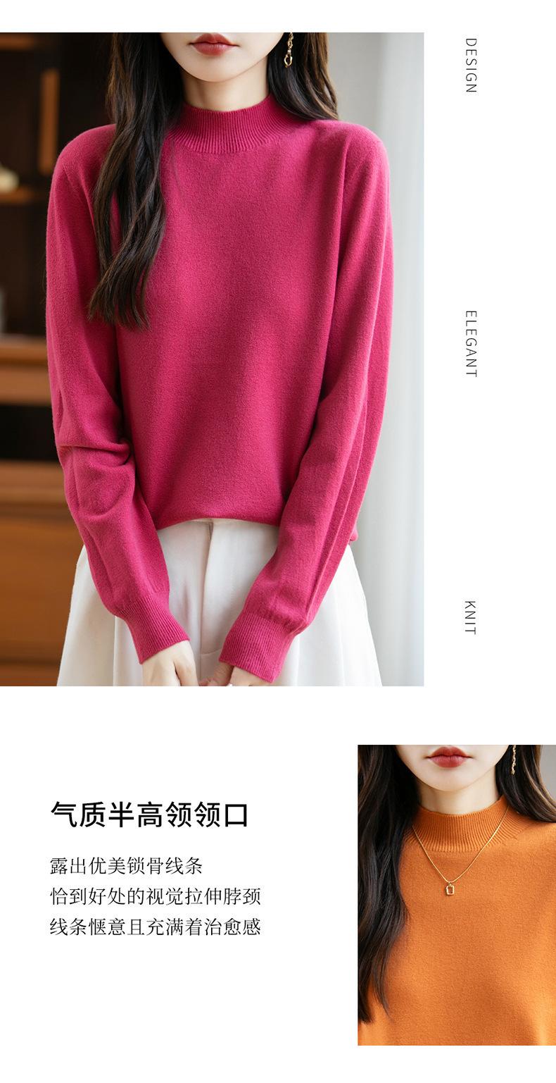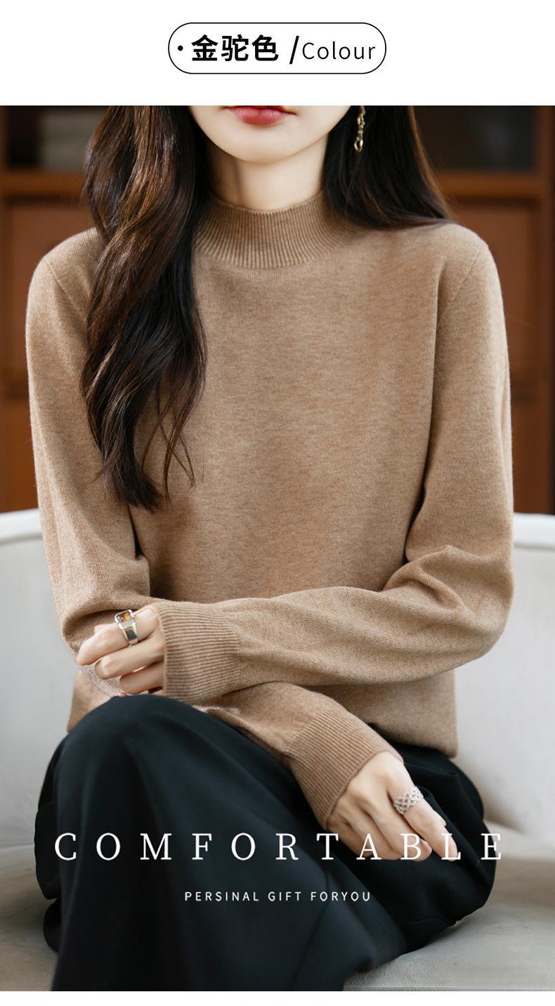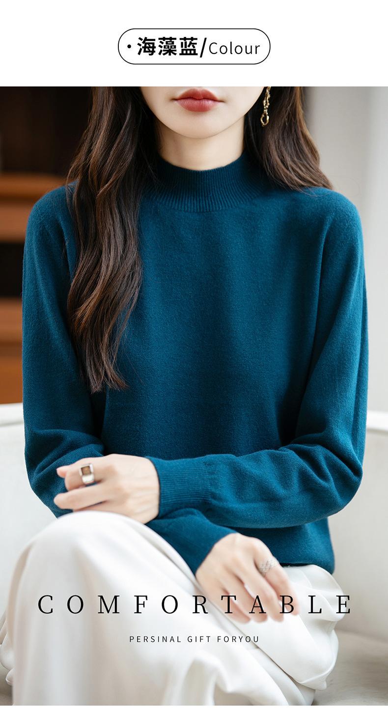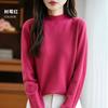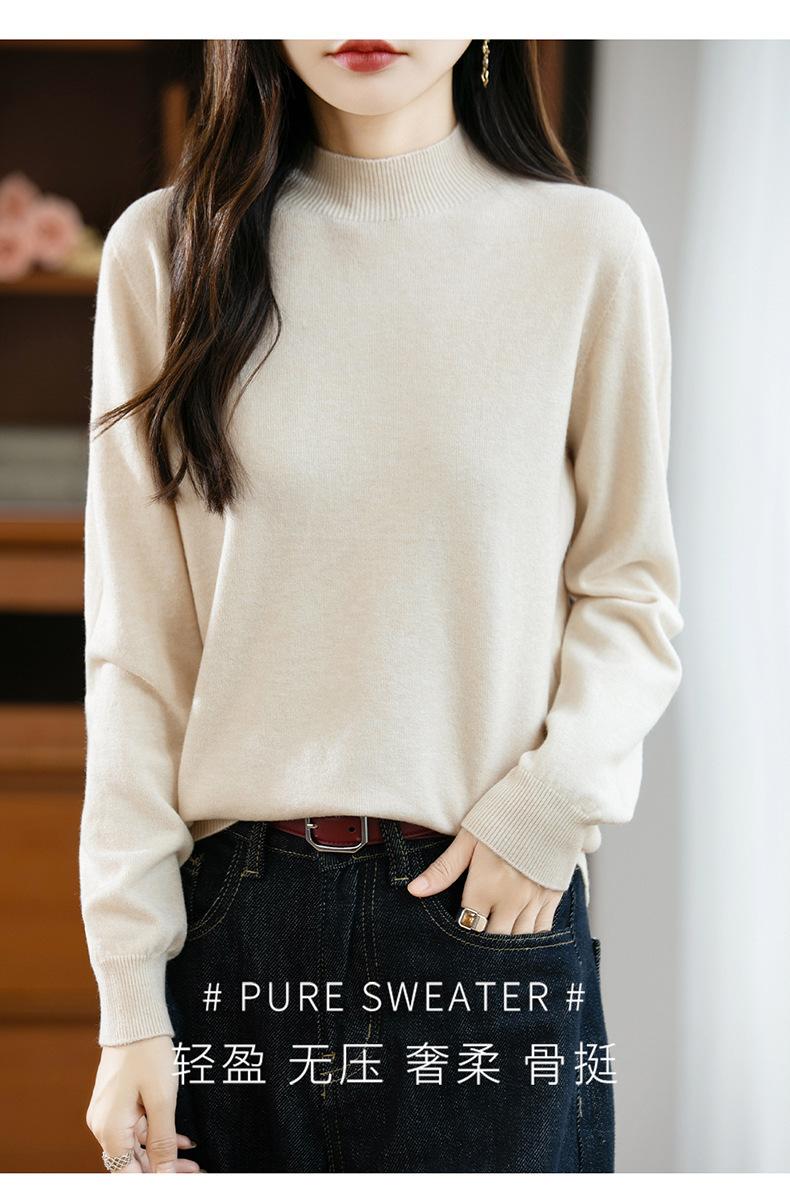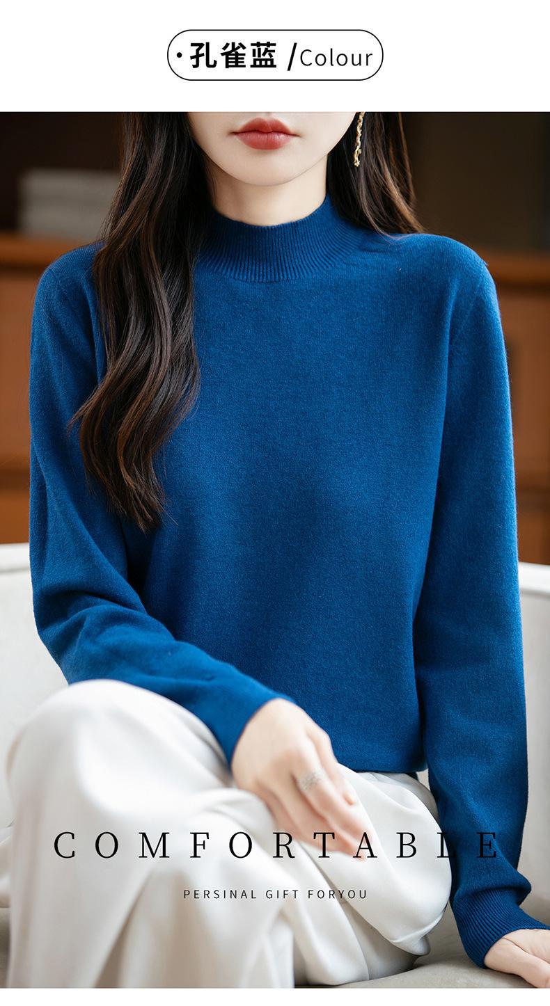 Suéter de Punto Plano de Cuello Semi-Alto para Mujer Otoño/Invierno Nuevo Jersey de Cuello Redondo Versátil Suelto Adelgazante Color Sólido Suéter Básico
