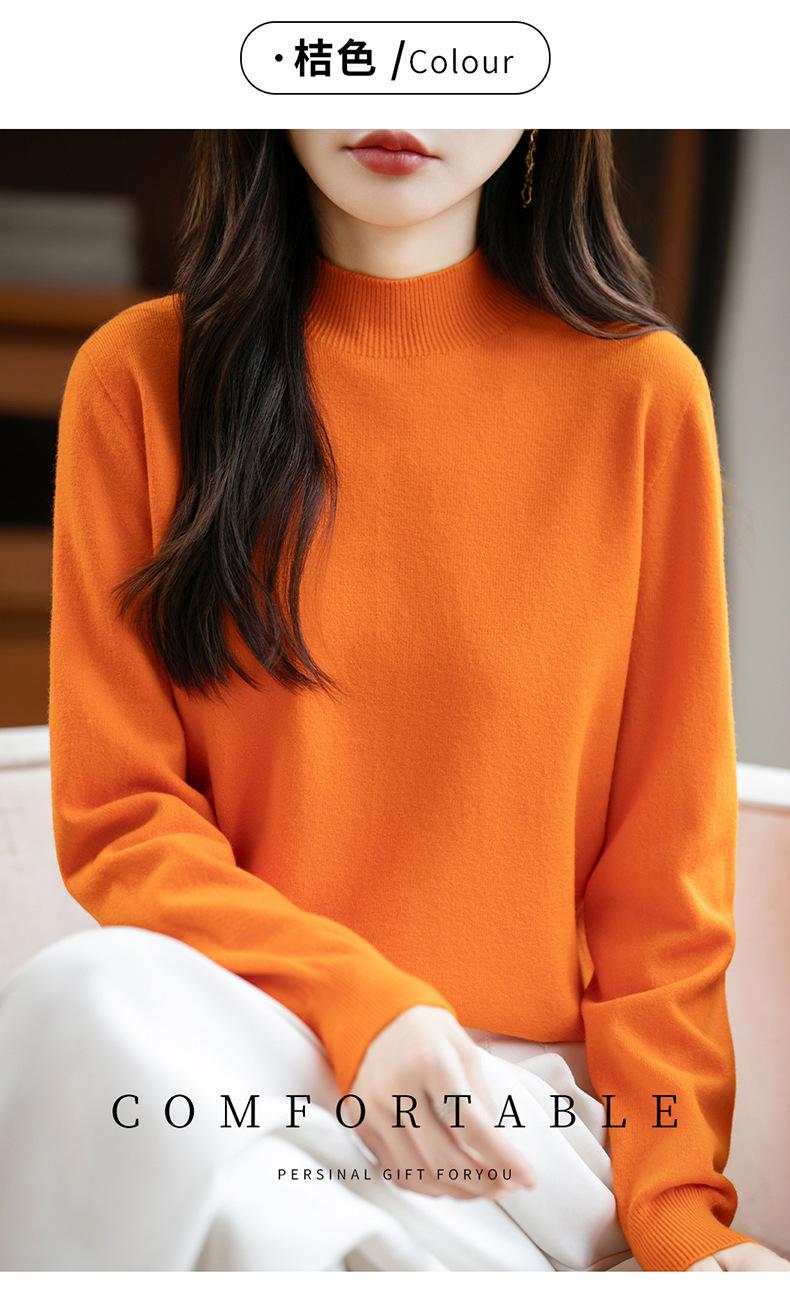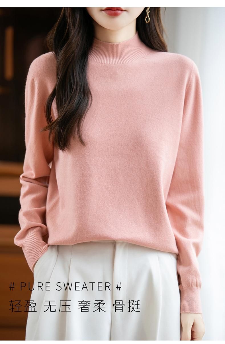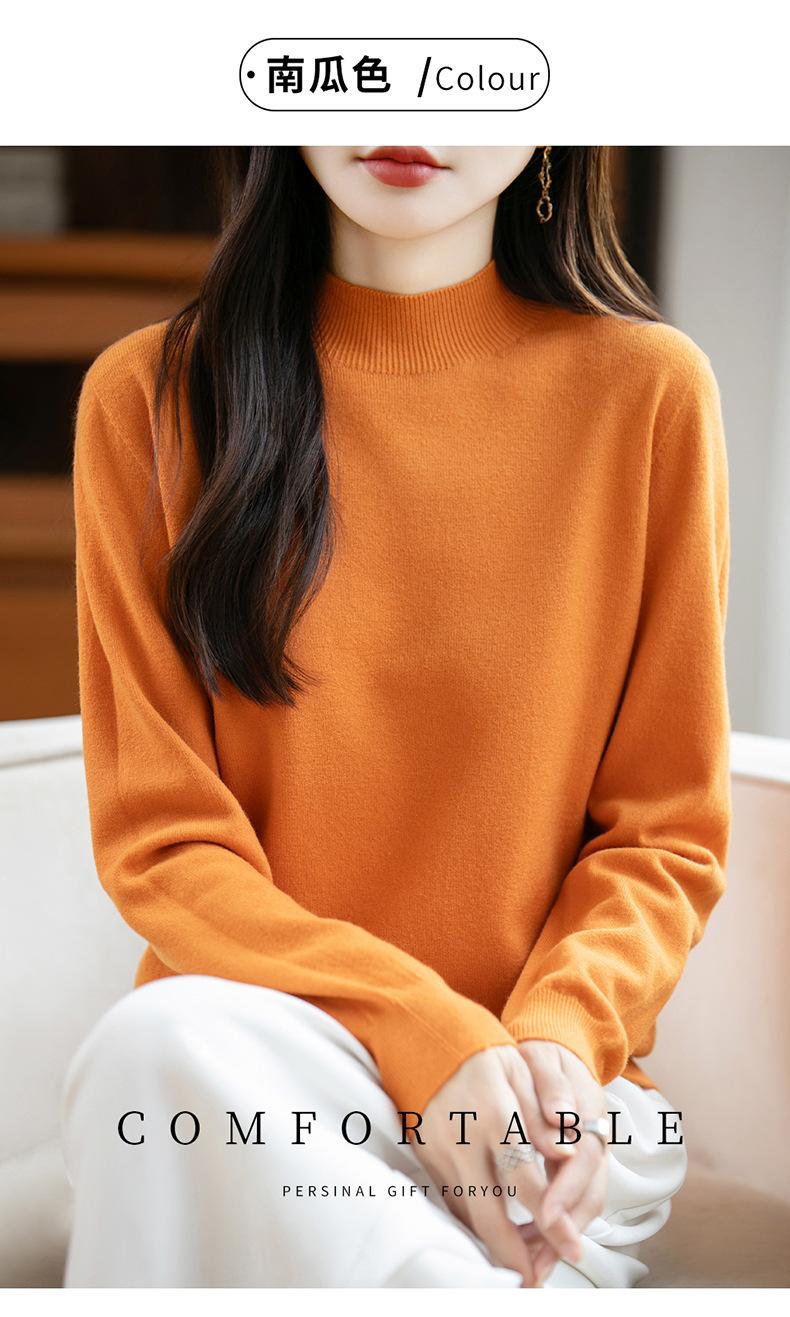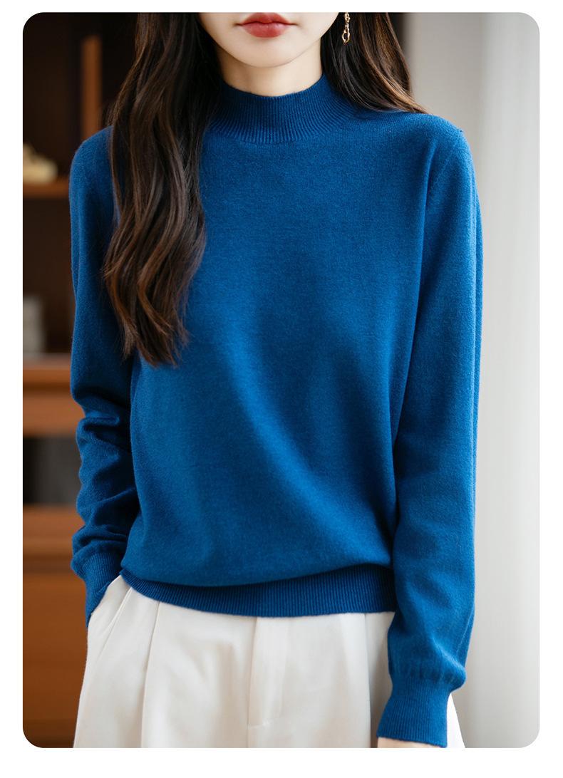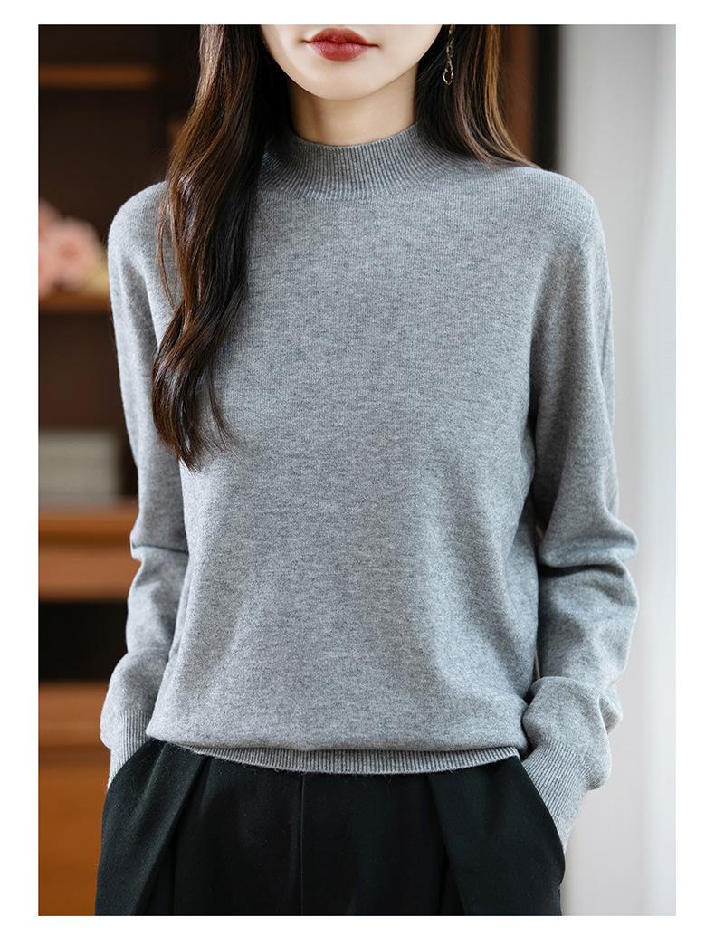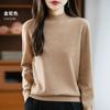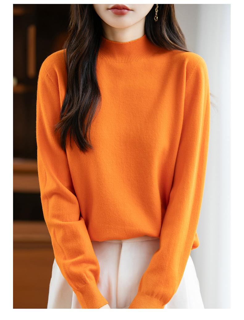 Suéter de Punto Plano de Cuello Semi-Alto para Mujer Otoño/Invierno Nuevo Jersey de Cuello Redondo Versátil Suelto Adelgazante Color Sólido Suéter Básico