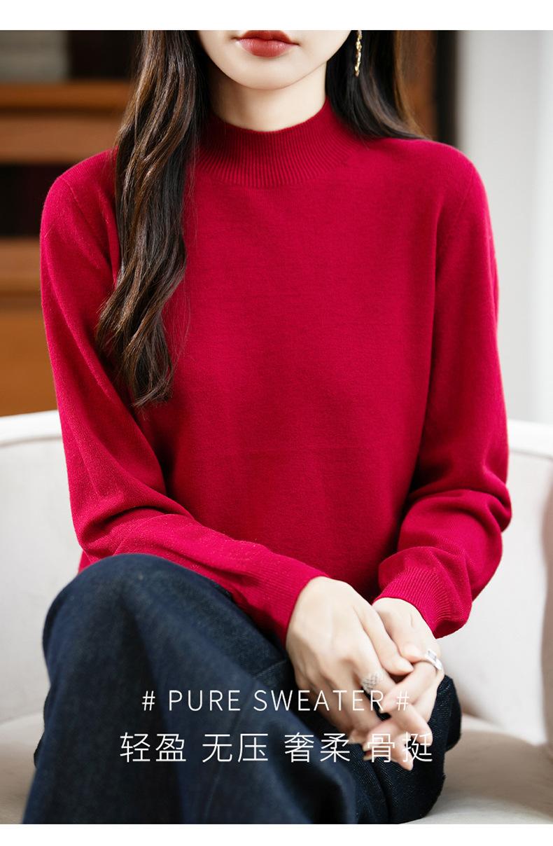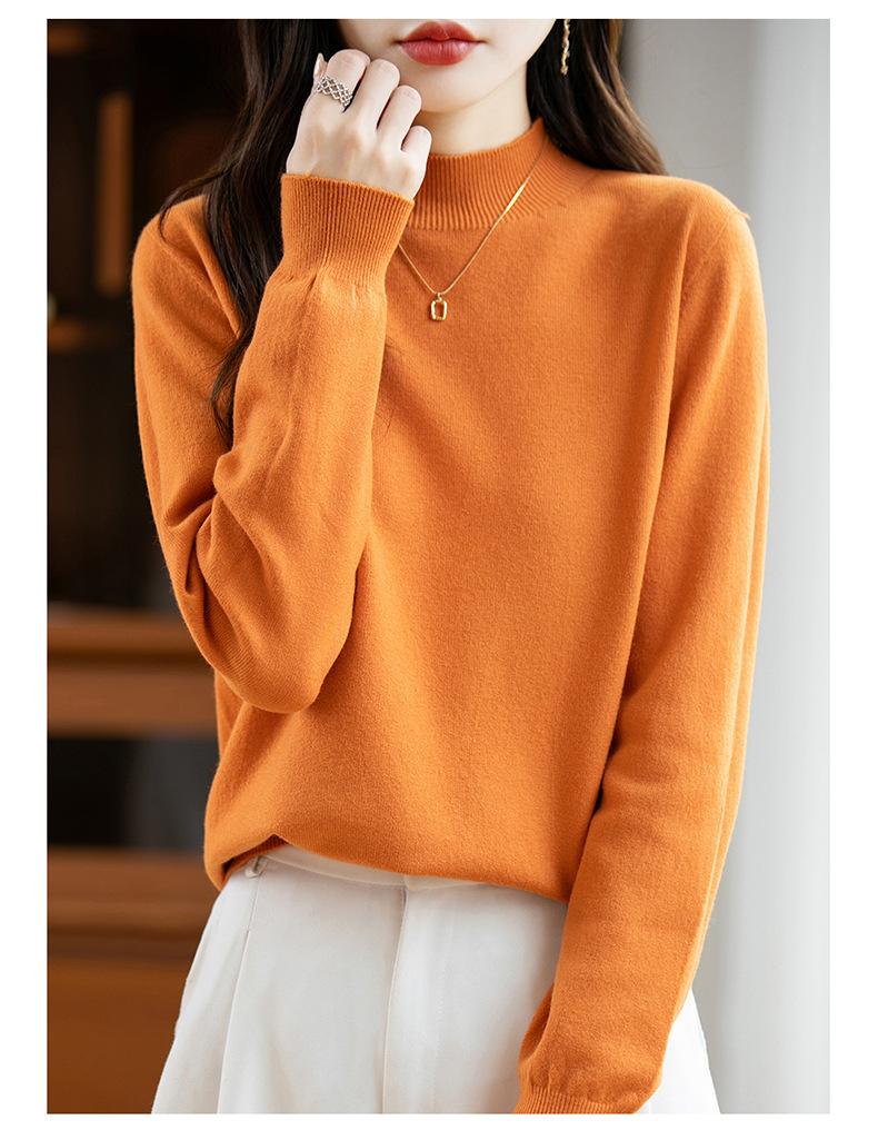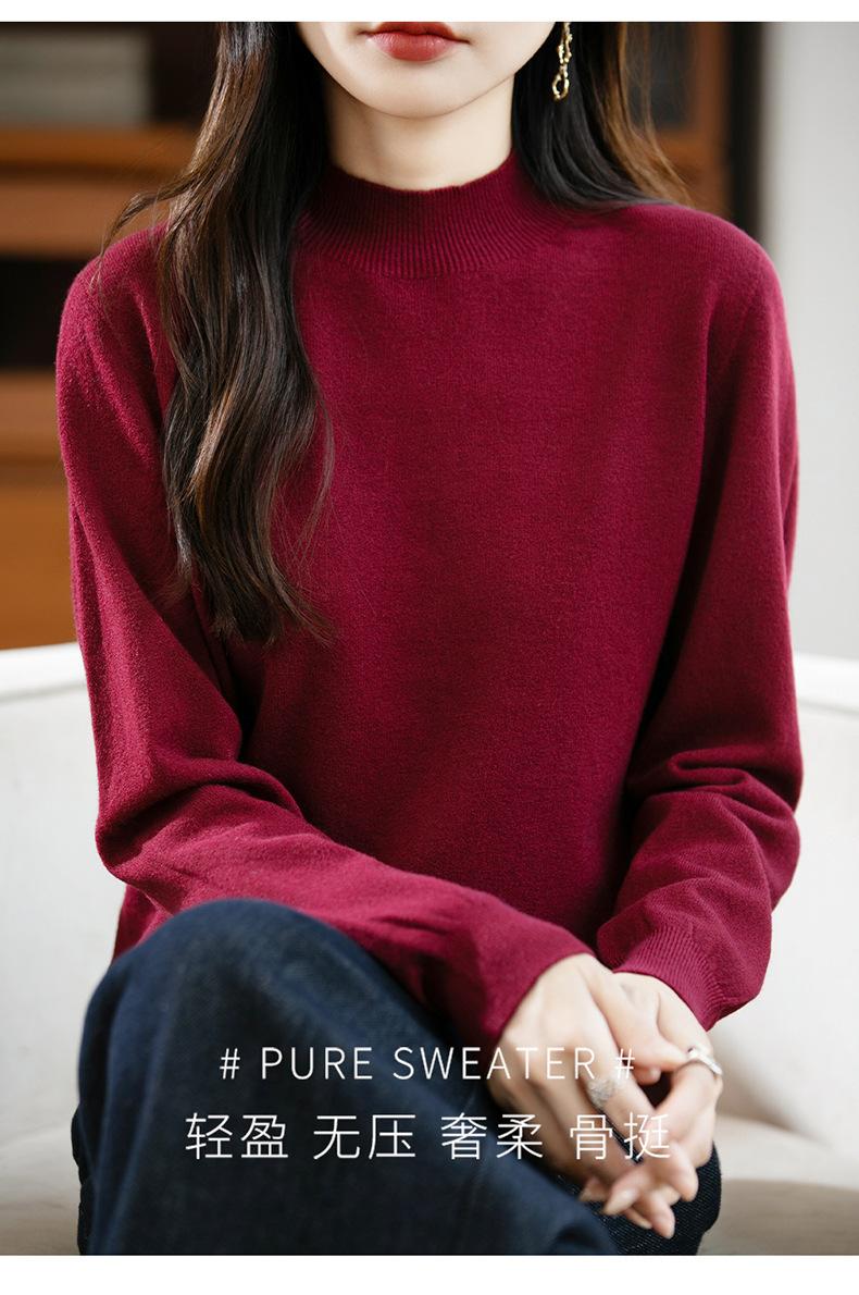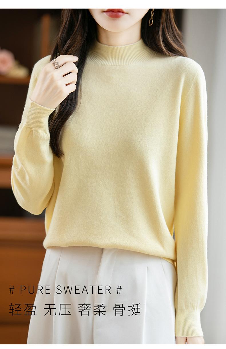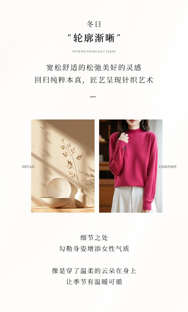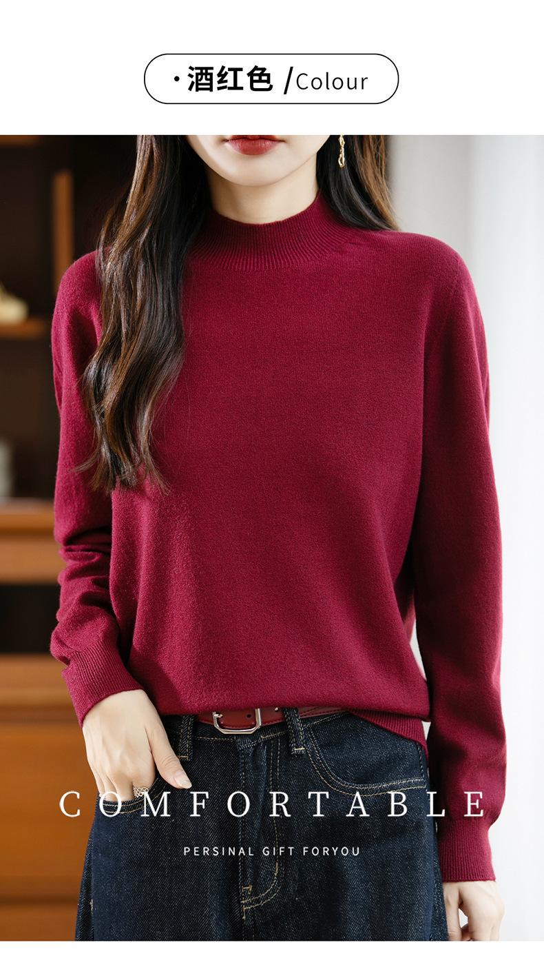 Suéter de Punto Plano de Cuello Semi-Alto para Mujer Otoño/Invierno Nuevo Jersey de Cuello Redondo Versátil Suelto Adelgazante Color Sólido Suéter Básico
